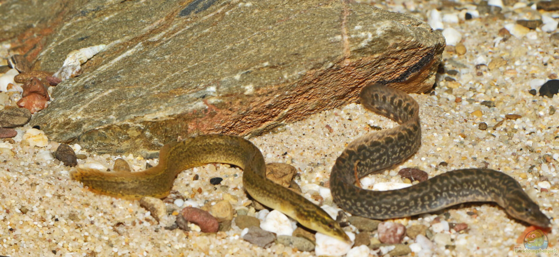 Grundsätzlich sind derzeit alle im Fachhandel erhältlichen "Mastacembelus shiranus" Wildfänge, da es bisweil keine dokumentierte Nachzuchten in der Aquaristik gibt. Und so haben wir uns zum Ziel gesetzt, diese Art so "habitatnah" wie möglich zu pflegen, was sich nicht unbedingt als einfach darstellt. Die Geschlechterbestimmung ist sehr schwer und so können wir bis heute nicht sagen ob wir ein Paar haben, oder nur zwei "Mastacembelus shiranus" eines Geschlechts in unterschiedlicher Grö??e/ Alter und Farbe?!?!