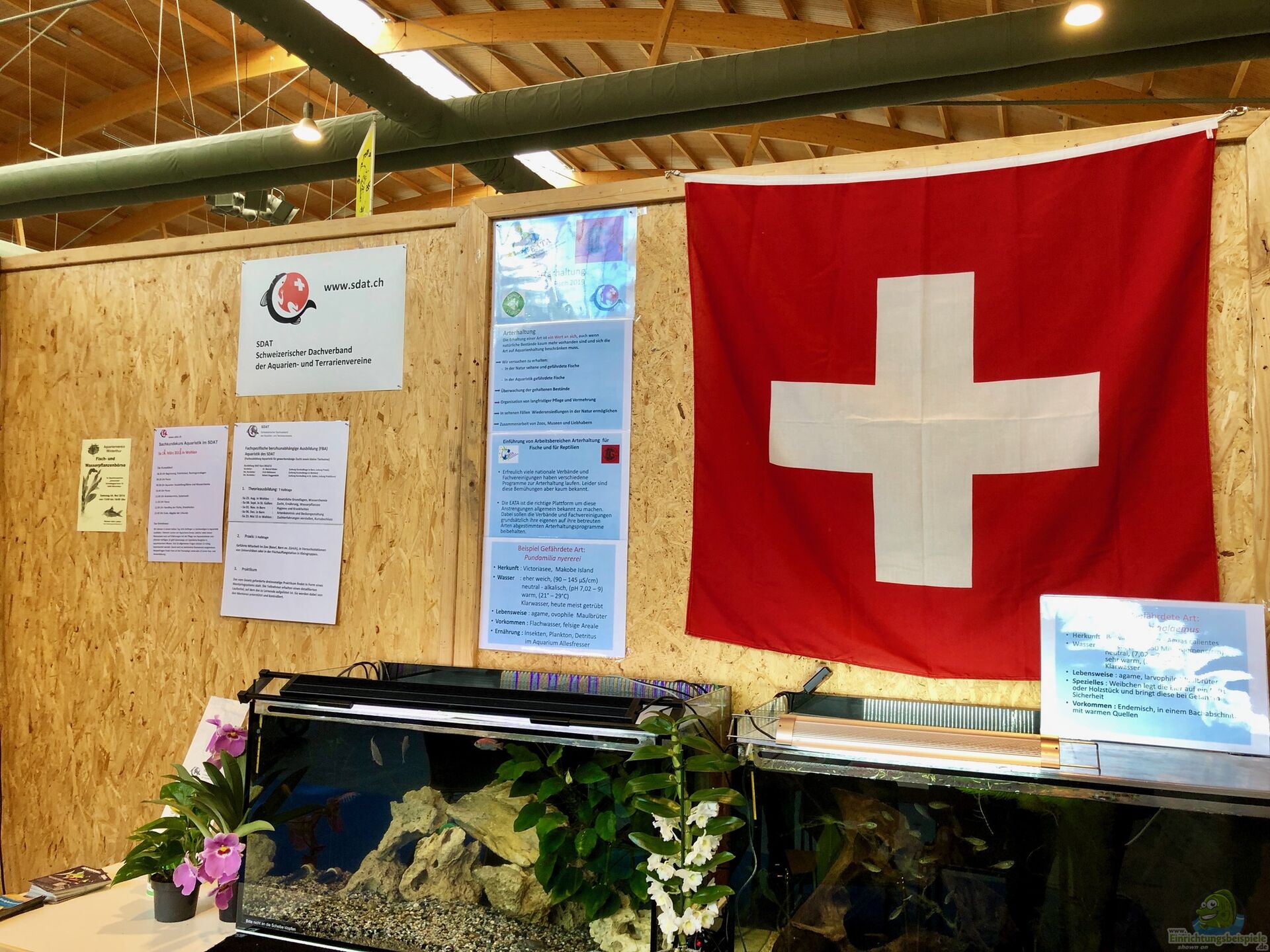 Mir ist aufgefallen, dass die Stände sehr sauber waren, toll strukturiert und übersichtlich geordnet. Zwischen und vor alle bei den Ständen tummelten sich viele Leute und die Atmosphäre war sehr gut. Man konnte sich toll informieren und fand für jeden Geschmack, jedes Interesse und jede Sparte etwas. Sei es nun für Pflanzenfreunde, Garnelen-Fans, Malawi-Begeisterte oder Arterhaltungs-Interessierte. ??berall gab es Informationen und auch Tiere anzusehen. Mich freute vor allem der letzte Punkt ??? ich traf zwei gute Bekannte aus der Schweiz, da in deren Becken heuer Viktoriasee-Cichliden schwammen, mich zog ihr Vereins-Stand magisch an. Und siehe da, sie hatten dasselbe Interesse bezüglich Arterhaltungs-Zuchtprojekte. Wir haben uns gut unterhalten und ich habe auch ein Glas tollen Rotwein bekommen???