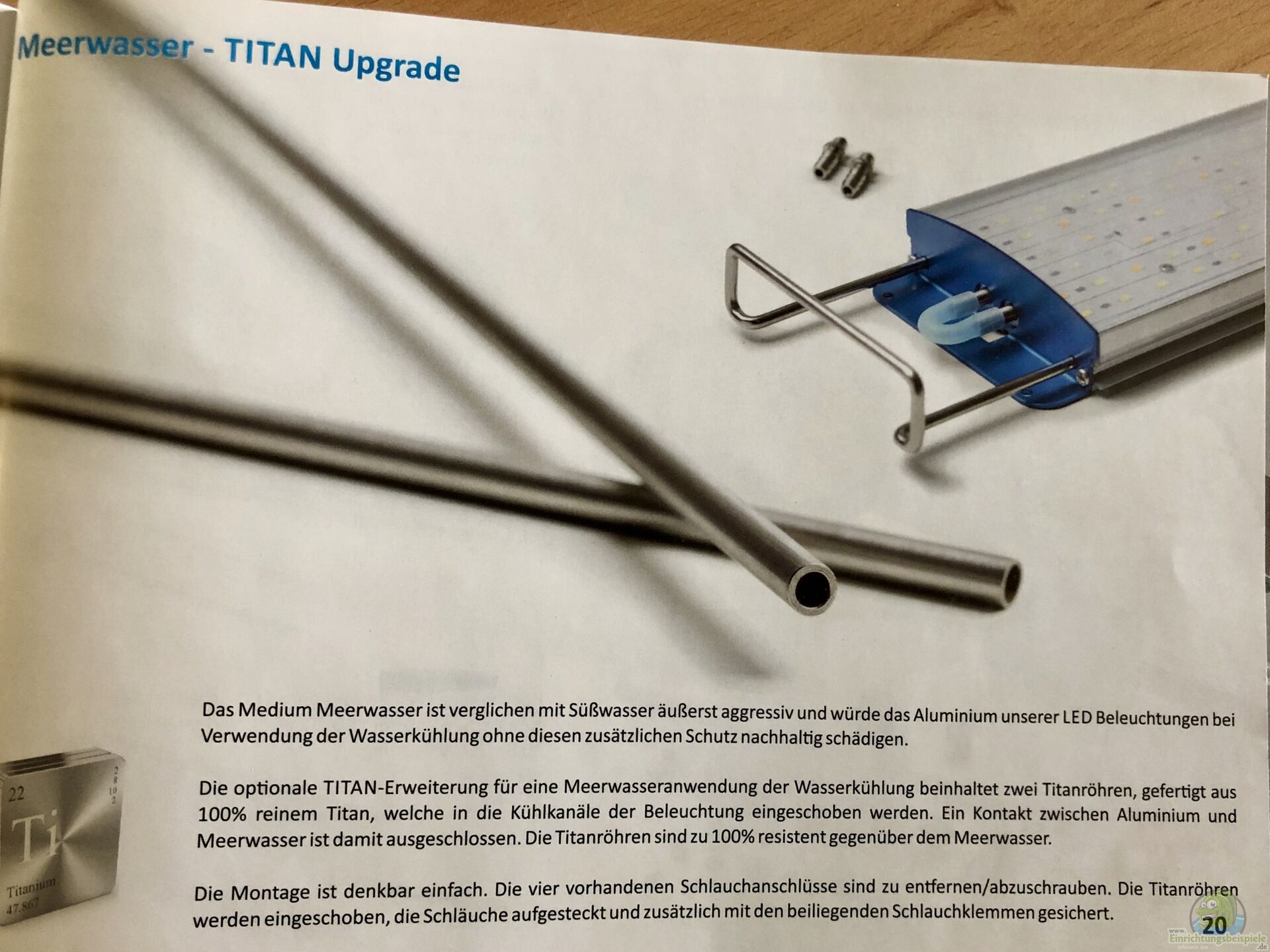Ach ja. Das Kühlungs-System geht natürlich auch für Meerwasser-Aquarien. Allerdings sollte man hier das Upgrade, die Titanröhren verwenden, da das Meerwasser im Vergleich zu Sü??wasser ziemlich aggressiv ist. (Siehe Foto)