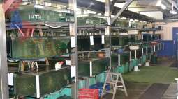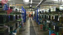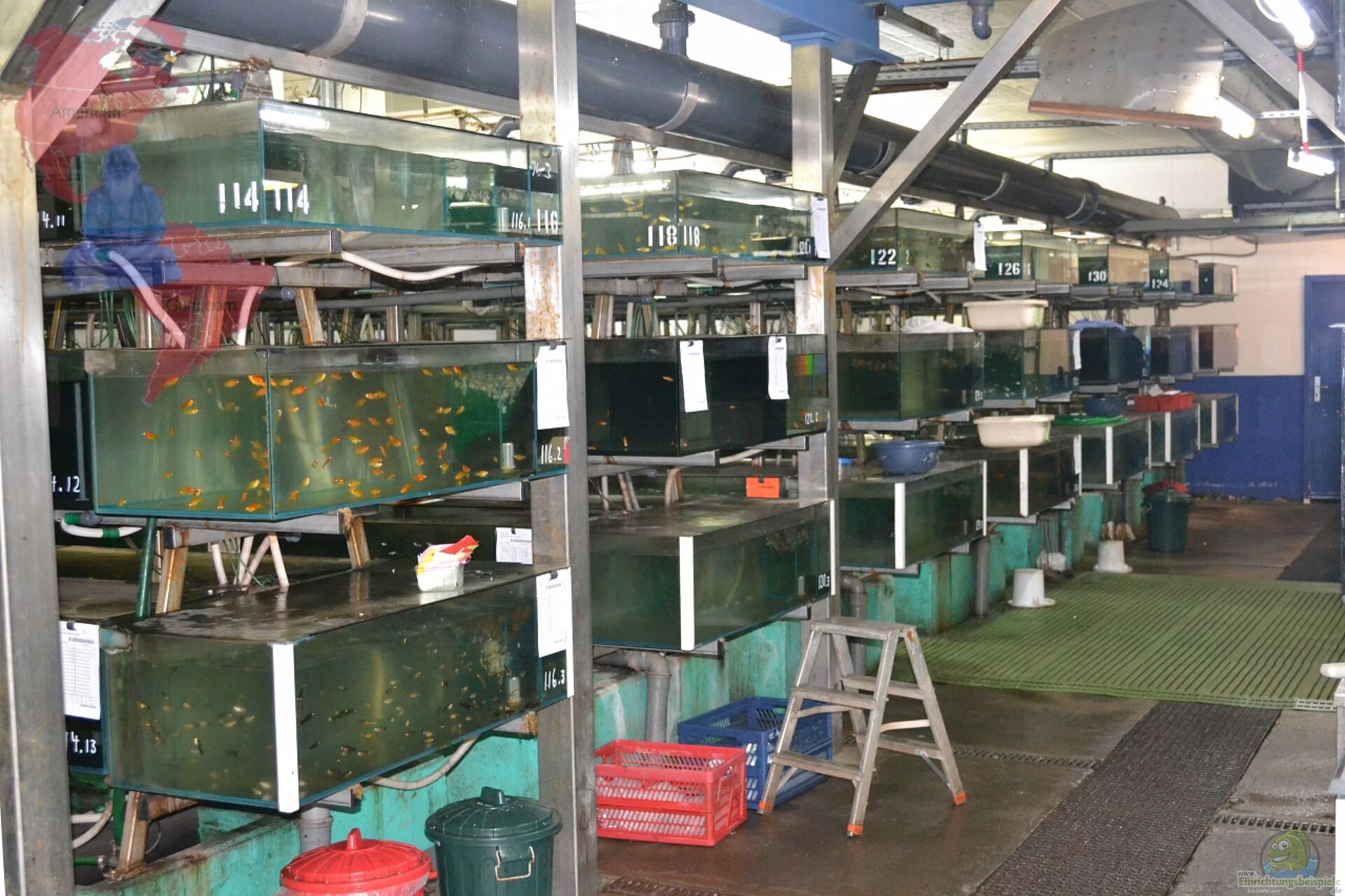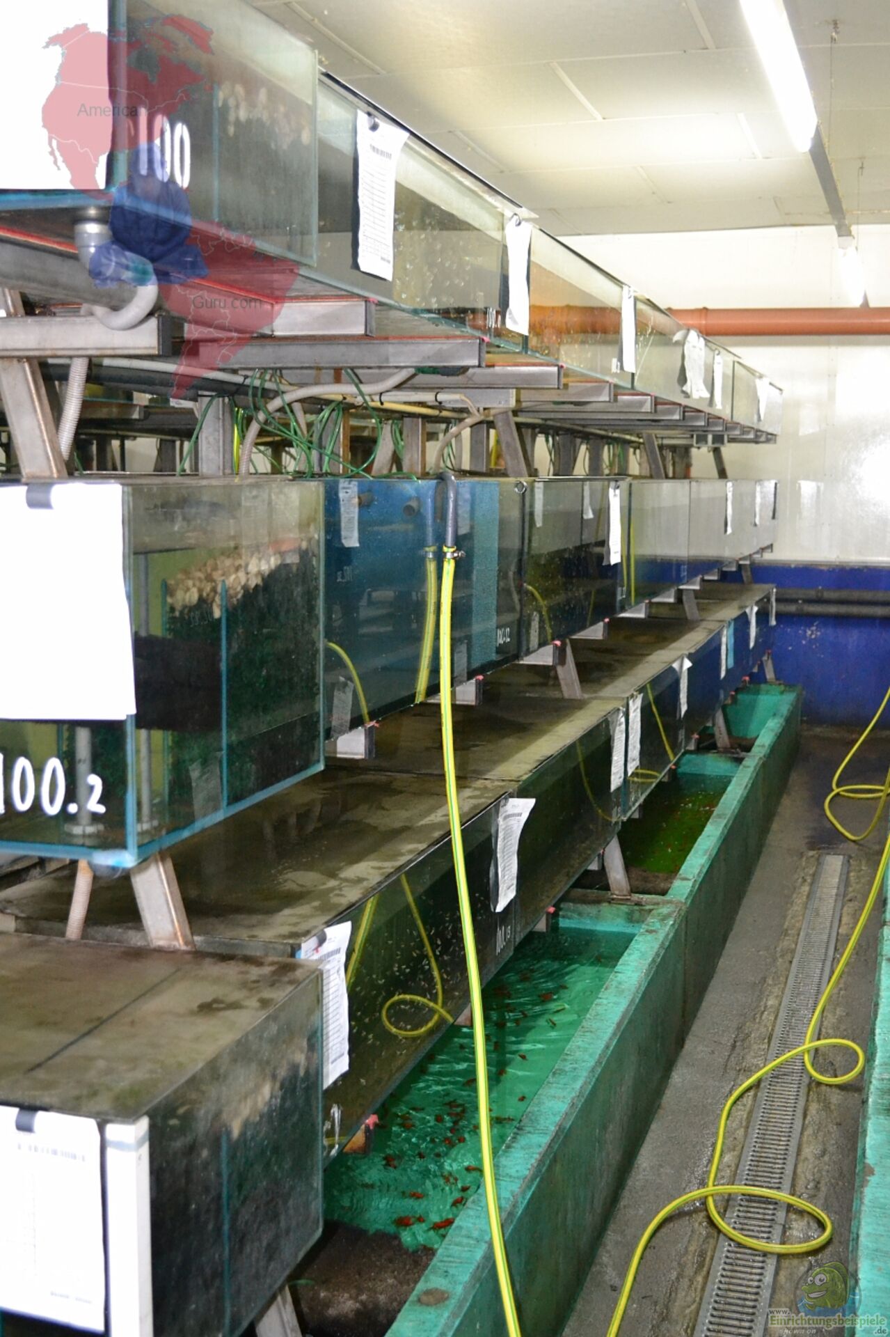 In den Hallen der Fa. Glaser befinden sich ca. 3000 Vollglasaquarien in allen möglichen Grössen, in denen vom kleinsten Salmler bis zum grössten Wels alles gehältert werden kann was das Aquarianerherz so begeht.