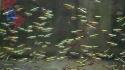 Laut Information von Hrn. Schäfer stammen heute ca. 80% und mehr der lieferbaren Zierfische aus Nachzuchten, hauptsächlich aus dem asiatischen Raum. Praktisch die gesammten Brot- und Butterfische, wie man das normale Tagesgeschäft bei Aquarium Glaser wohl nennt, wie z.B.: Lebendgebärende, Labyrinther, Malawies, viele andere Afrikaner, Schmerlen und auch viele bekanntere L-Welse stammen ausschliesslich aus Nachzuchten. Dies sind die Fische die bei den meisten Aquarianern gefragt sind und hauptsächlich den Umsatz bestimmen. Der bekannte rote Neon stammt aber auch heute meistenen noch aus Wildfangbeständen sowie viele bekannte und sehr begehrte Diskusarten und schwer zu züchtende L-Welse, oder Fische die nur bei einigen, wenigen Spezialisten gehältert werden. Diese Wildfänge haben laut Infos von Frank Schäfer auch keinerlei Einfluss auf die Grösse der Populationen in der Natur, noch keine Fischart sei durch solche Wildfänge von Zierfischen ausgerottet worden.