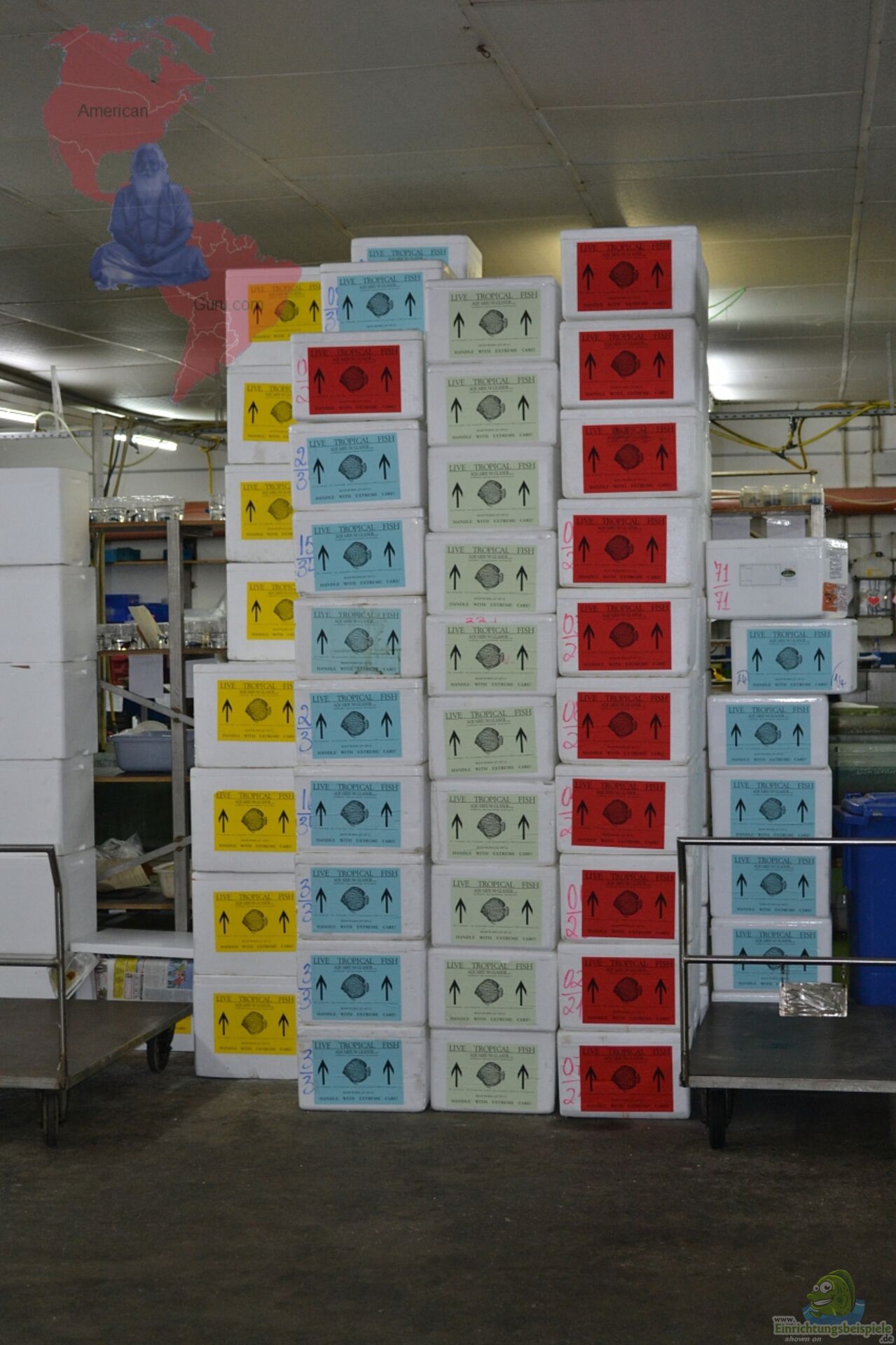 Natürlich wurde auch hier, wie bei Allen so üblich, kurz mal über Geld gesprochen, also über das Preisgefüge und warum unsere Zierfische teils recht teuer sind. Nehmen wir mal an ein Fisch, sagen wir mal unseren sehr bekannter roter Neon und wir nehmen mal an der kostet im jeweigen Land ca. 4 Cent im Einkauf, Durch Frachtkosten, Zollgebühren und so weiter kostet er bis zu Ankunft in Deutschland ca. 40 Cent, wobei ein grosser Teil auf die Frachtkosten entfallen und dort auch nicht auf das Tier sondern das umgebende Transportwasser und deren Gewicht.