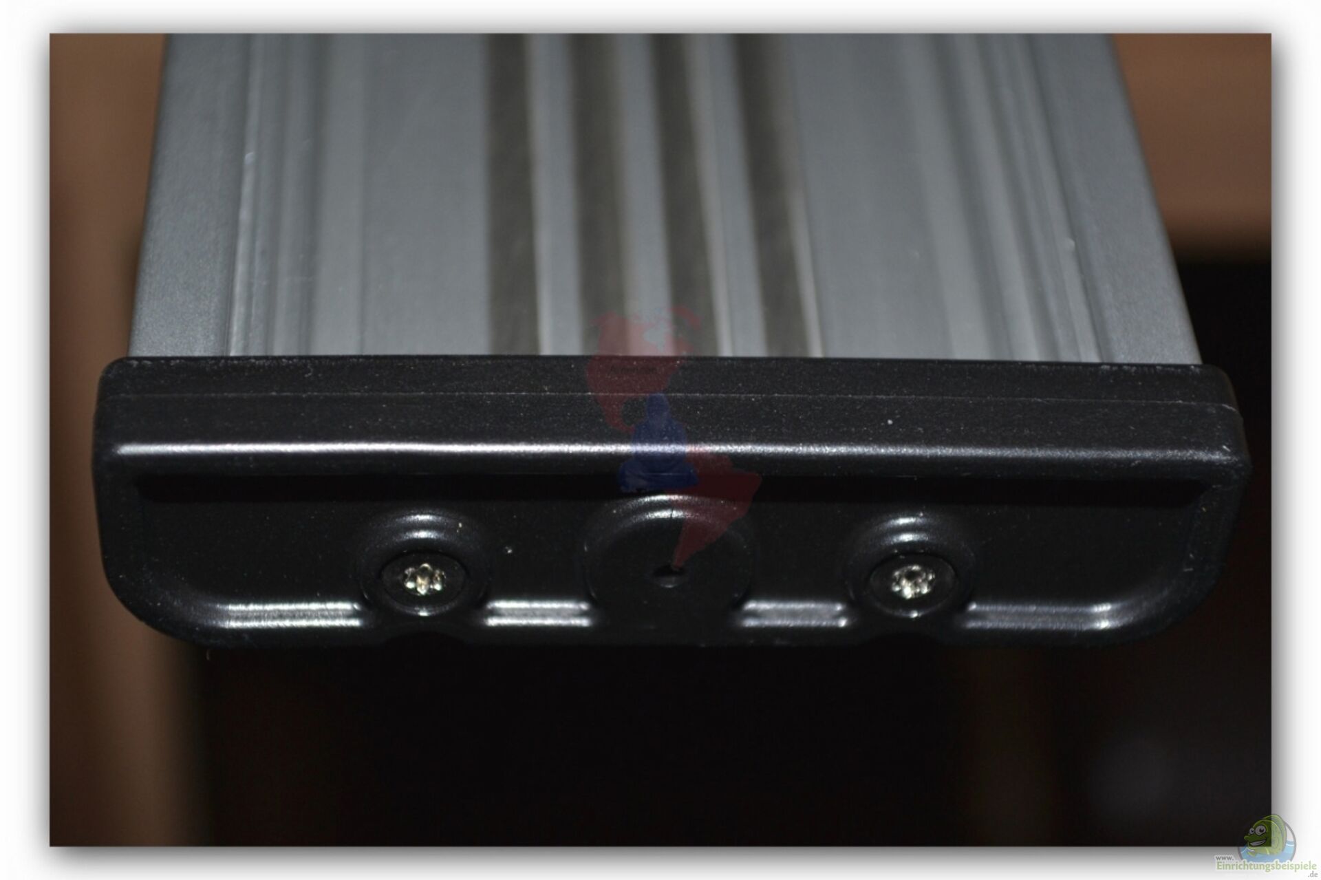 Schon direkt nach dem Auspacken der Lampe aus Ihrer dicken Transporttüte kann man erkennen wie execellent diese Lampe geabeitet ist. Ich würde Sie als einen sehr guten Mercedes unter den Aquarien-LED-Lampen bezeichnen. Die Verarbeitung ist durchweg sehr sauber gehalten, auf den Vergu?? der LEDs mit Silikon wird hier komplett verzichtet, die Lampenabdeckung ist aus einer Kunststoffscheibe, namens LEXAN®-Superclear Carbonat, gearbeitet. Diese, sowie die beiden Endkappen sind mit Dichtungen versehen und einer Thermokontrolle names GORE Membran Ventil, welche den Wärmeaustausch, aber auch die Dichtigkeit gegen eindringendes Wasser gewährleistet. Der Hersteller Waltron gibt hier IP67 an, was Staubdichtigkeit und Schutz gegen zeitweiliges Untertauchen im Wasser bedeutet, das Profil selbt ist meerwasserbeständig nach DIN 81249-1. Die Lampe erfüllt natürlich die gängigsten Normen nach VDE (elektrische Sicherheit).