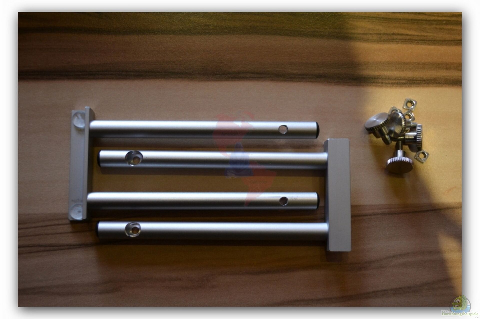 Für die Daytime-LED Lampen bietet natürlich auch der Hersteller Waltron eigene Netzteile/Konverter an und ein eigenes Dimmsystem. Ausserdem gibt es neben den von mir verwendeten Daytime Cluster Uni-Adaptern auch noch Aufsetz-Adapter, T5-&T8-Halterungen sowie ein Hängeseil-System. Für Liebhaber der Aquarien von Juwel und Eheim, was ja nicht Wenige sind, werden spezielle Einschubprofile angeboten in denen die LED-Lampen montiert werden können. Dieses Profil wird an die Stelle eingebaut, an denen sonst der org. Leuchtbalken sitzt. Also selbst bei den Befestigungsmöglichkeiten lä??t das Daytime-System kaum Wünsche offen. Für die Befestigung der Halterungen werden bei jeder Lampe geich 4 Einsteckmuttern und 4 Rändelschrauben mitgeliefert, mit denen die Halterungen sehr leicht und passgenau befestigt werden können.