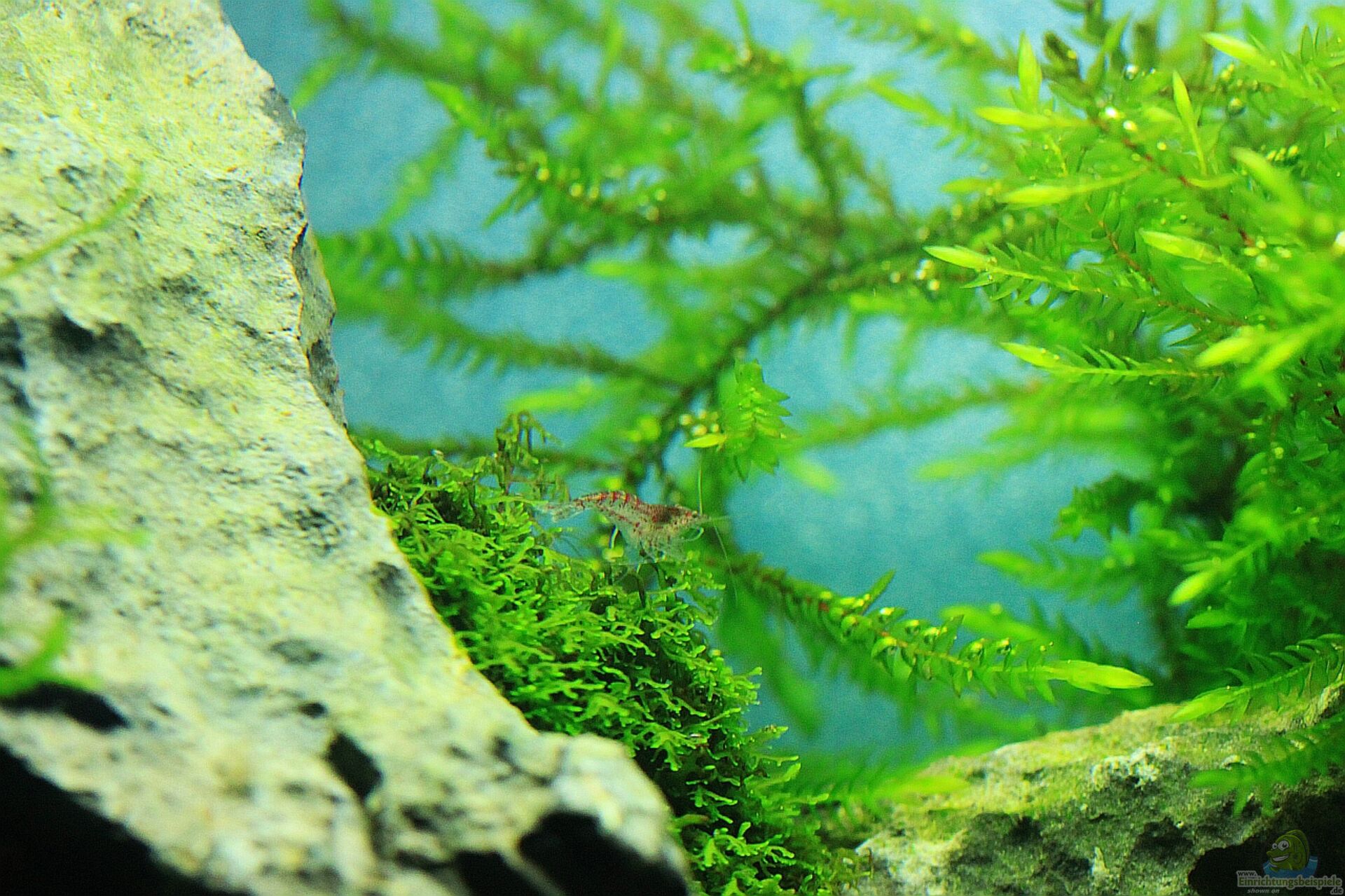 Zudem sind gerade Zwerggarnelen der optimale Besatz für ein mit Moosen betriebenes Aqua, sie wuseln den ganzen Tag auf und im Moos umher um nach fressbaren wie Kleinstlebwesen und auch Algen zu suchen, ja sogar abgestorbene Pflanzenreste des Mooses werden nicht verschmäht, sie sind der ideale Gärtner, denn Zwerggarnelen halten das Moos frei von Algen und abgestorbenen Blättchen und fördern dadurch das Wachstum des Mooses so das es seine Filterwirkung weiterhin behält