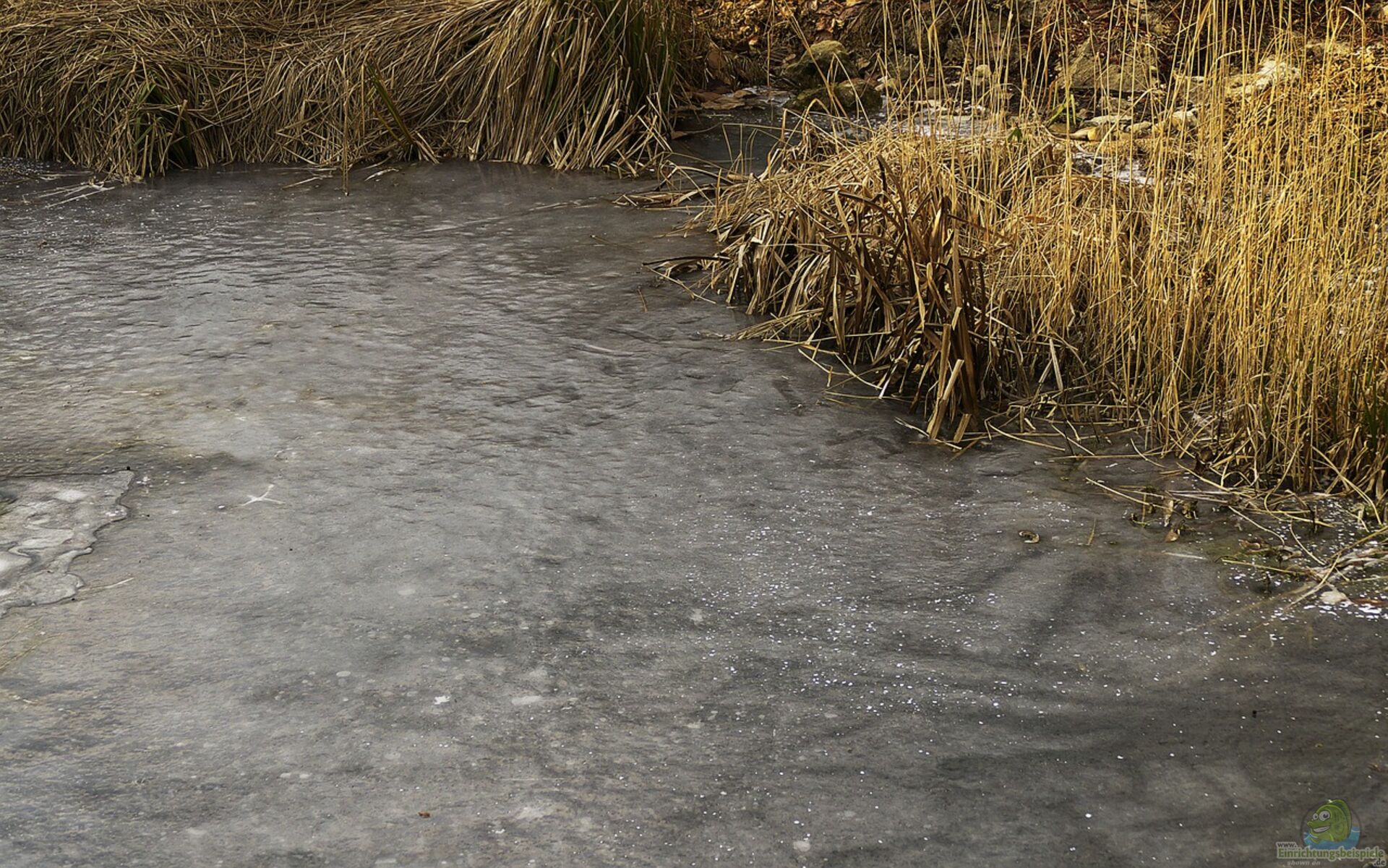 Sumpf- und Uferpflanzen wie Rohrkolben, Schilf und Seggen sollten handbreit über der Wasseroberfläche abgeschnitten werden. Diese hohlstieligen Pflanzen fungieren als natürlicher Sauerstoffleiter, der auch bei Eisbildung Gase entweichen lässt.