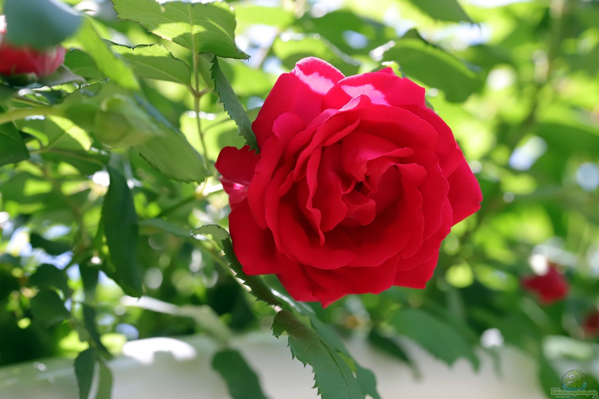 - „Sympathie“ (Kletterrose): Leuchtend rote Blüten, klettert bis zu 3 m hoch.