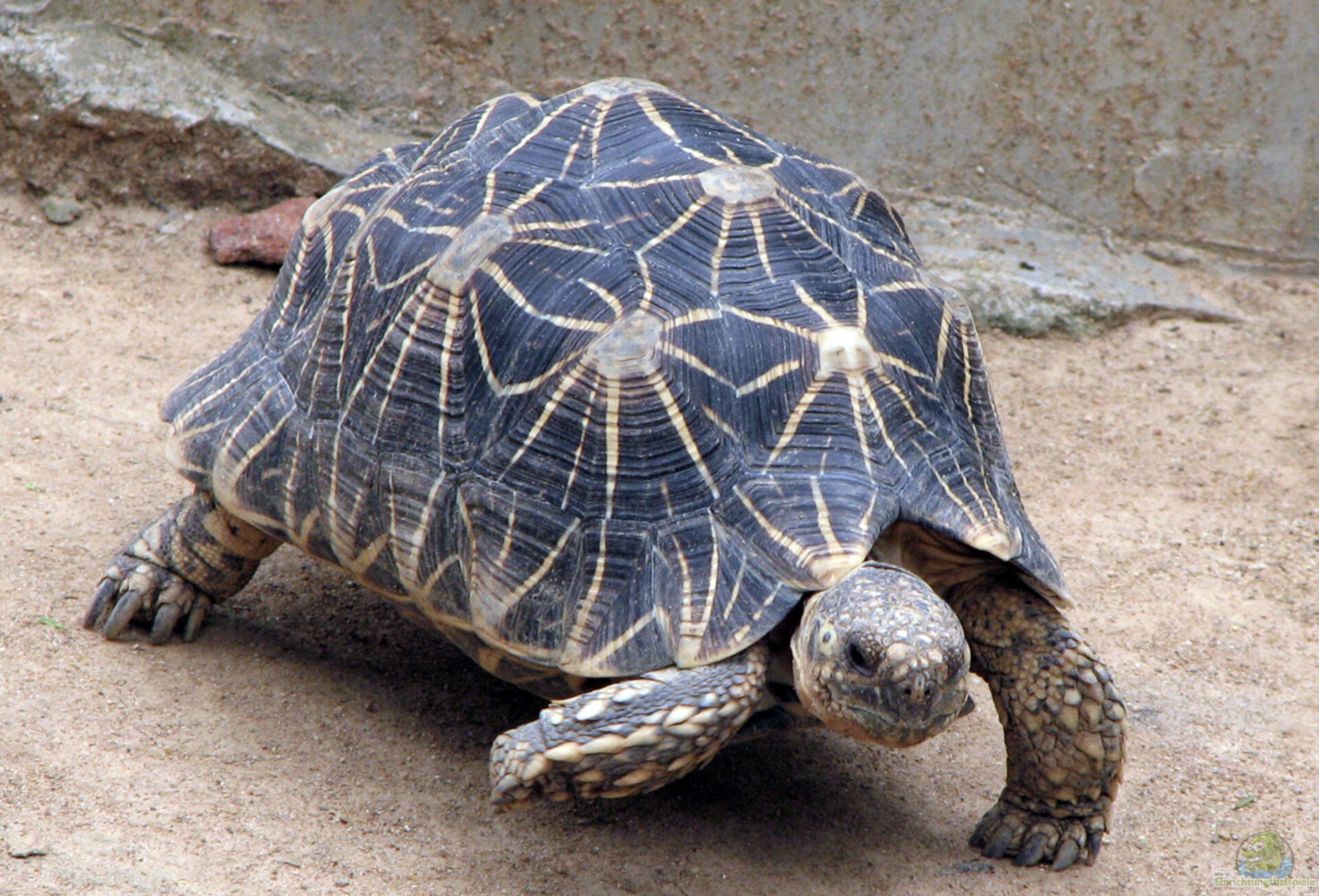 - Indische Sternschildkröte (Geochelone elegans): Diese Schildkrötenart stammt aus Madagaskar und ist aufgrund ihrer schönen Musterung und ihres aktiven Verhaltens bei Terrarienliebhabern beliebt.