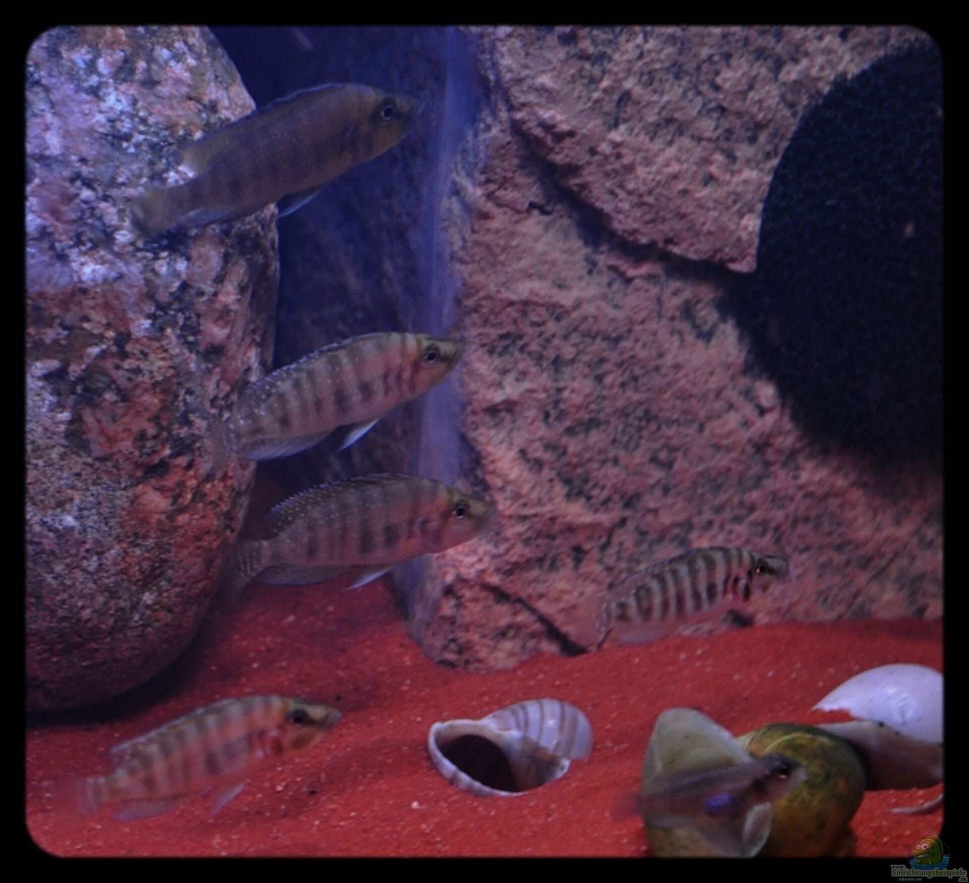Das AQ läuft bereits mit 1/1 Lamprologus ocellatus Besatz (noch Jungfische).