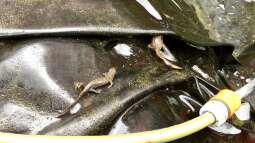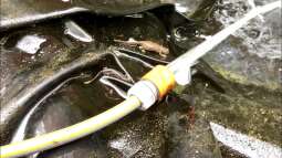 Das Biotop wird auch niemals ganz ausgelassen, damit noch genügend Mikroorganismen übrigbleiben und der Teich nicht kippen kann. Wenn dann ca.80-90% des Wassers ausgelassen wurden, kommt die Pumpe wieder aus dem Teich und ich beginne mit einem Schlauch die verbliebenen Blätter in die übriggebliebene Wasserpfütze zu spritzen. Anschlie??end werden mit einem Netz die Blätter und etwas vom Schlamm herausgeholt und in der Nähe des Teichs aufgebreitet, um etwaige Molche, Libellenlarven und Rückenschwimmer einzusammeln. Die aus Versehen gefangenen Tiere kommen vorrübergehend in Wassergefüllte Gefä??e, um sie so schnell als möglich wieder in den Teich zurück zu lassen??? Dies dauert meist 30-45min ??? wir versuchen uns dabei immer sehr zu beeilen, damit die Tiere so kurz als möglich dem Stress ausgesetzt werden. Meine Mutter ist mir da immer eine gro??e Hilfe.