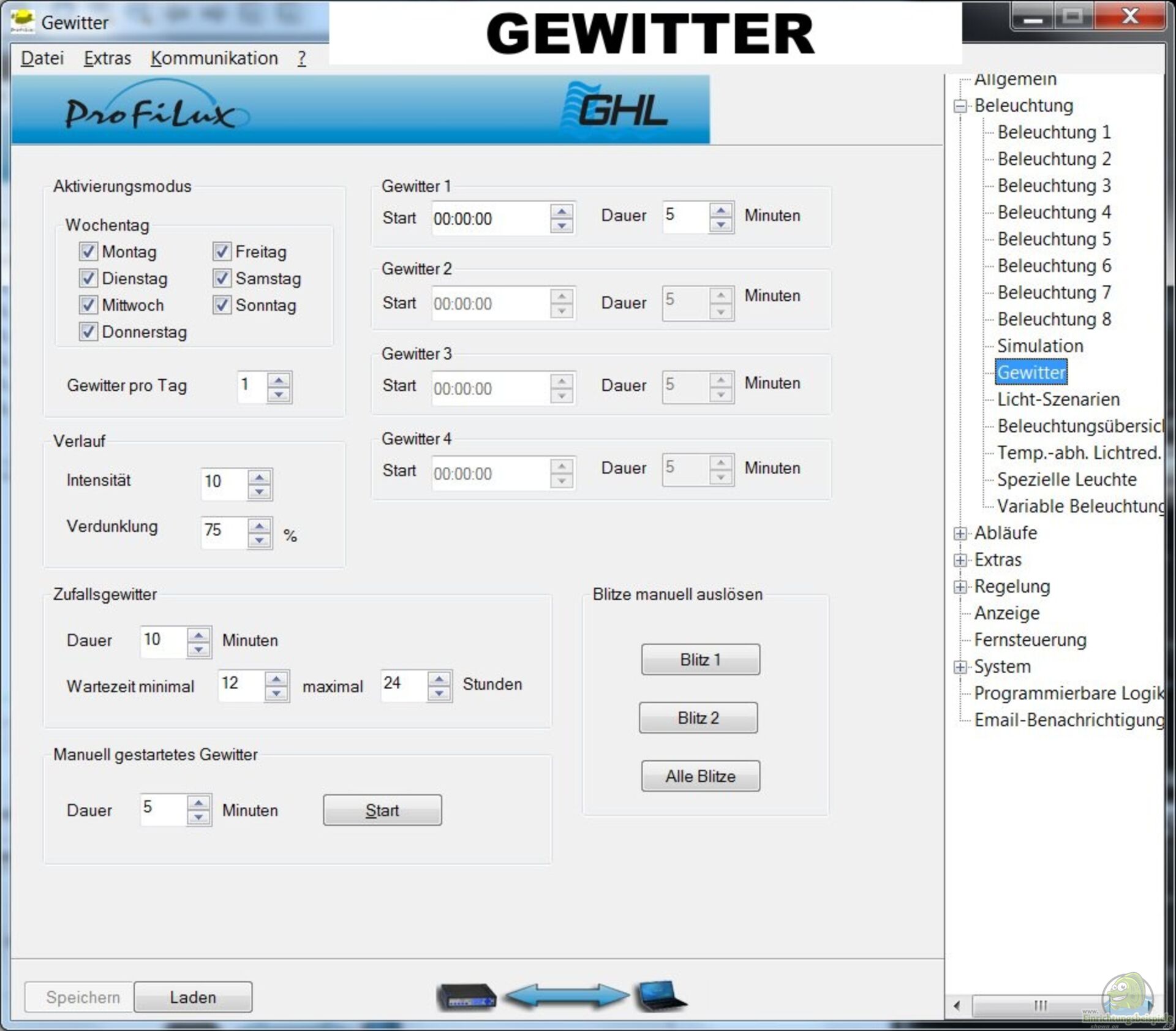 Wem das nicht reicht kann auch ganze Regentage oder Gewitter programmieren, so dass sich dann am besagten Tag das Aquarium generell dunkler zeigt.