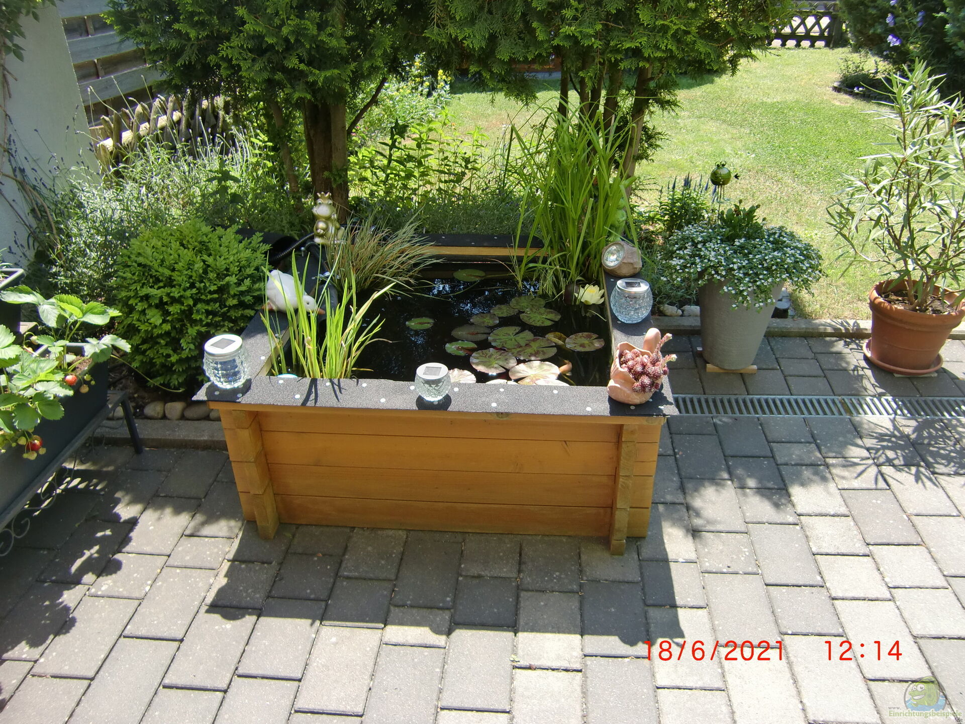 Falls eine Teichpumpe oder ein Wasserspiel integriert werden soll, ist ein Stromanschluss in der Nähe notwendig.