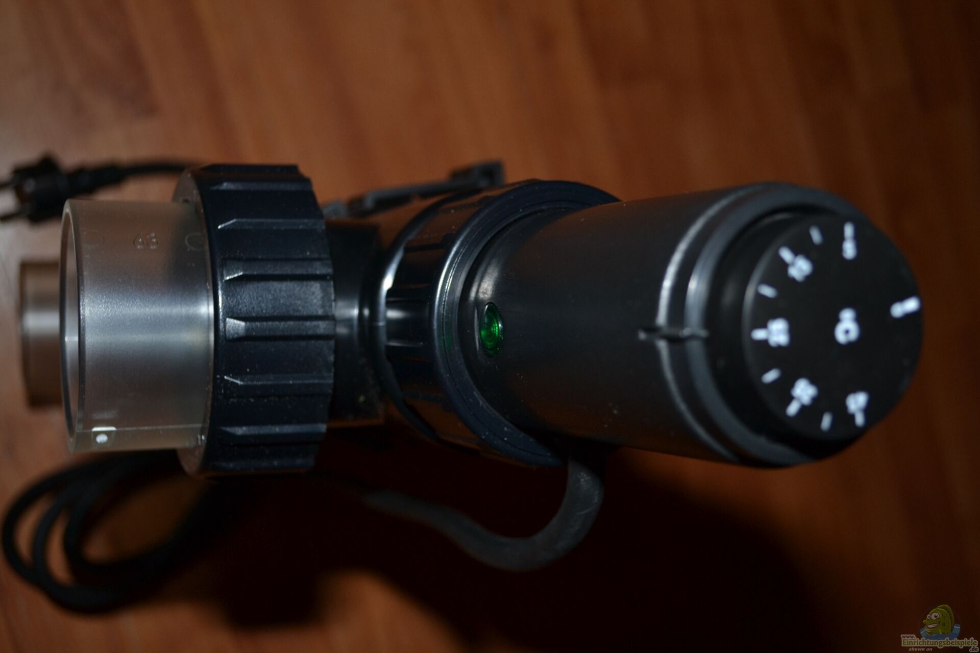 Foto 13: Stellmotor als Ersatz für den mechanischen Heizungsthermostaten mit Fernfühler. Gesteuert wird er über den Hydor Hydroset, oder auch über einen GHL Profilux-Aquariencomputer.