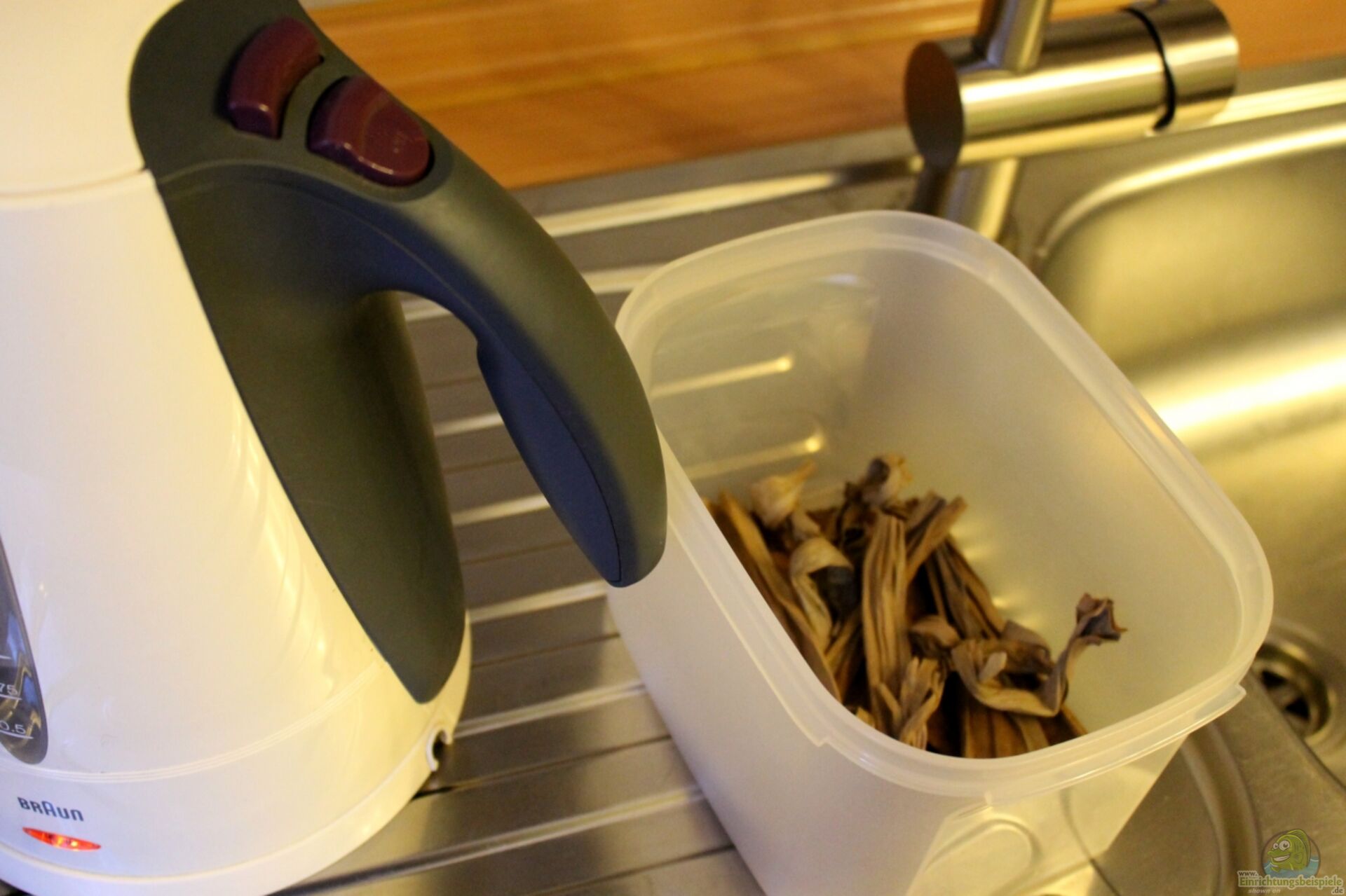 Nun, viele werden sich jetzt Fragen; dann kann ich ja auch anderes Laub und/oder Seemandelbaumblätter verwenden. Ja, natürlich kann man das, allerdings stehen vor allem
