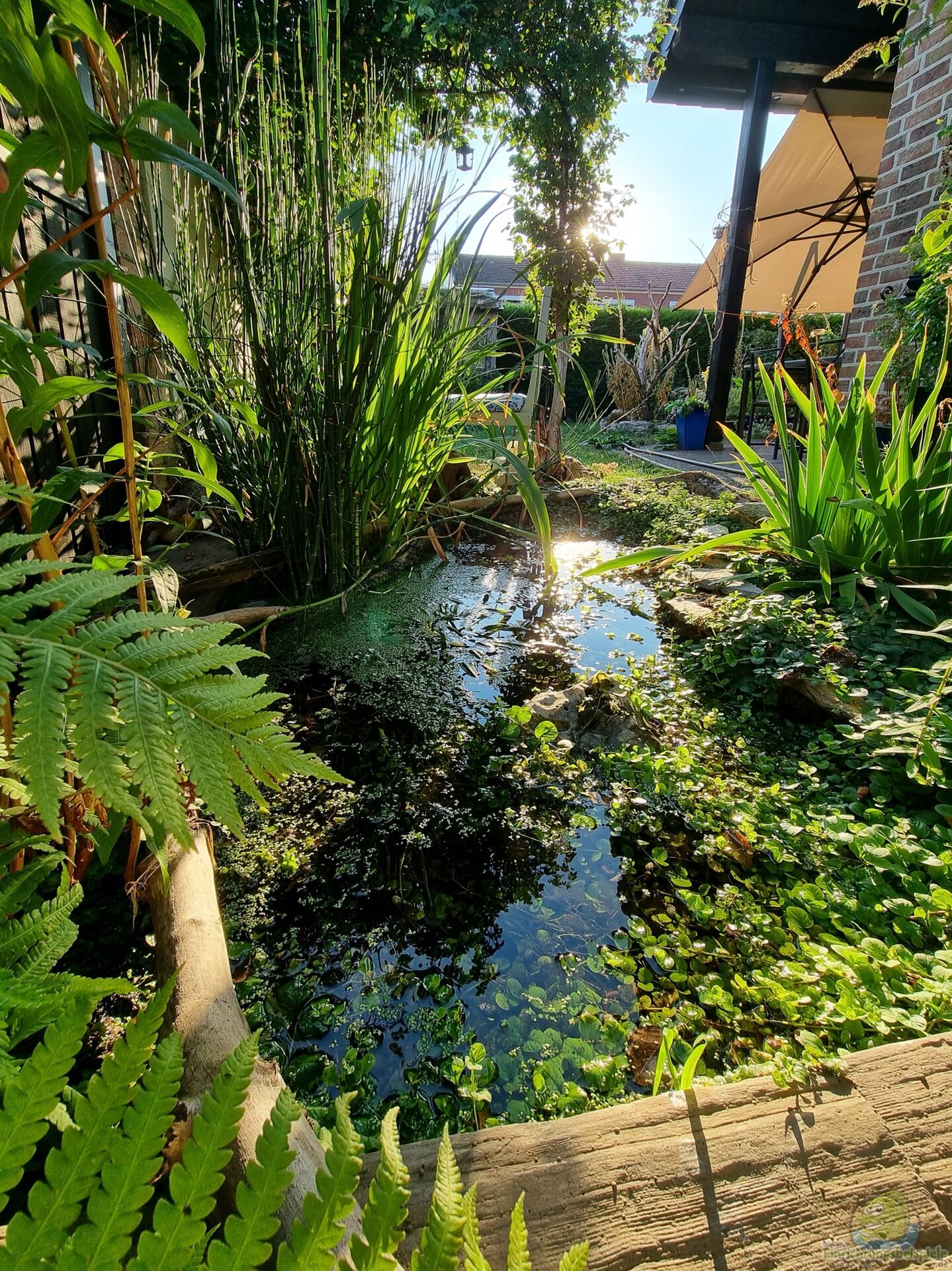 Ein naturnaher Teich ist in vielen Gärten anzutreffen. Er sieht zwar natürlich aus, wird aber durch Technik wie Filter, Pumpen oder Wasserspiele beeinflusst. Ebenso sind meist Fische vorhanden – oft mehr, als für ein biologisches Gleichgewicht förderlich wäre.