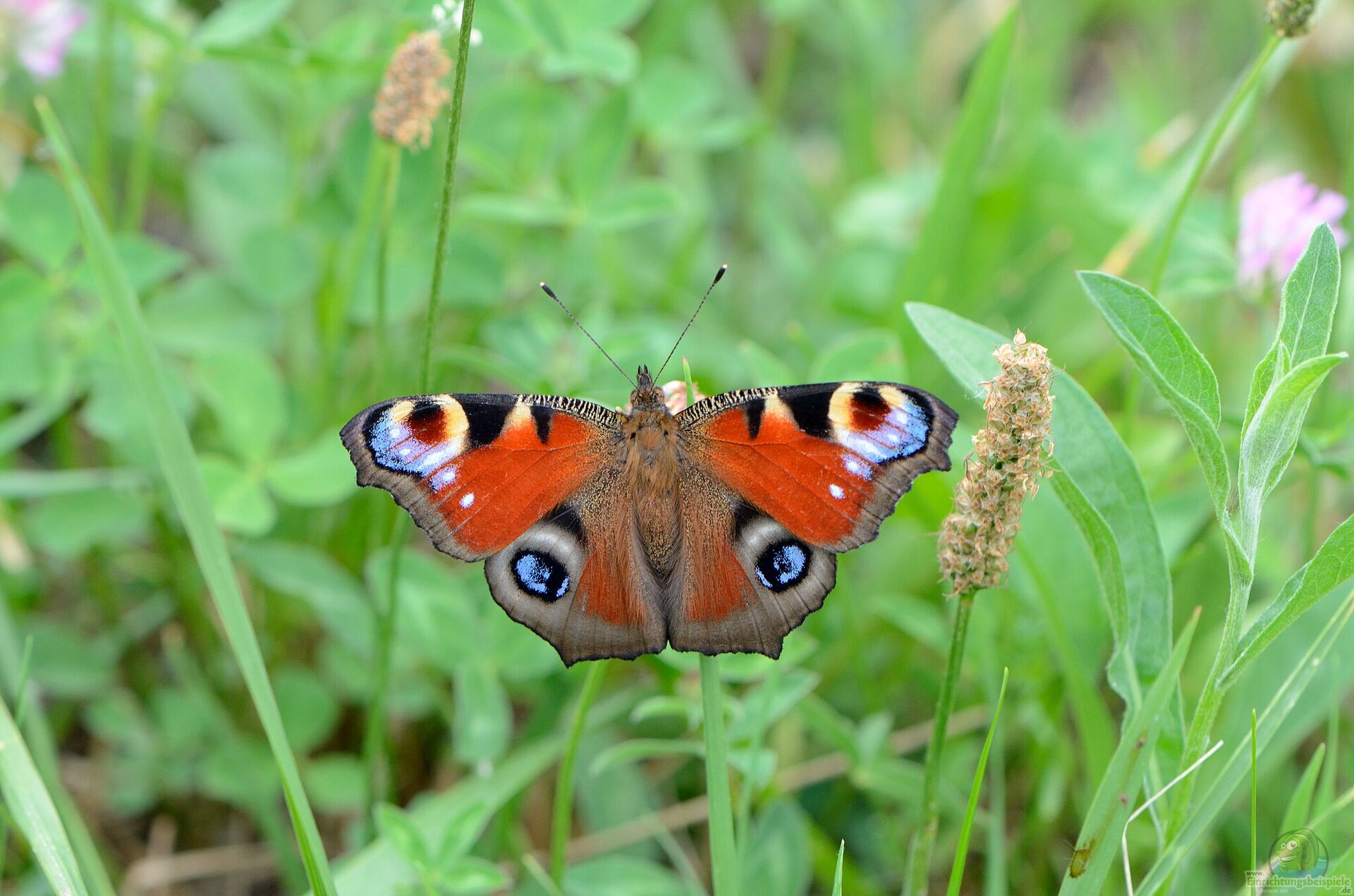 - Aussehen: Orange-braune Flügel mit dunklen Flecken und hellblauen Rändern. Ähnlich wie das Tagpfauenauge, aber kleiner.