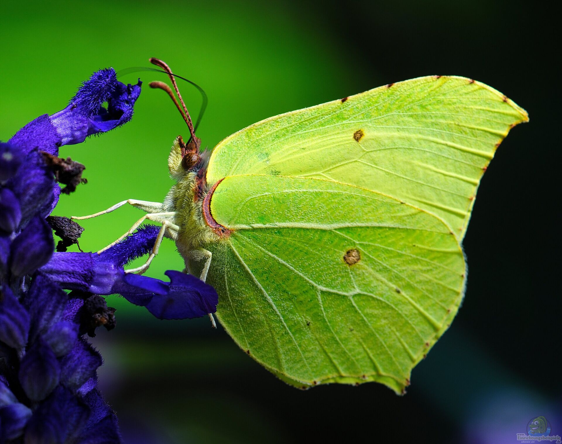 - Aussehen: Die Männchen haben leuchtend gelbe Flügel, während die Weibchen blasser, fast weißlich sind. Die Flügel sind leicht gezackt und erinnern an Blätter.