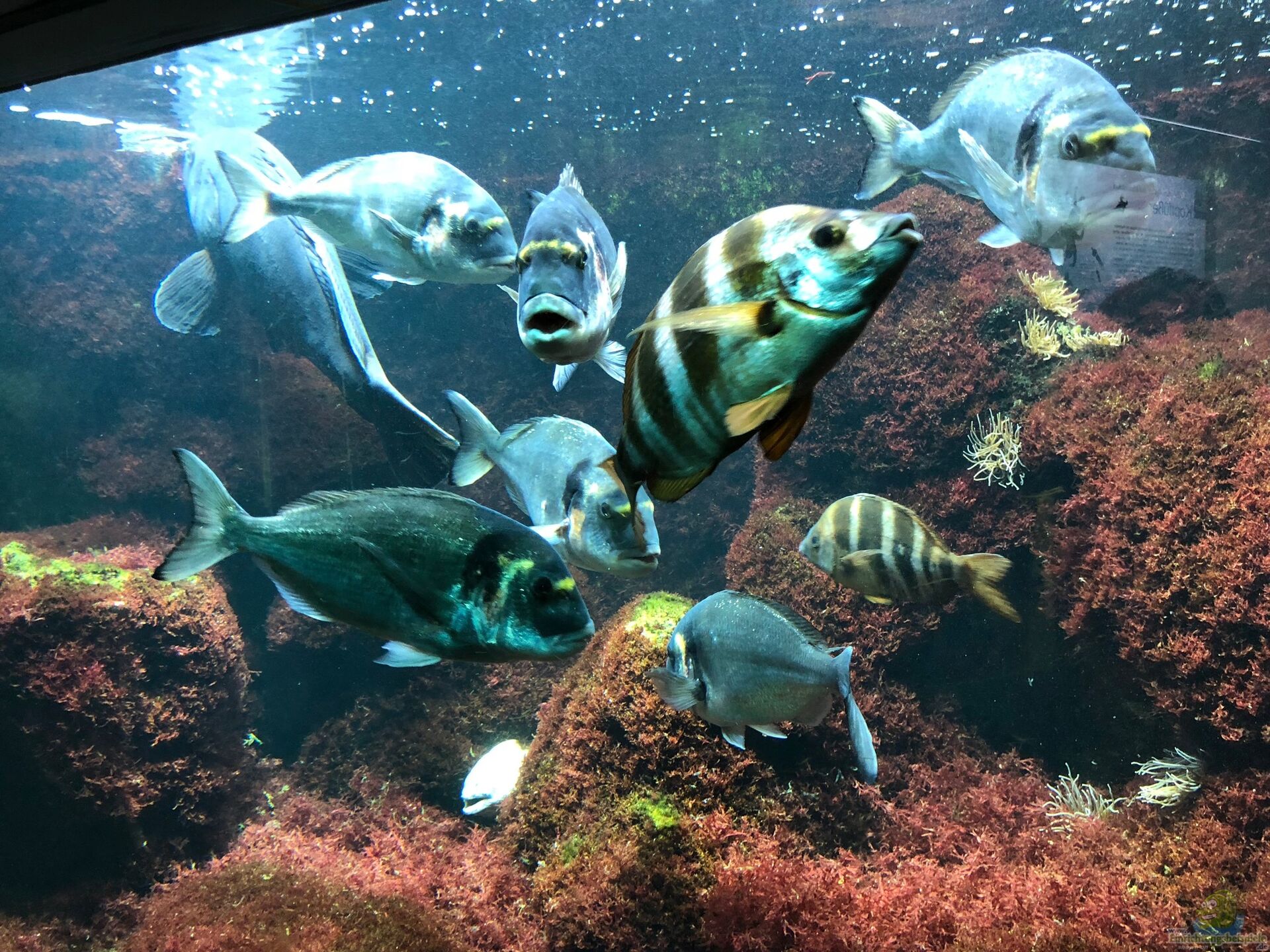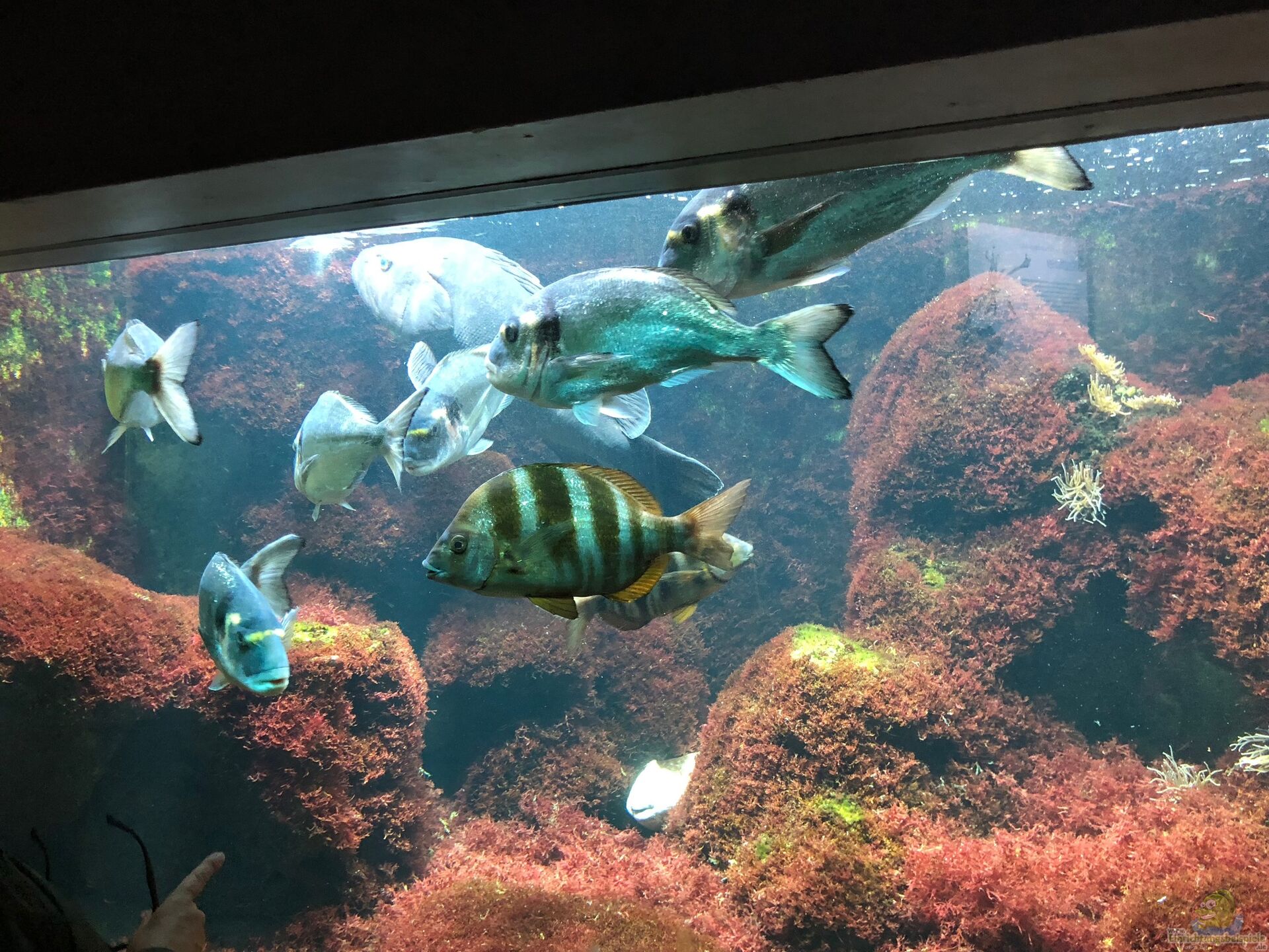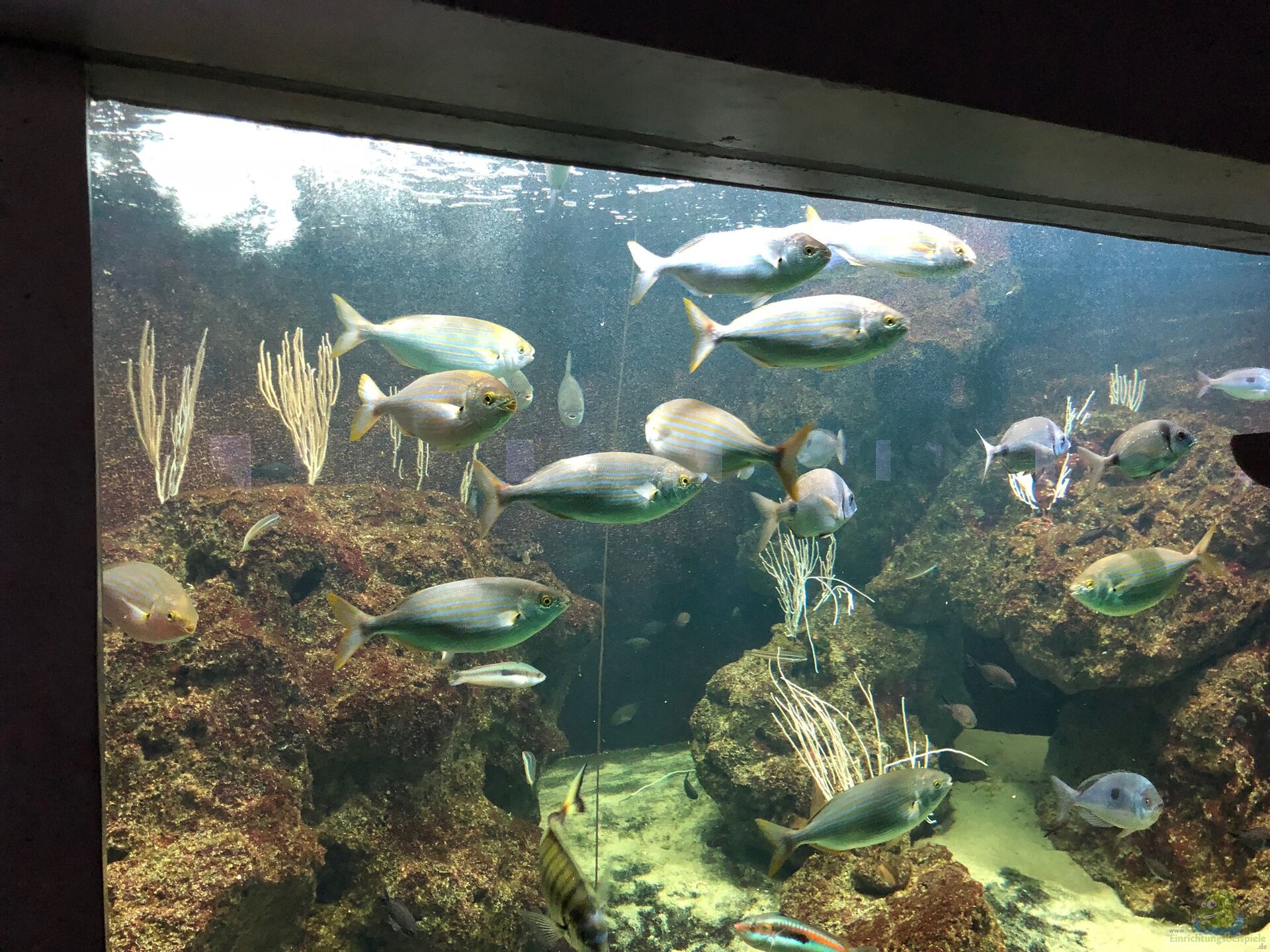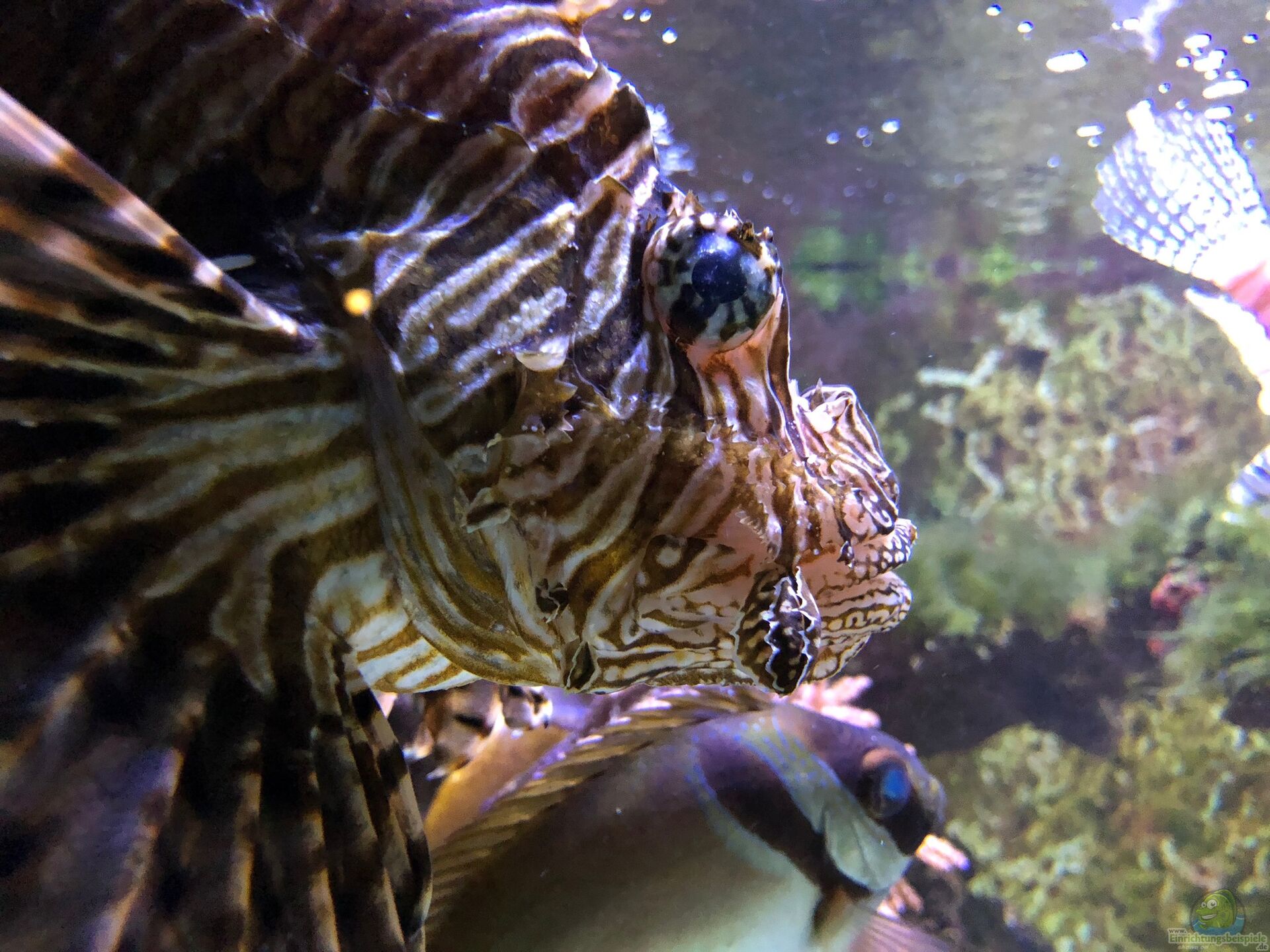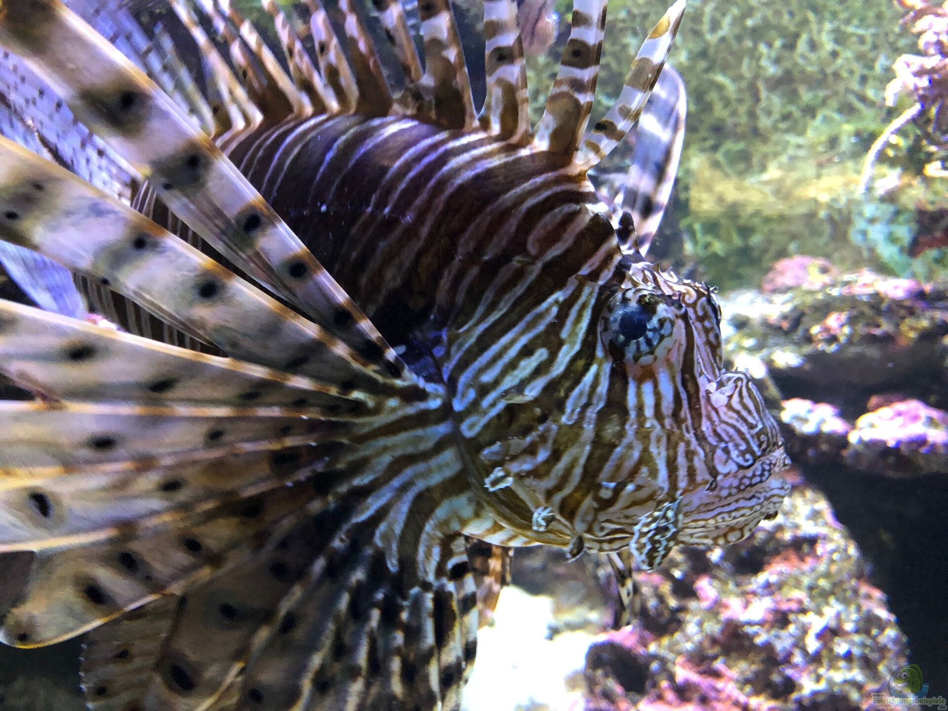 Gleich zu Beginn, als wir die Aquarien-Anlage betraten, sahen wir als erstes prächtige Meerwasserfische und Anemonen. Schon mal vorweg ??? ich finde, das Aquarium sehr toll aufgestellt und es werden eine gro??artige Palette an verschiedensten Fischen und anderen Lebewesen gezeigt, die weltweit vorkommen. Sehr beeindruckt war ich von einigen Rotfeuerfischen, die wirklich riesig waren. So gro??e Exemplare habe ich bisher noch nicht live gesehen. ??brigens kommt der Rotfeuerfisch mittlerweile leider ???weltweit??? (in tropischen Meeren, jedoch auch schon im Mittelmeer bis Triest) vor. Die Tiere sind durch den Suezkanal und aus dem Roten Meer ins Mittelmeer eingewandert. Diese Einwanderung, die eigentlich einen Austausch von Lebewesen aus dem Mittelmeer und dem Roten Meer darstellt, wird Lessepssche Migration genannt.