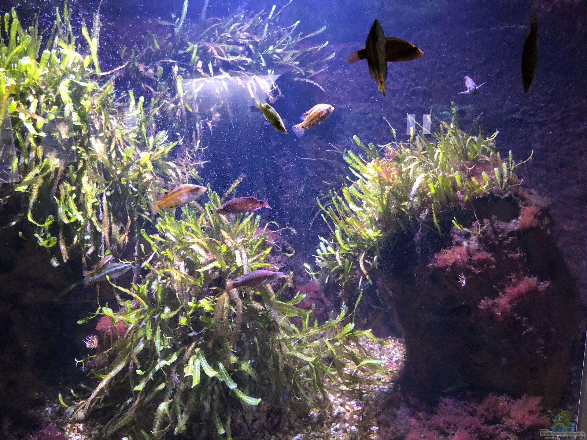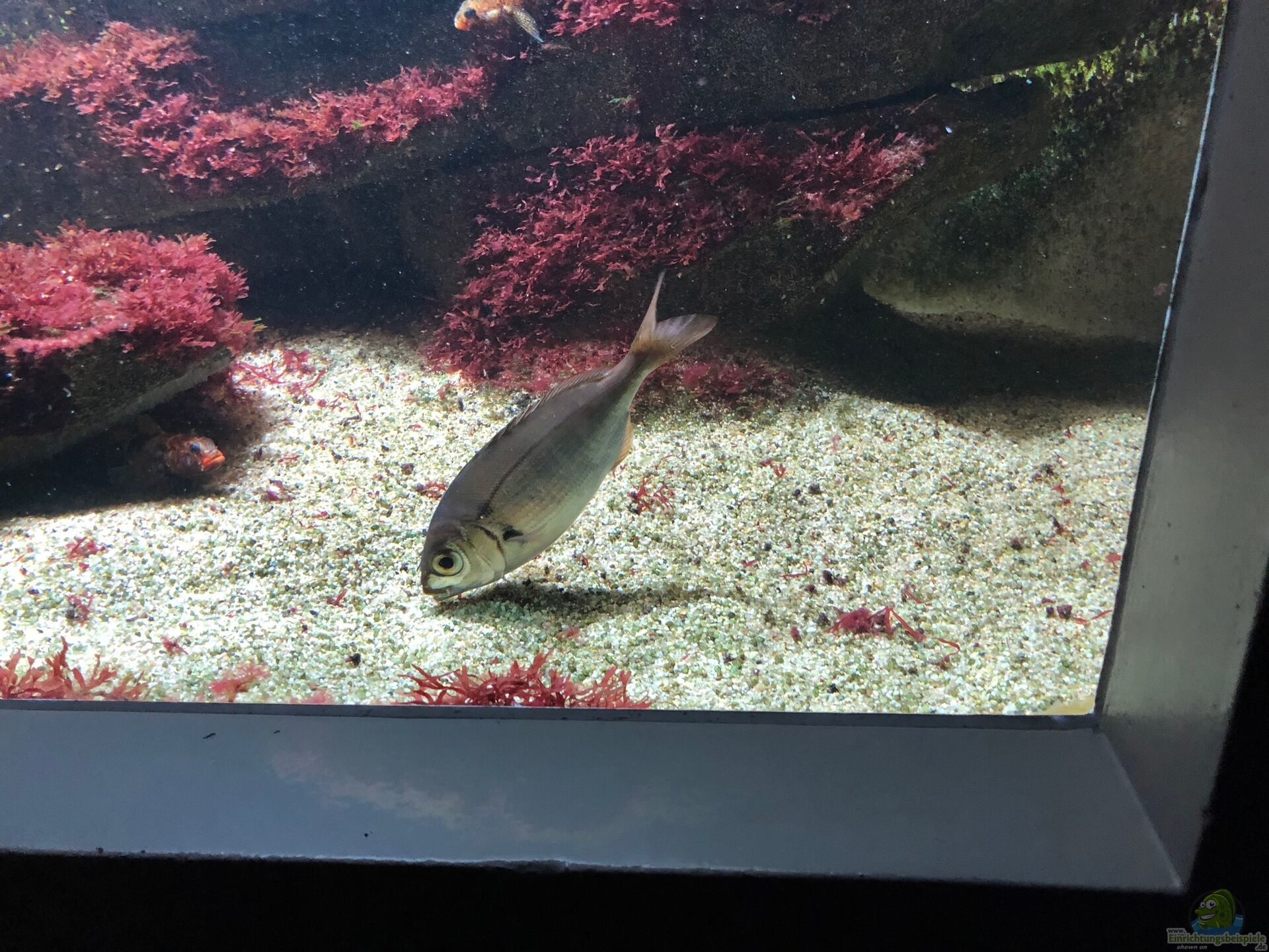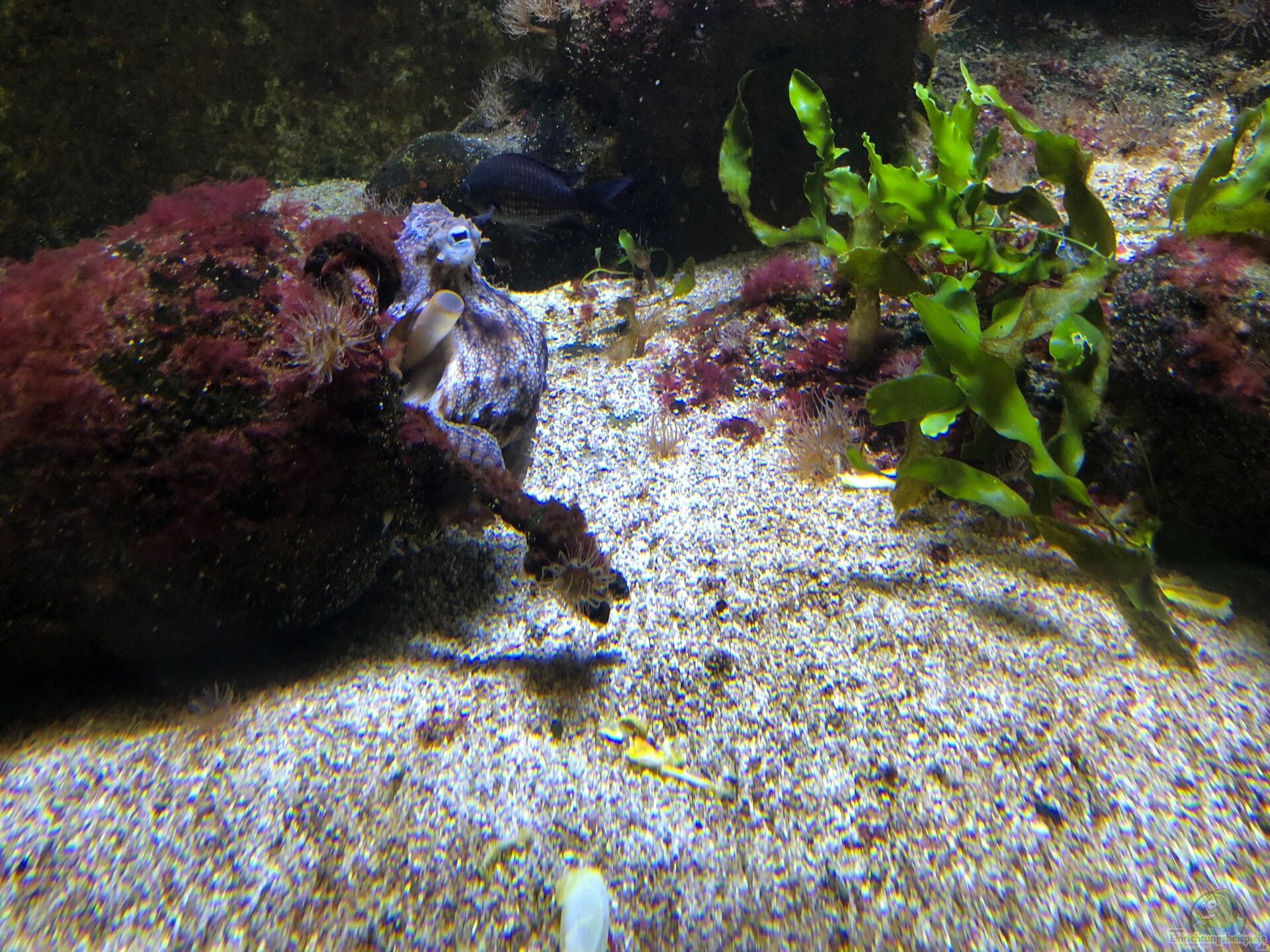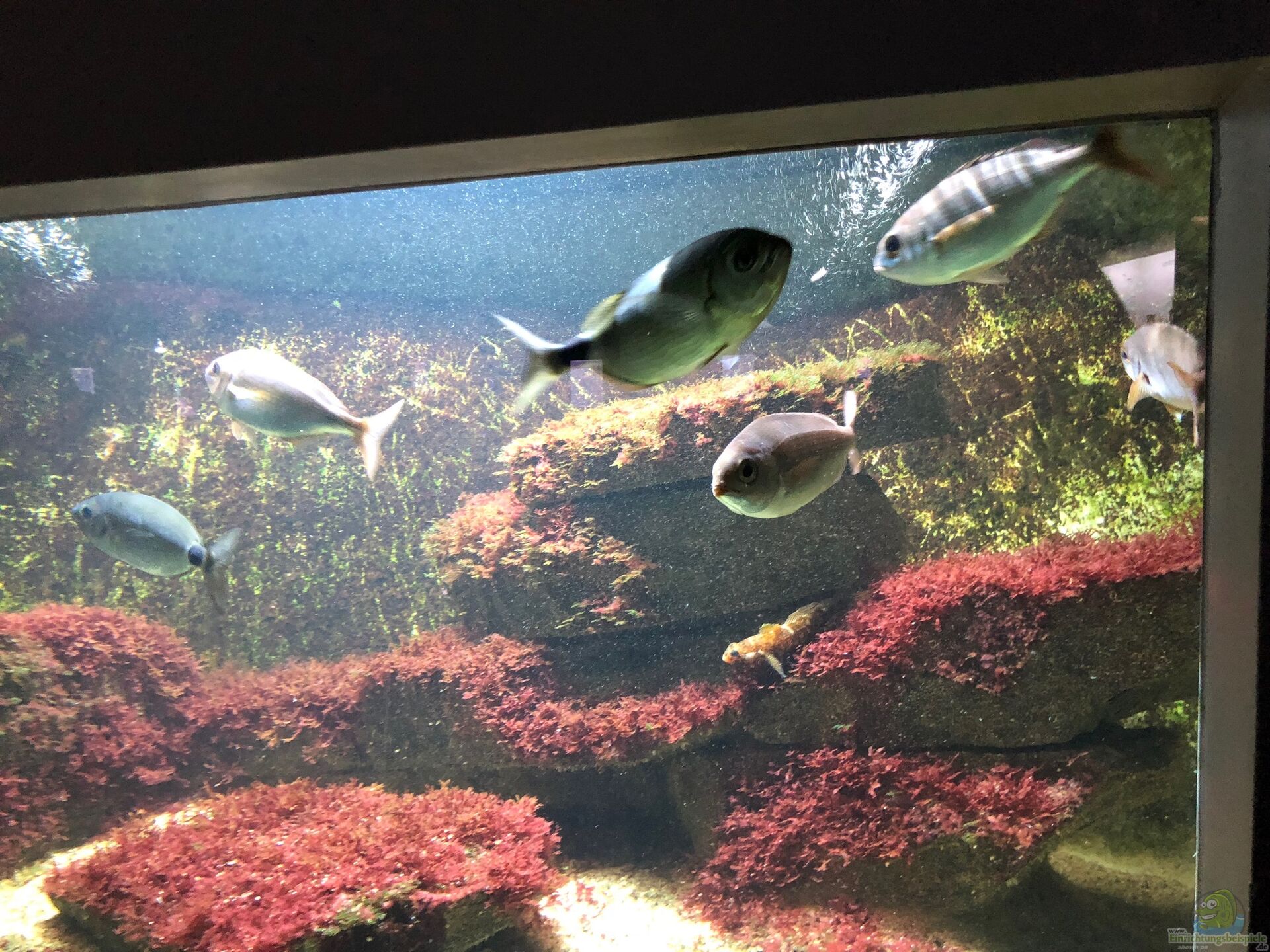 Besonders schöne Farben zeigte ein Knurrhahn, der in ???seinem??? Becken von einem kleineren, ???dicken??? Fisch, der gerne mal auf ???seinem??? Aussichtspunkt zu ???liegen??? schien beobachtet wurde. Leider wei?? ich den lateinischen Namen dieses Fisches nicht mehr. Der Knurrhahn hatte knallige Rot- und Gelb-Töne und zog im Becken seine Bahnen.