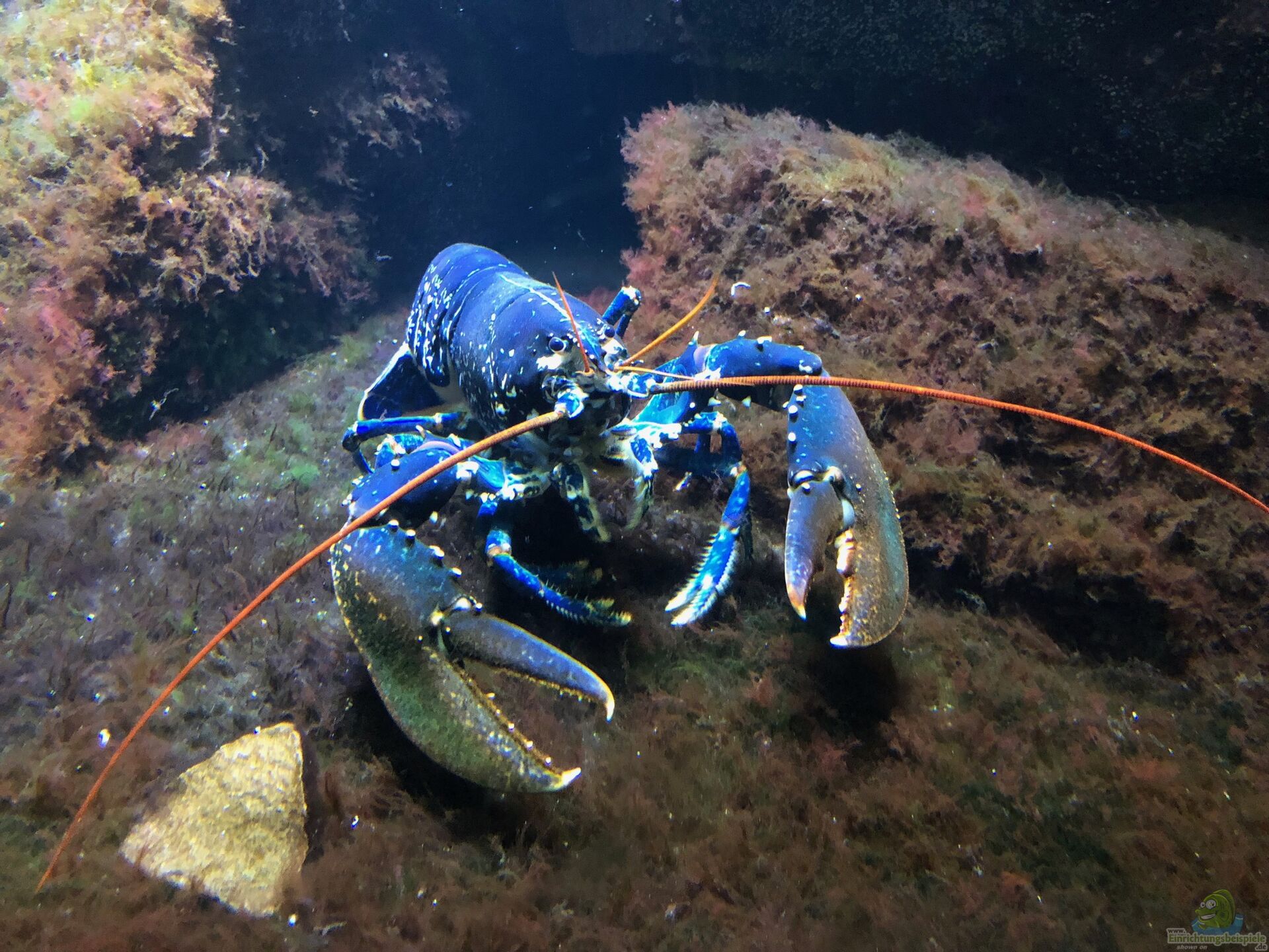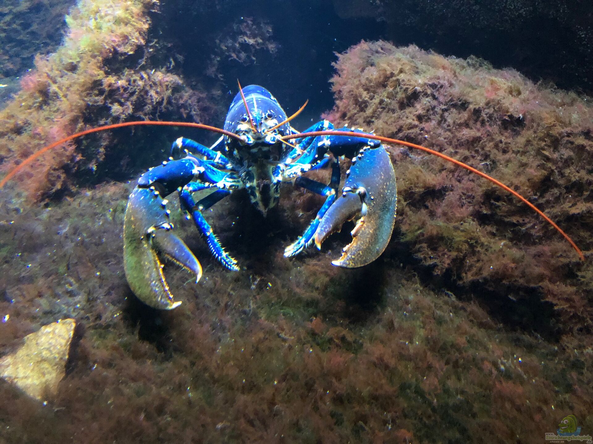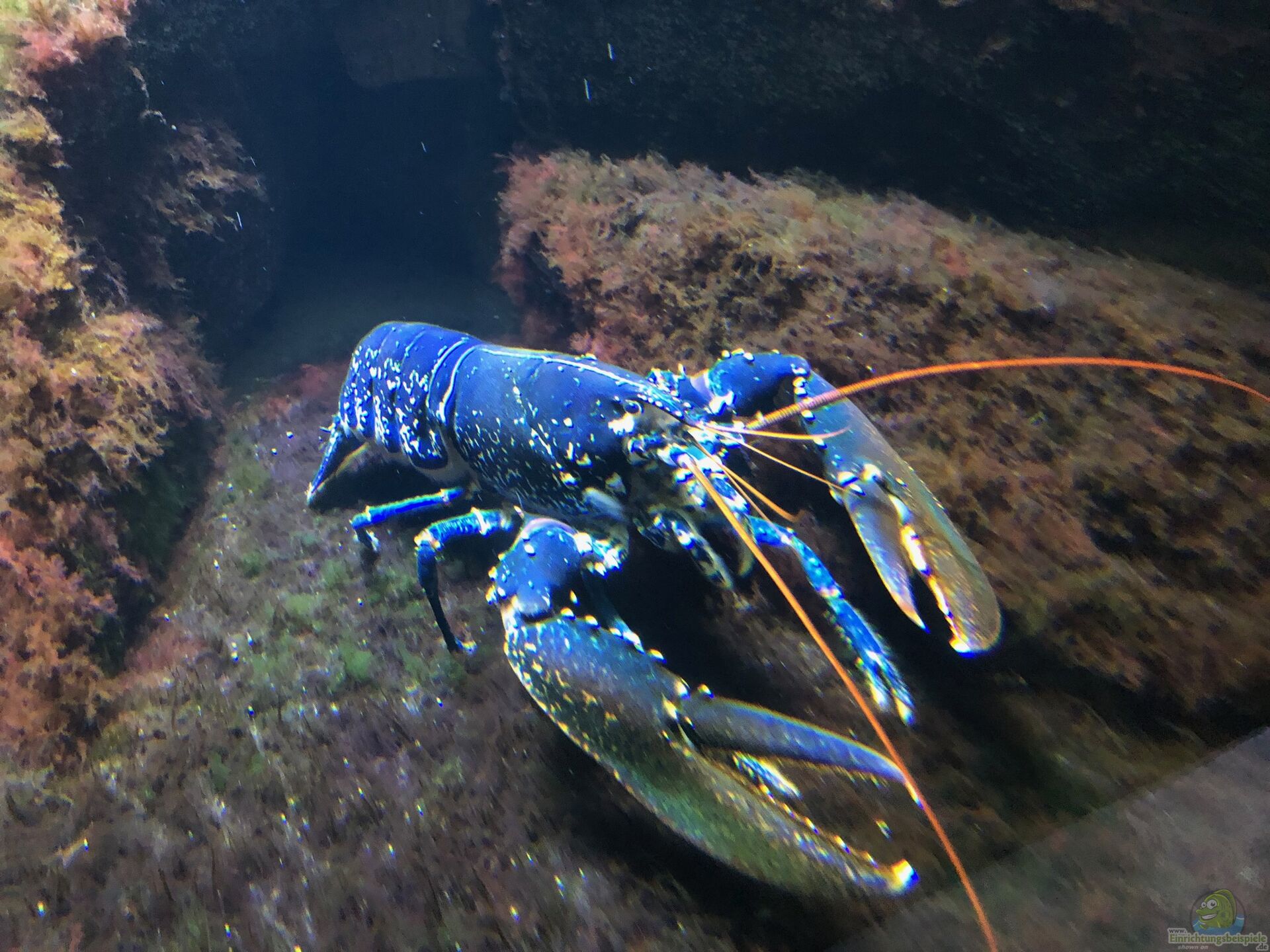 Besonders beeindruckt war ich von dem wunderschönen Exemplar eines europäischen Hummers in einem der Aquarien. Seine Beine glänzten stahl-blau und ebenso seine Körper-Schilde. Manche Partien waren in einem kräftigen Rostrot gefärbt. Der ???Soldat des Meeres??? sa?? in seiner Höhle und kam sogar ???extra für Einrichtungsbeispiele.de??? aus seinem Spalt, um sich fotografieren zu lassen. Ein prächtiges Exemplar, das jedoch nicht wirklich über 21 Grad Celsius verträgt und relativ langsam wächst. Es dauert schon einige Jahre, bis so ein Hummer 30cm hat. Heutzutage werden die möglichen 60cm leider nur mehr selten erreicht.