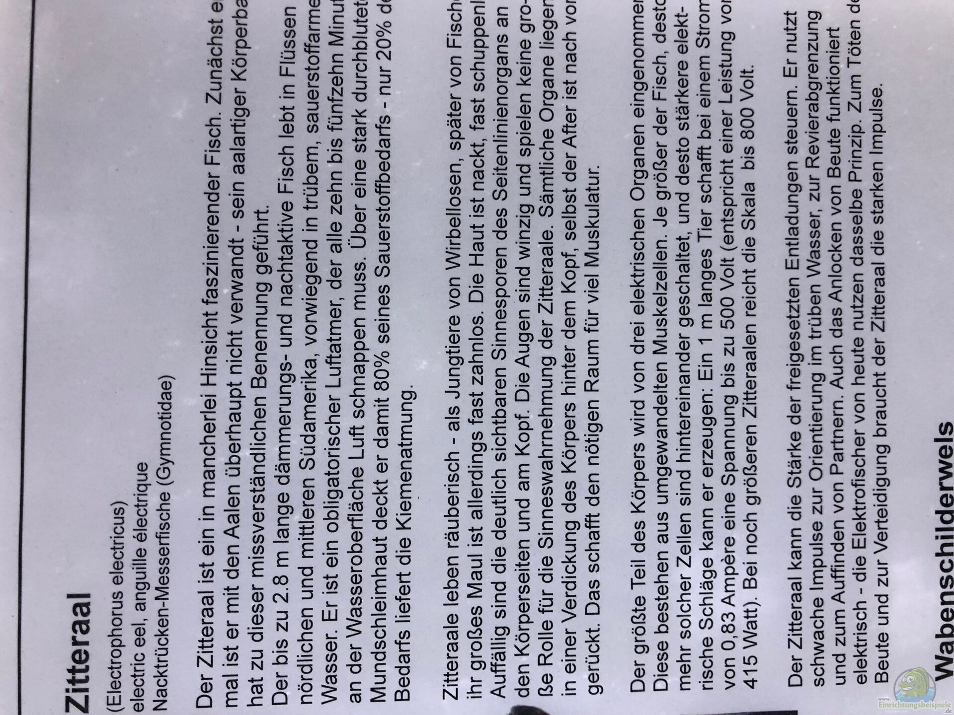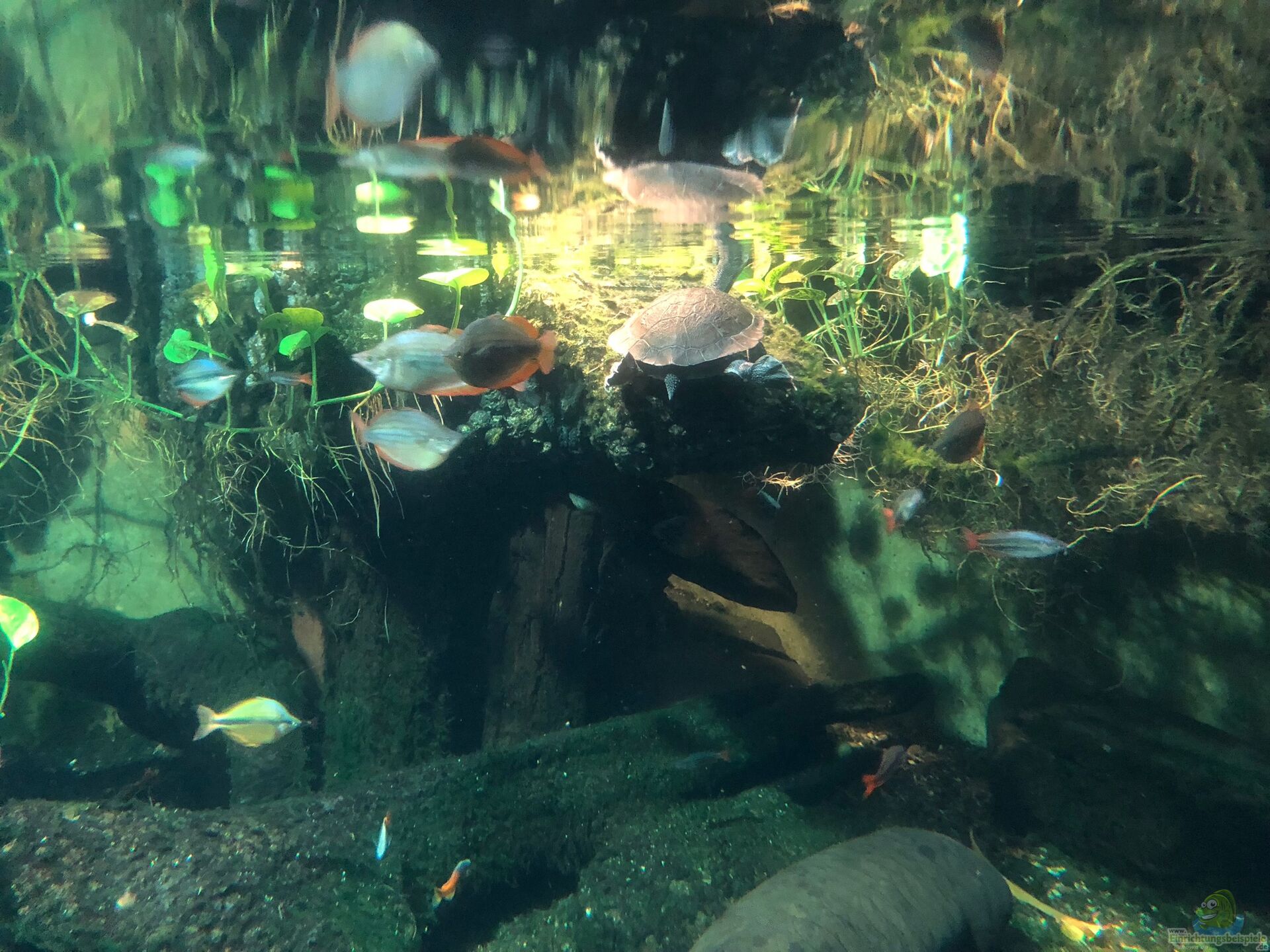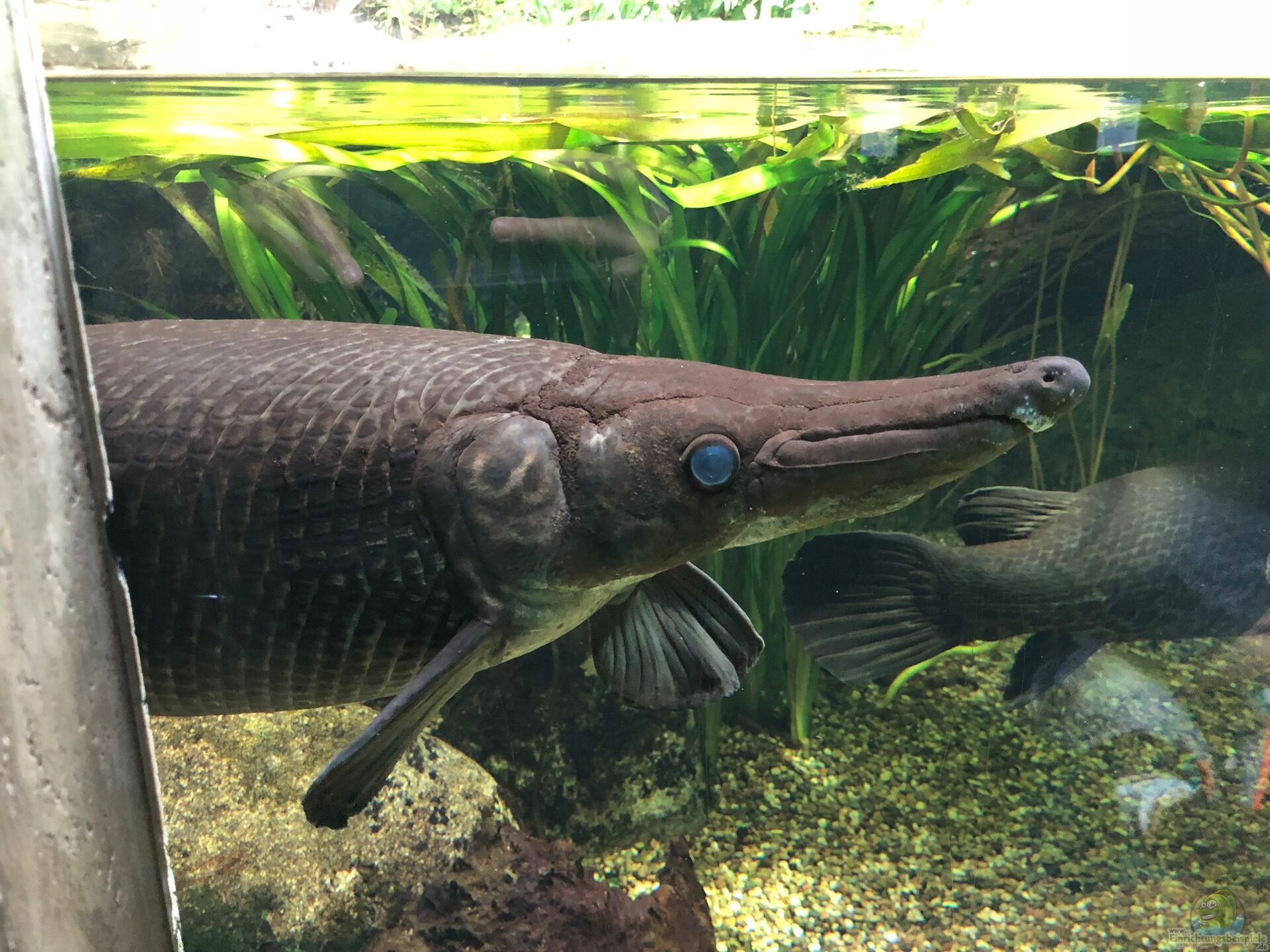 Ach ja, da wir eben bei gro??en Fischen sind??? Ein Becken, das man unbedingt besuchen sollte, das findet man im Amazonas-Glashaus, au??erhalb der Aquarien-Anlage. Hier kann man einen wundervollen, riesigen Arapaima und andere gro??e Vertreter aus dem Regenwald rund um den Erdball beobachten. Der Arapaima kann weit über 4m werden und wiegt dann um die 200kg. Seine schwarz-rote Färbung ist sehr ansprechend und seine Art zu schwimmen nahezu majestätisch. Tja, manche Tiere scheinen um ihre Ausstrahlung zu wissen und mir kommt vor, dieser Arapaima in der Wilhelmina gehört zu den besagten. In seiner Gesellschaft befinden sich Riesen-Guramis, Haibarben, Prachtschmerlen, gro??e Buntbarsche wie Kammbuntbarsche, über die in der Zeitschrift AMAZONAS Nr. 70 März/April 2017 ausführlich berichtet wurde und andere sehr gro?? werdende Fische, die nicht in die ???normale??? Aquaristik gehören.