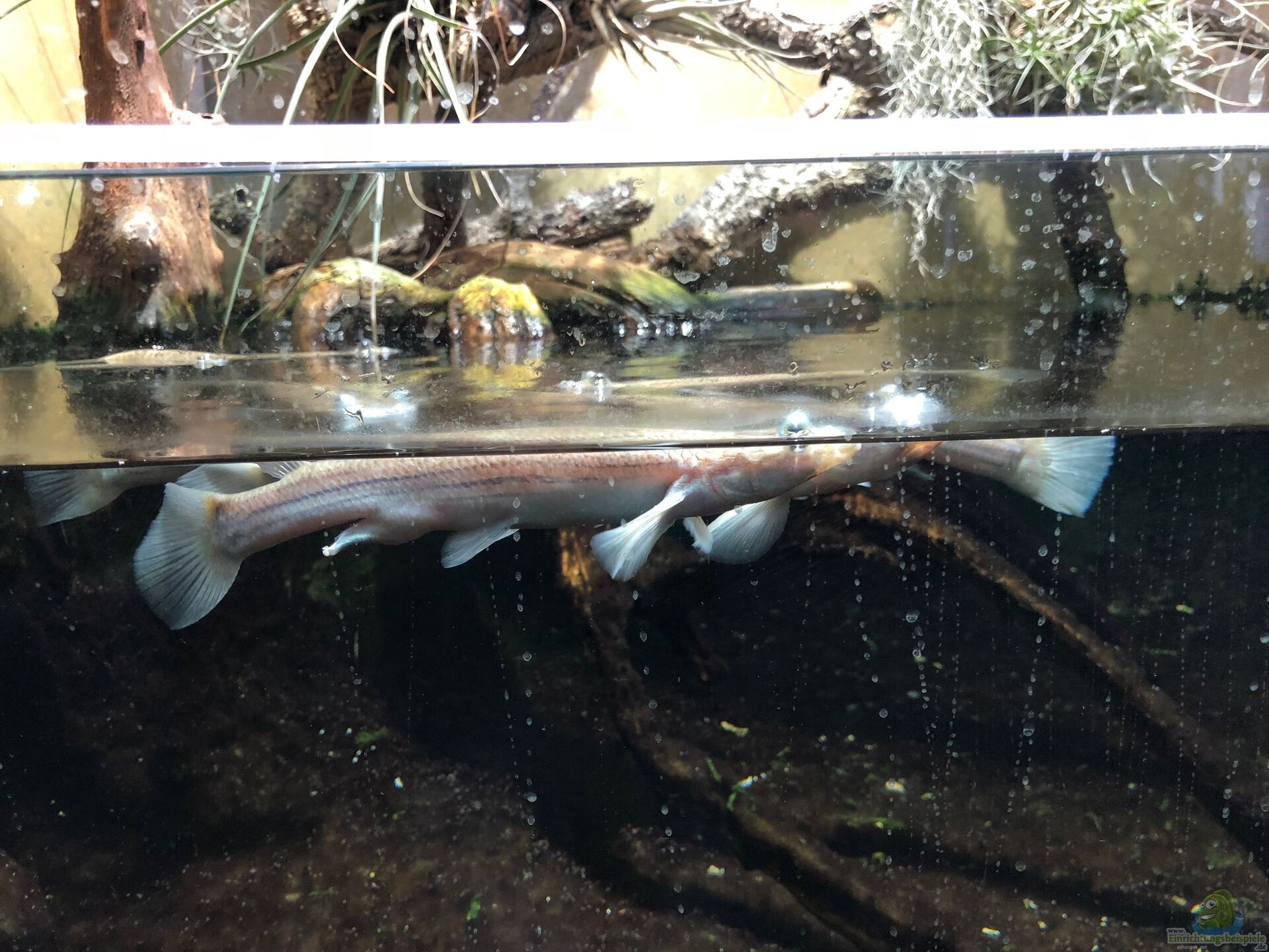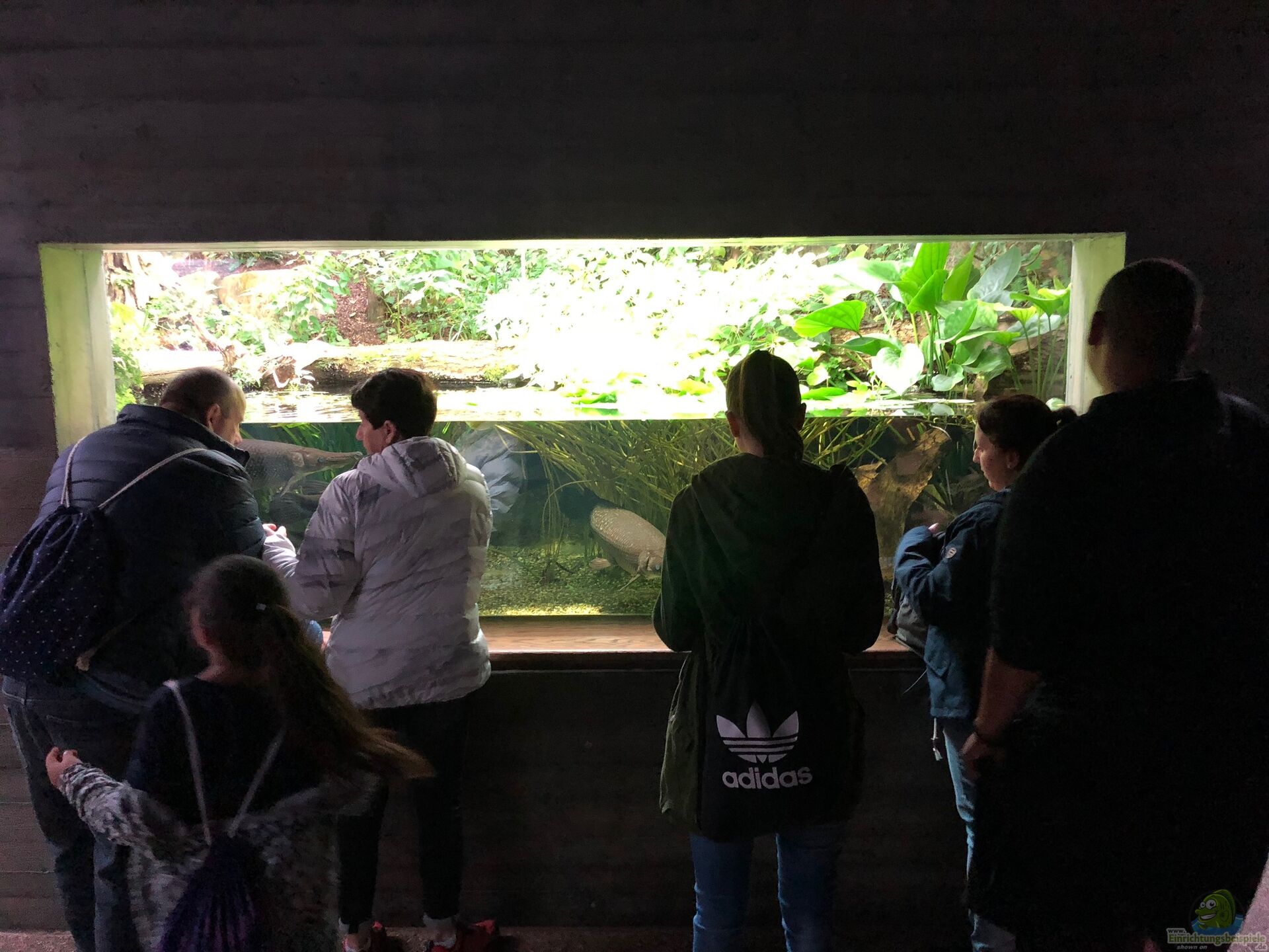 Vor dem Aquarium oder eigentlich ist es ein Paludarium mit den gro??en Knochenhechten und Schützenfischen tummelten sich ständig so viele Besucher sodass eine Gro??-Aufnahme nicht wirklich möglich war. Man musste schon etwas Geduld haben, damit ein Platz frei wurde und man sich die Tiere ansehen konnte.