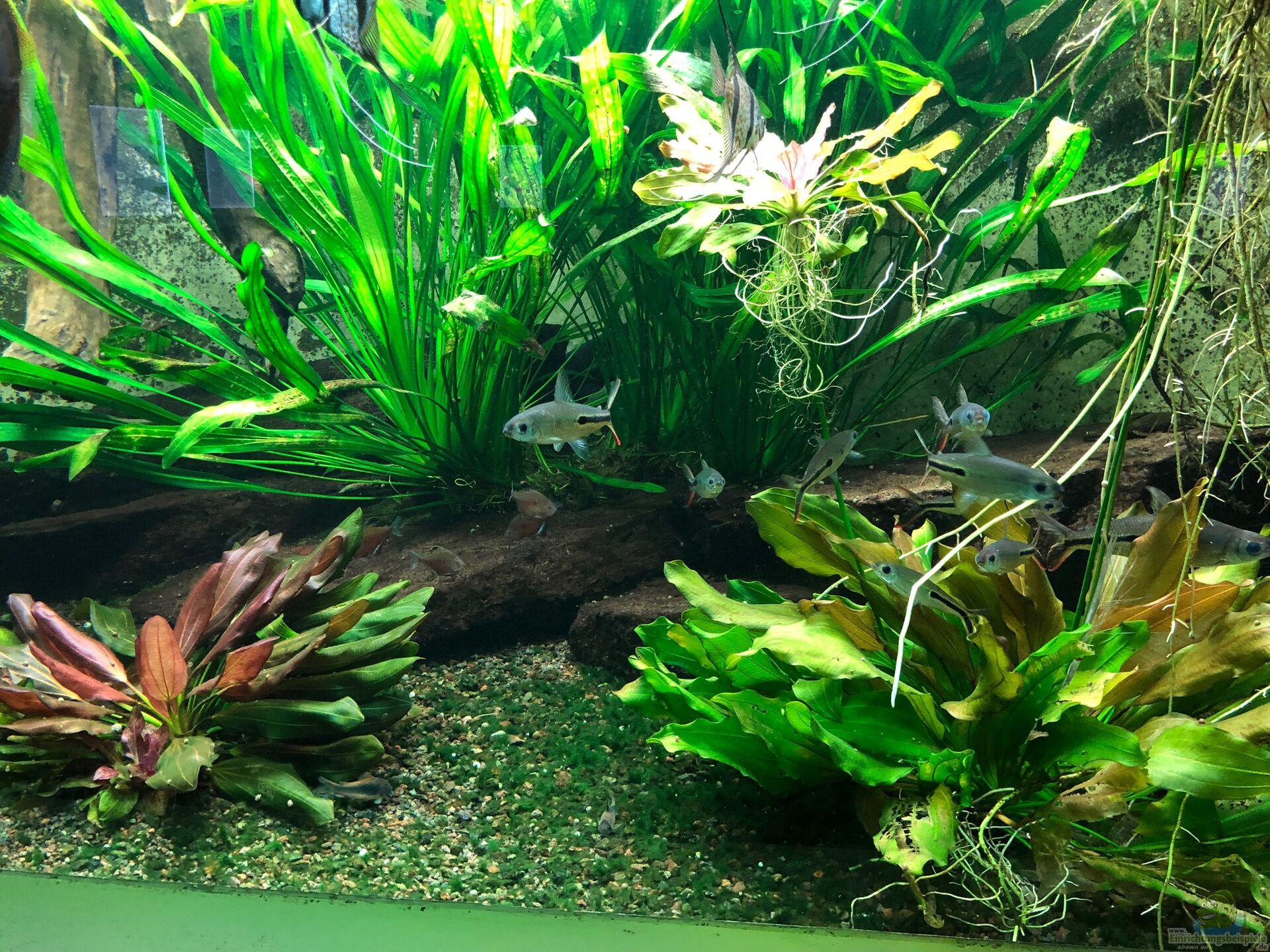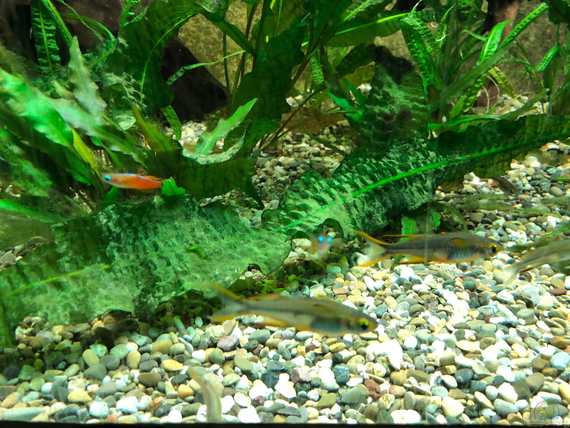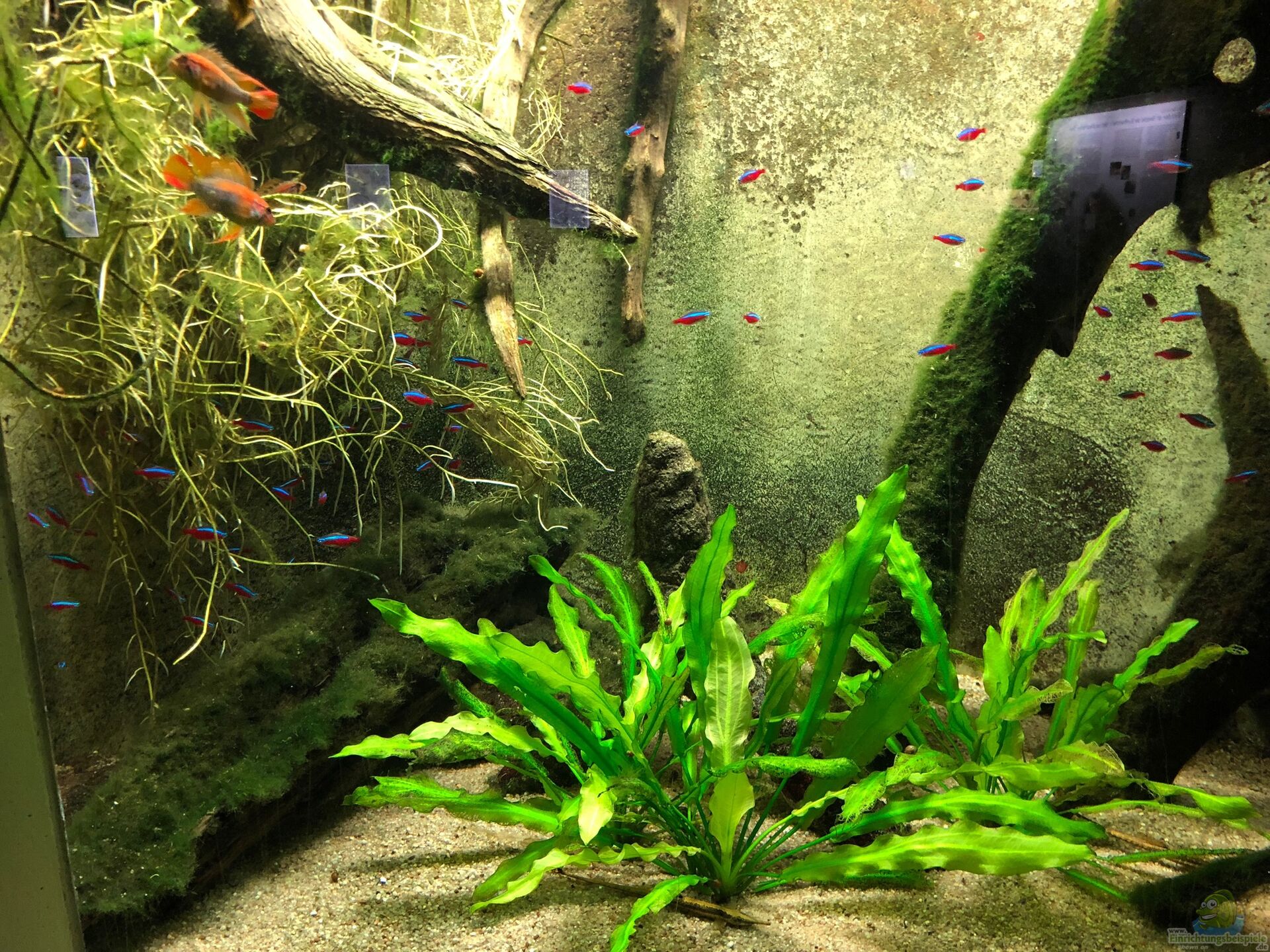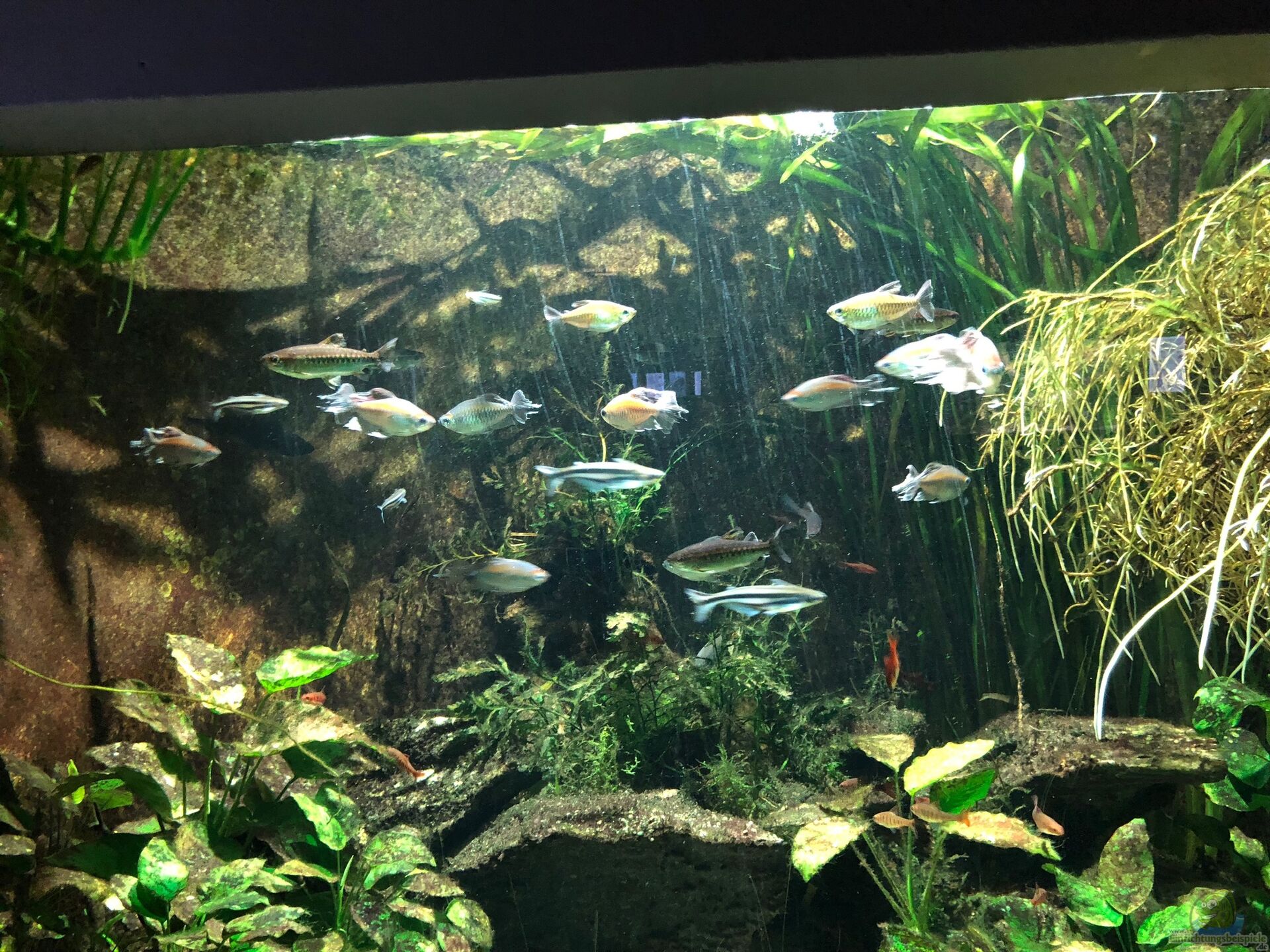 In einem weiteren Aquarium schwammen Rote Neons mit Zwergbuntbarschen, in wieder einem anderen Becken konnte man asiatische Flossensauger an verschiedenen Gegenständen beobachten und wie sie mit ihrem Maul die Scheibe abweideten. Und dann kam ein Aquarium, das erneut mein geliebtes Afrika zum Thema hatte mit afrikanischen Barben, Messerfischen, Salmlern und anderen Fischen von diesem Kontinent, wie sie meist in West-Afrika vorkommen.
