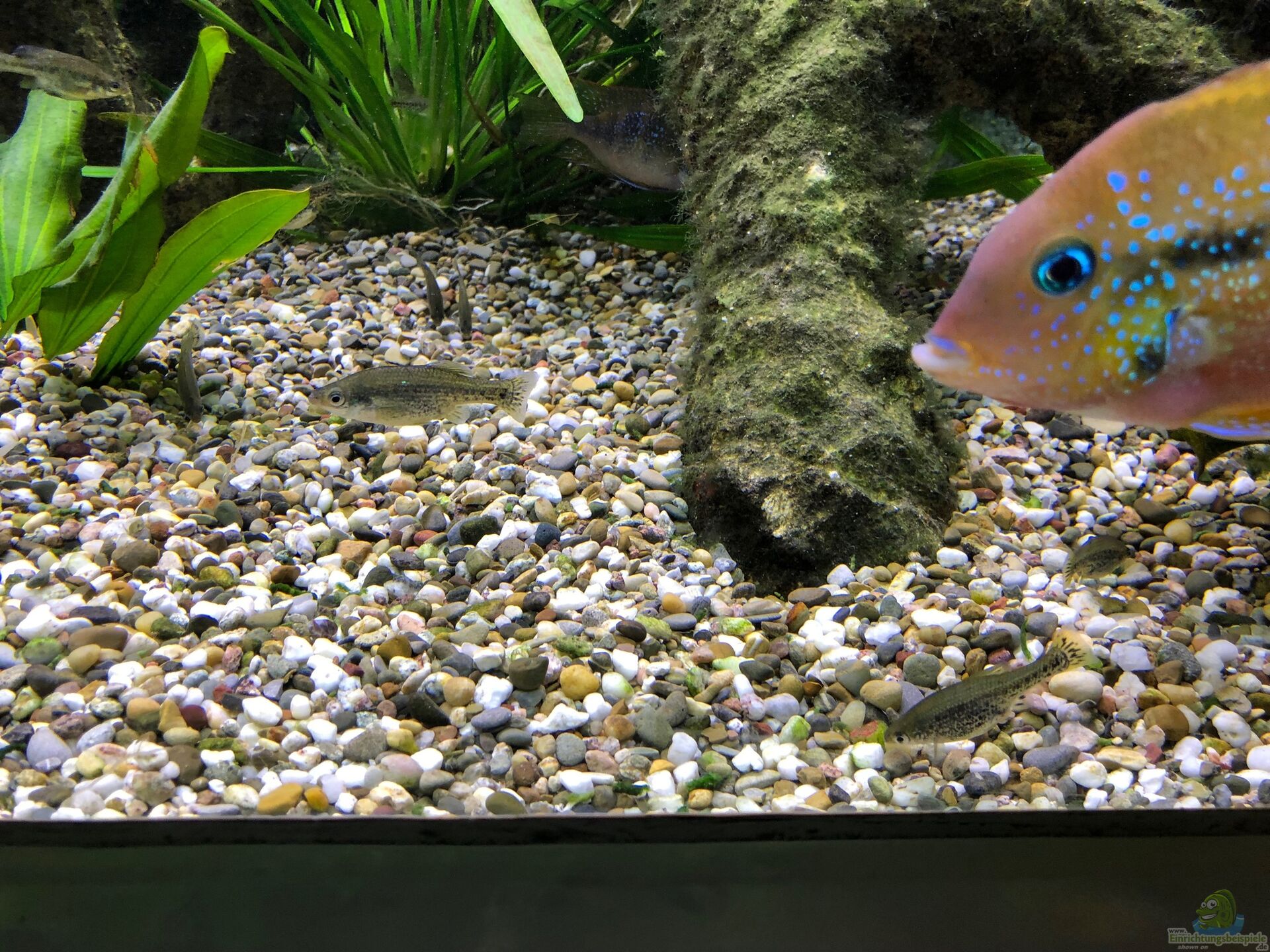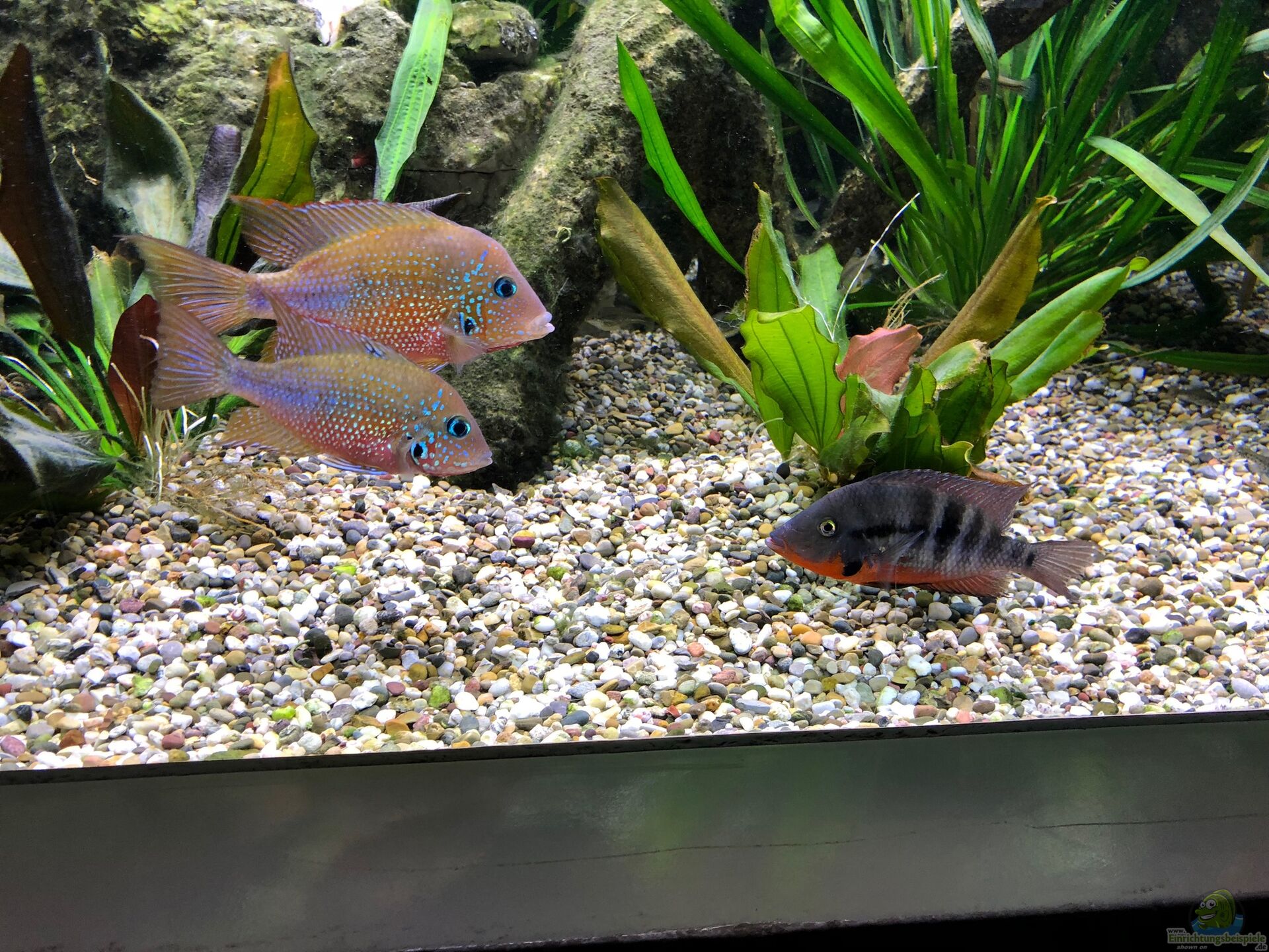 Doch nun wieder zurück zu den Fischen, die in unseren Aquarien Platz finden??? Mir haben die Becken mit ??hrenfischen und Blauaugen auch sehr gut gefallen. Diese Tiere sind, wie ich den Beinamen schon des ??fteren gelesen habe, kleine Schmetterlinge unserer Aquarien und ich möchte meine Gruppe Blauaugen ???Pseudomugil gertrudae ARU 2??? nicht mehr missen.