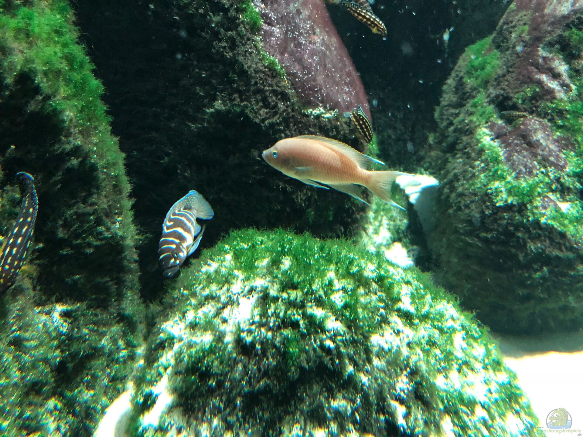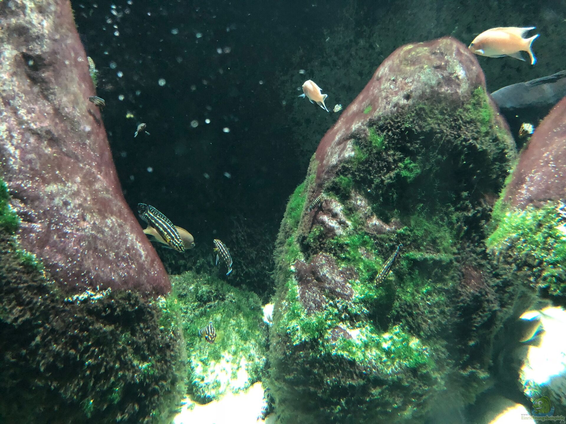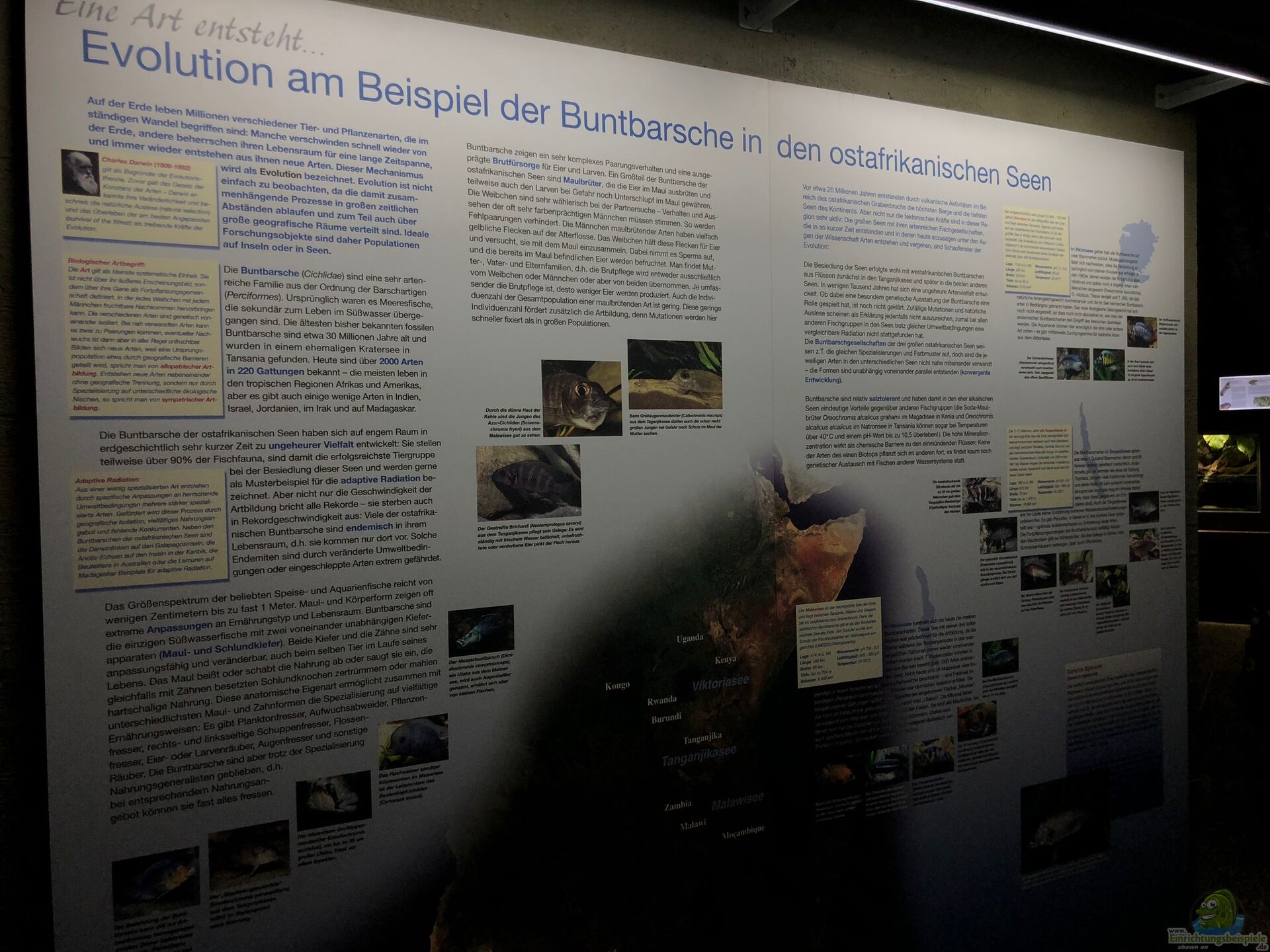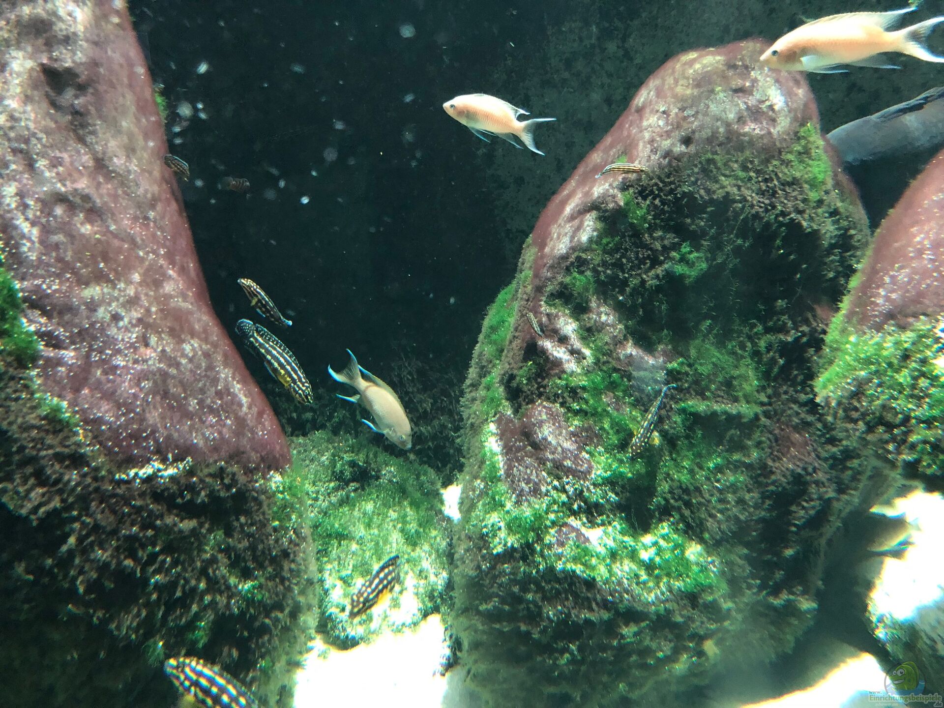 Dies ist nun ein Bereich, in dem ich mich schon besser auskenne. Speziell die Becken mit Ostafrikanischen Buntbarschen zogen einige Mitglieder meines Vereins und natürlich mich selbst magisch an die Glas-Scheiben??? Es gab Becken mit verschiedenen carnivoren Cichliden des Tanganjikasees- und Mbunas, also Aufwuchs-Fresser aus dem Malawisee. Speziell das Tanganjika-Becken war von den gezeigten Arten recht schön aufgestellt.