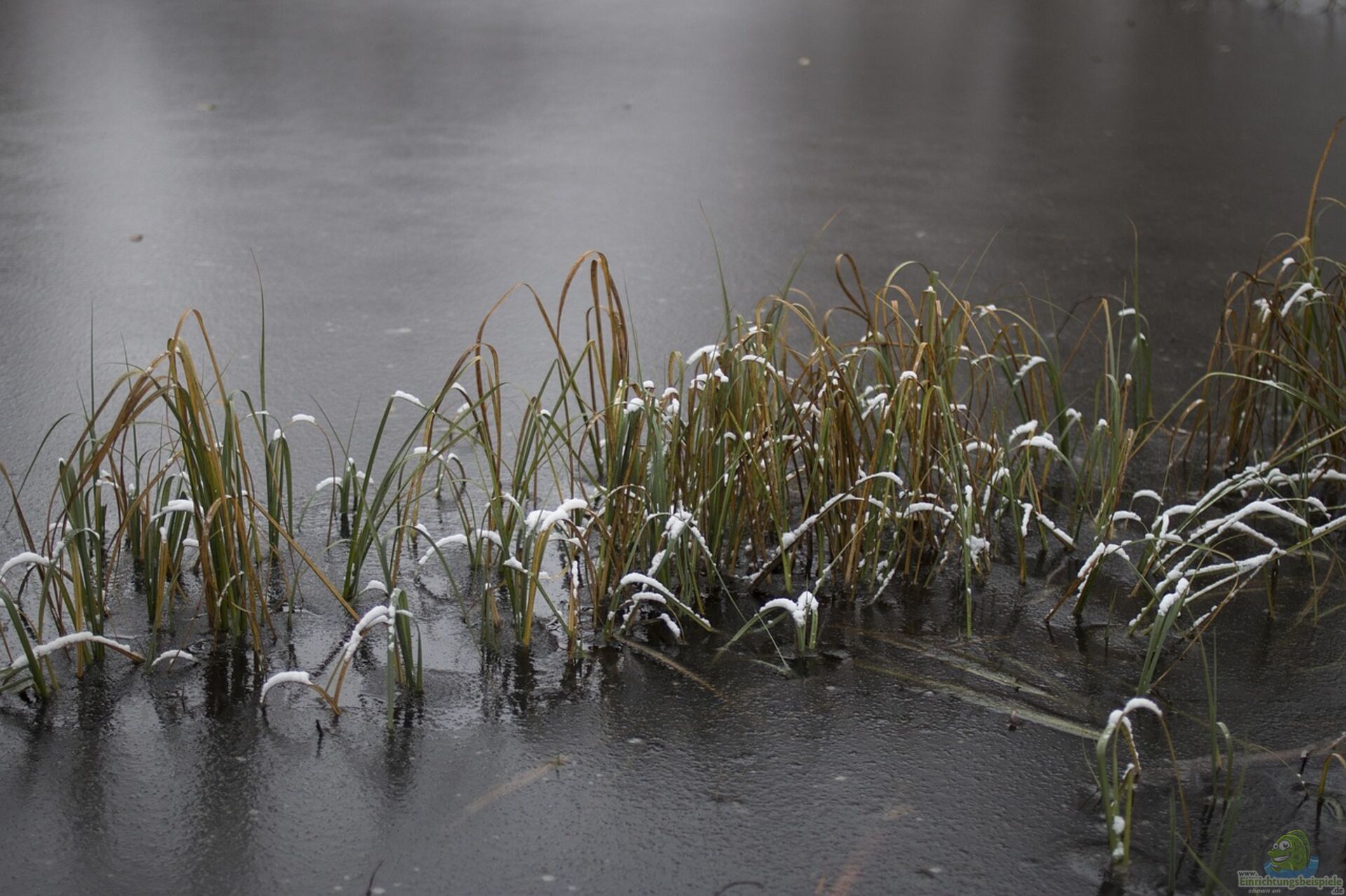 Auch manche Sumpfpflanzen wie der Kalmus (Acorus calamus) behalten ihre grünen Blätter im Winter. Solche Arten bieten nicht nur einen schönen Anblick, sondern auch wertvolle Struktur für den Lebensraum Teich.