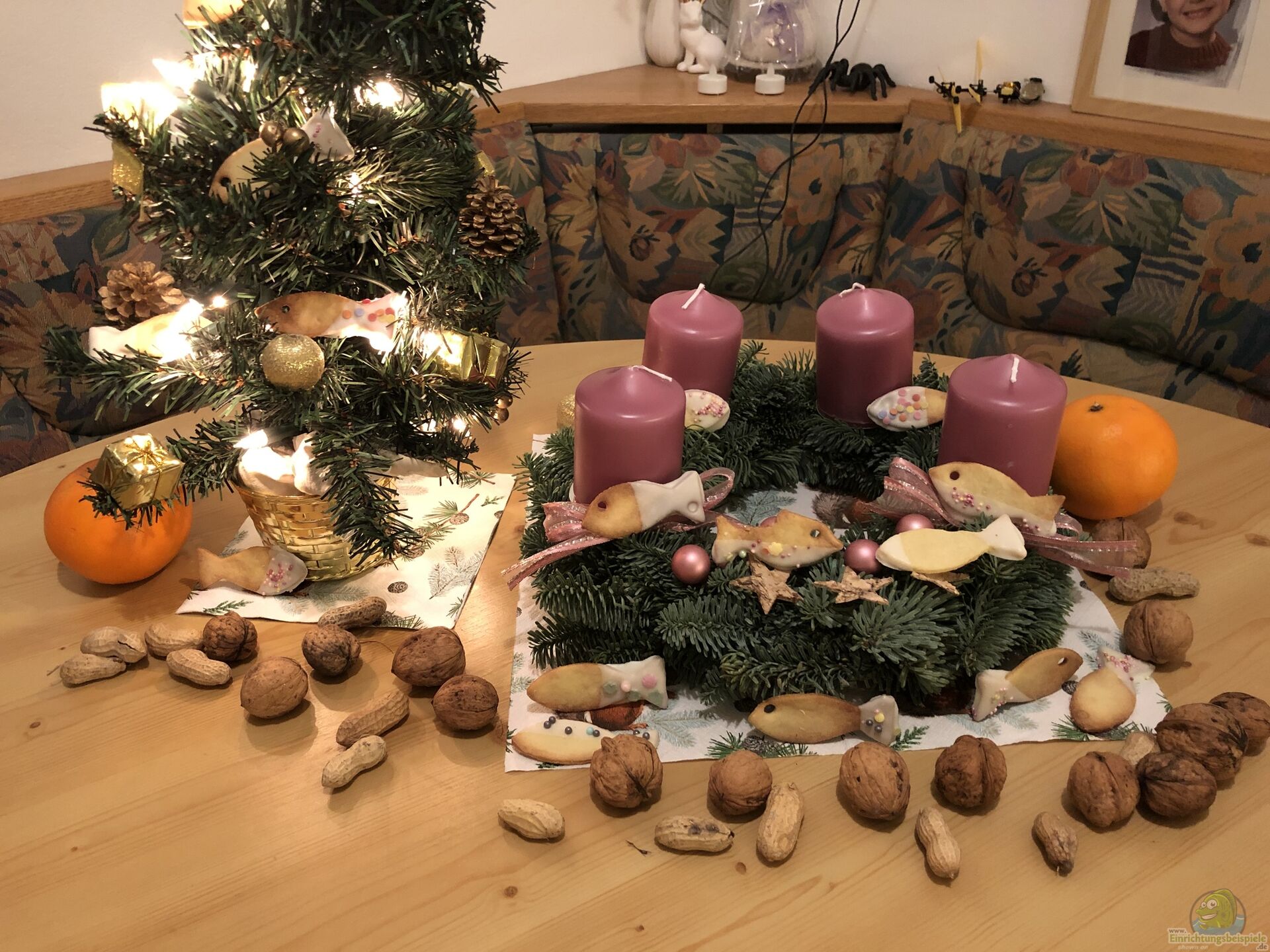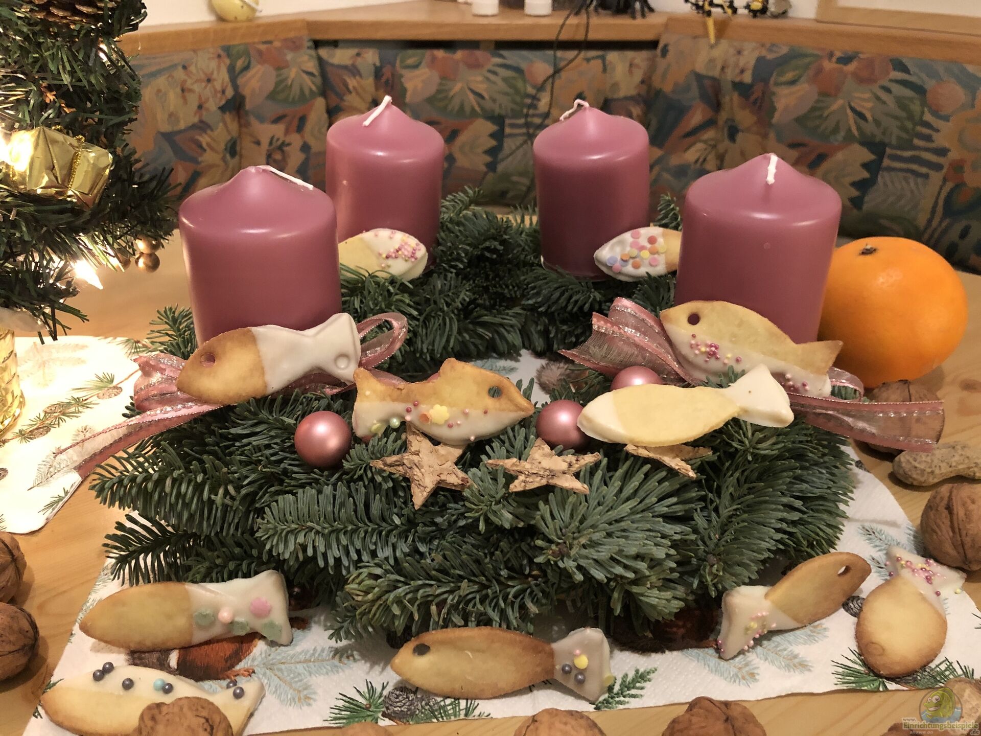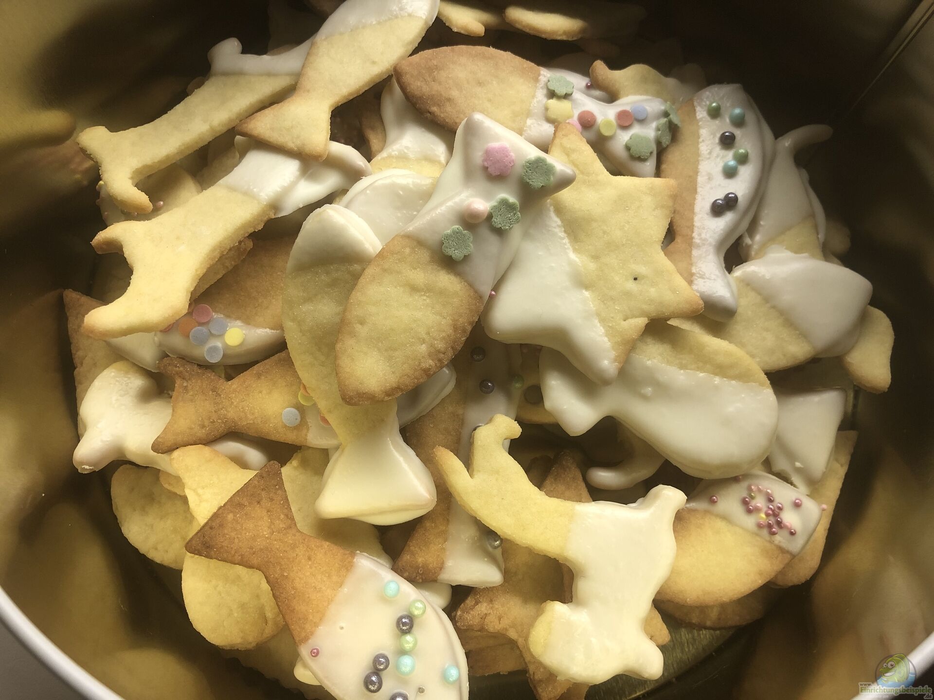Wir haben wei??e Schokolade genommen und bunte Streusel und unsere Fische durften dann kurz die Weihnachtsdeko verzieren ??? bis wir die Kekse wieder in die Keksdose einpacken mussten, da Bella und Sindy mit der schönen Deko nicht alleine gelassen werden konnten???