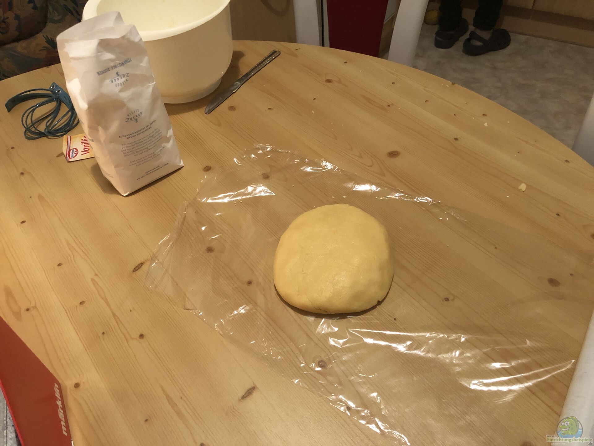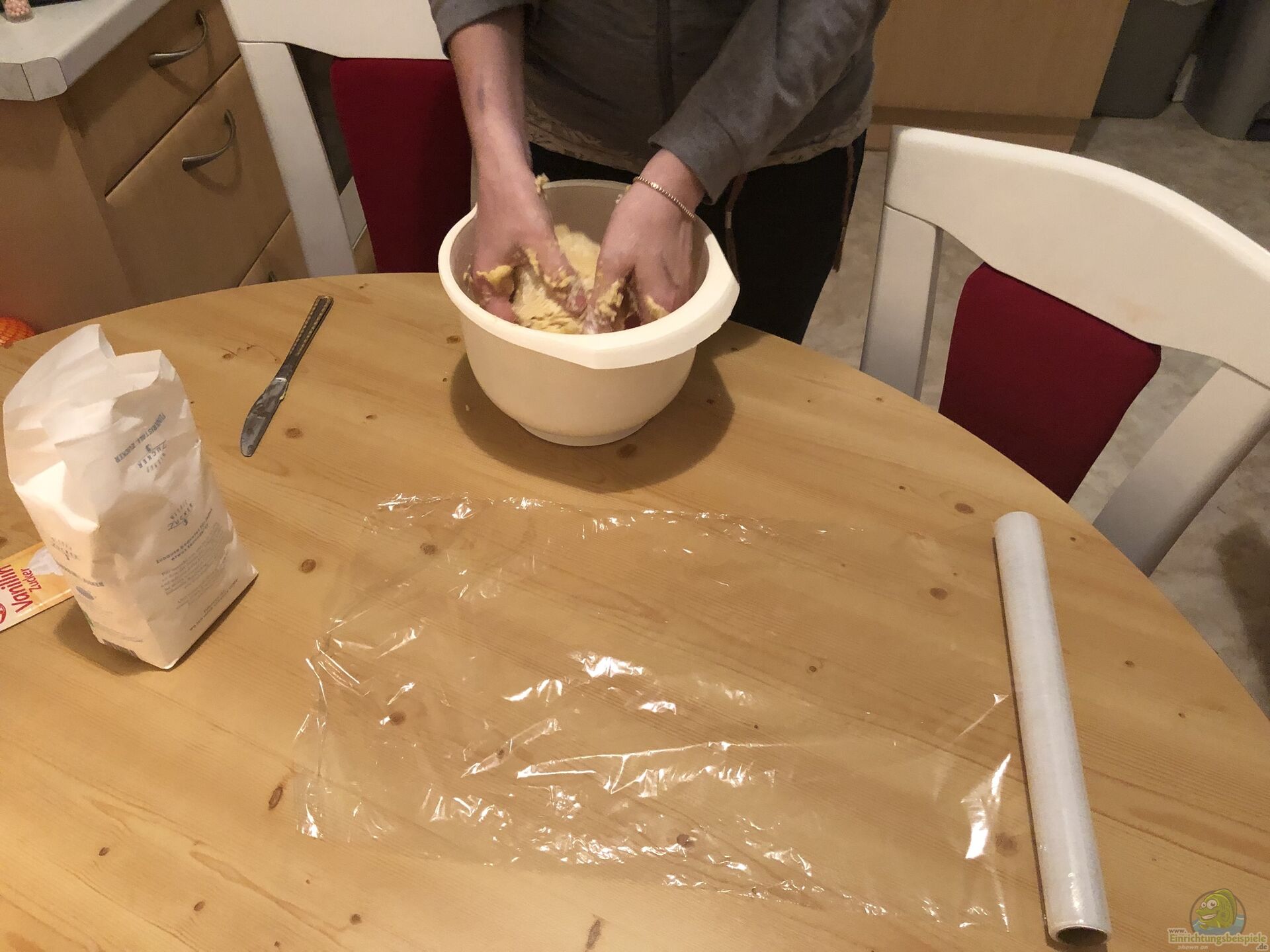 Wir haben den Teig sogar über Nacht im Kühlschrank gelassen, da wir erst am Abend zum Teig machen gekommen sind und dann waren wir zu müde.