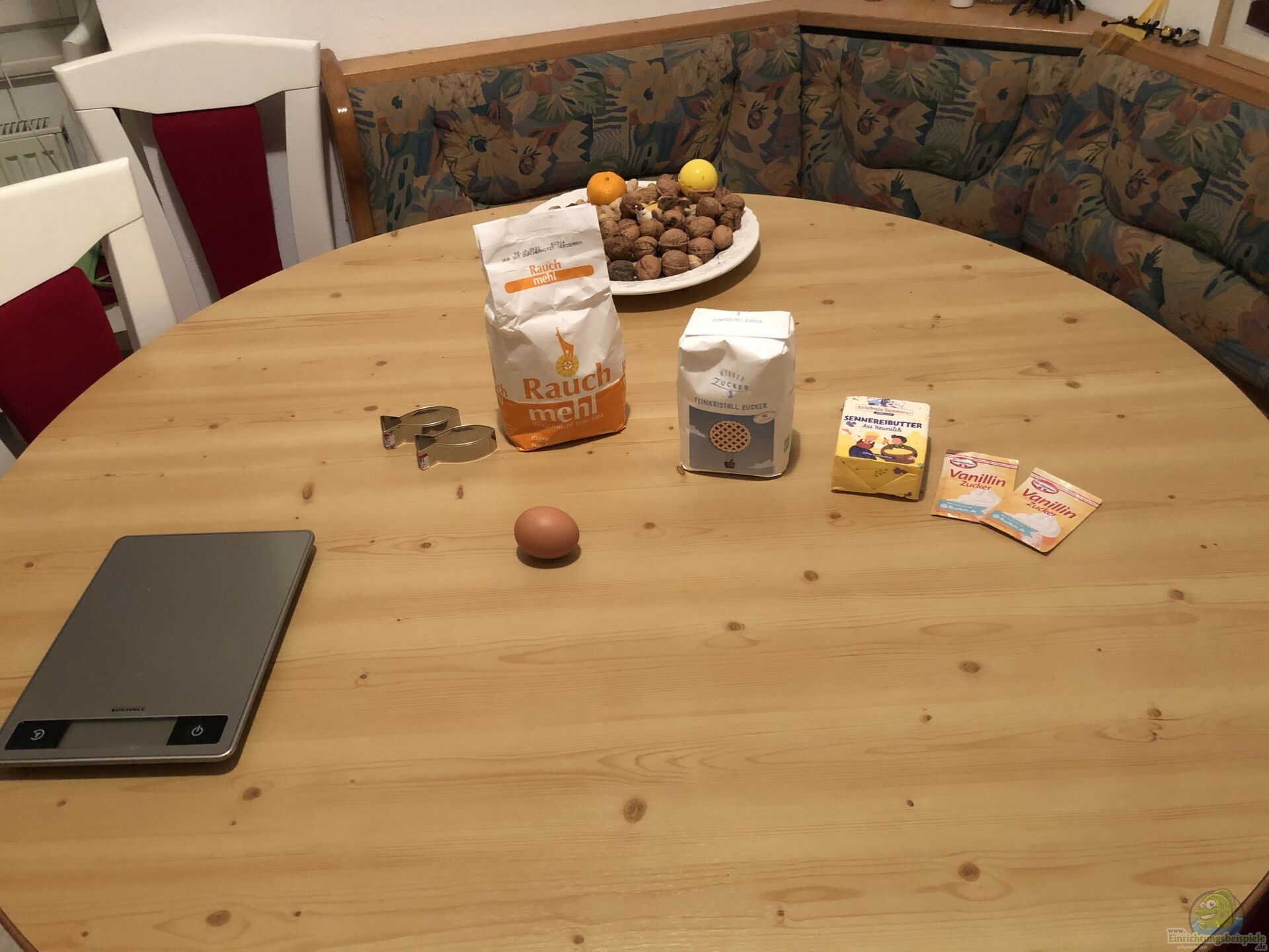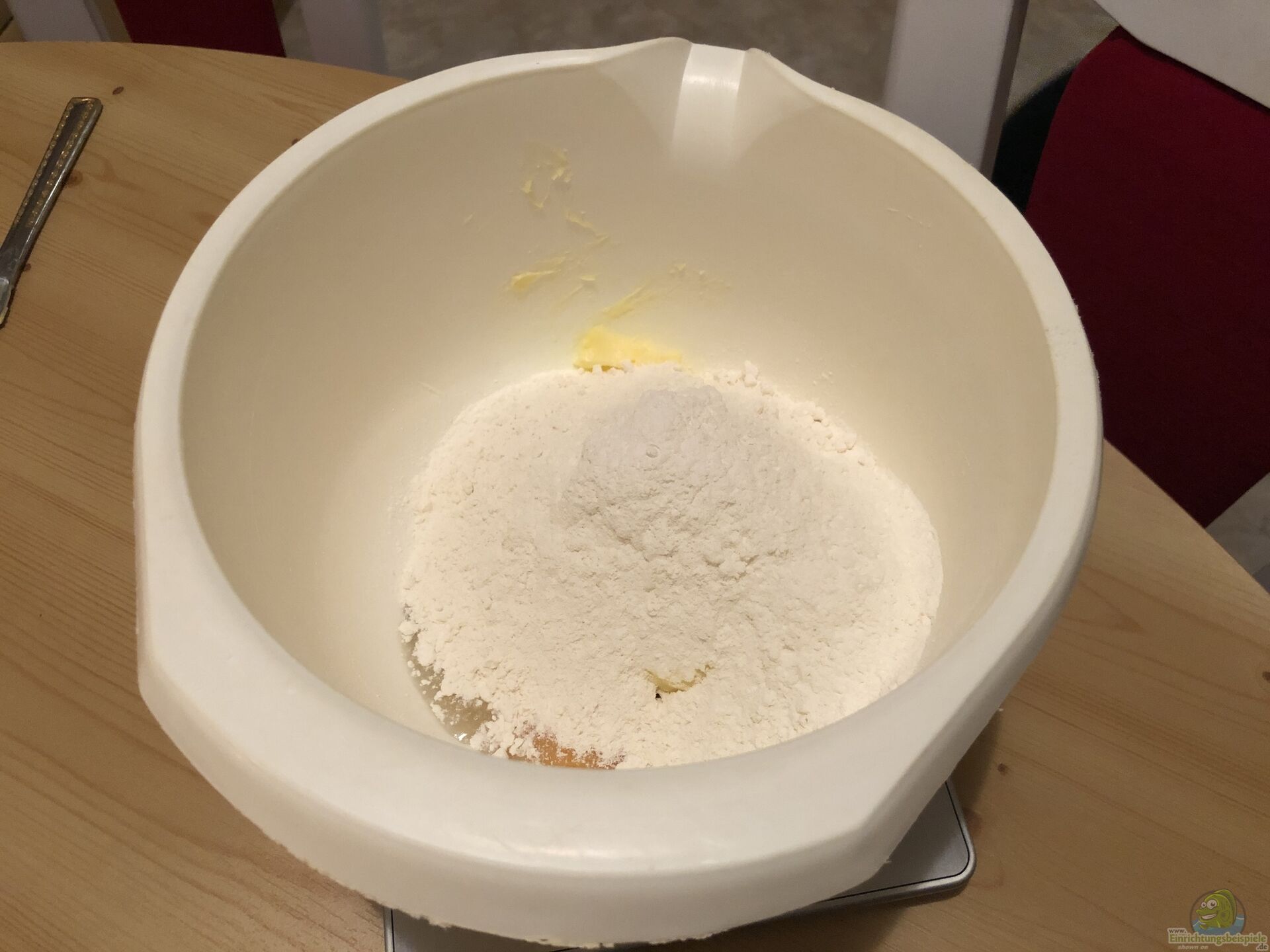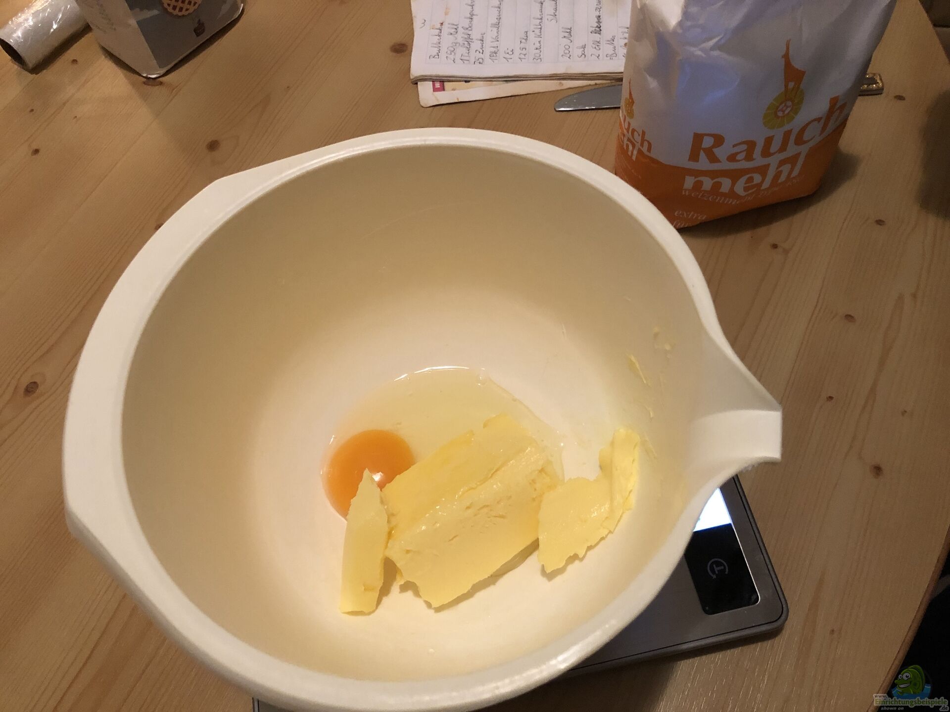 Man sieht, es ist nicht viel, was dazu gebraucht wird. Wir haben übrigens Butter genommen, da Margarine nicht so gesund sein soll und Butter vom Darm schneller abgebaut werden kann. Backpulver haben wir ebenso weggelassen, da dies für den Darm auch ungesund ist???