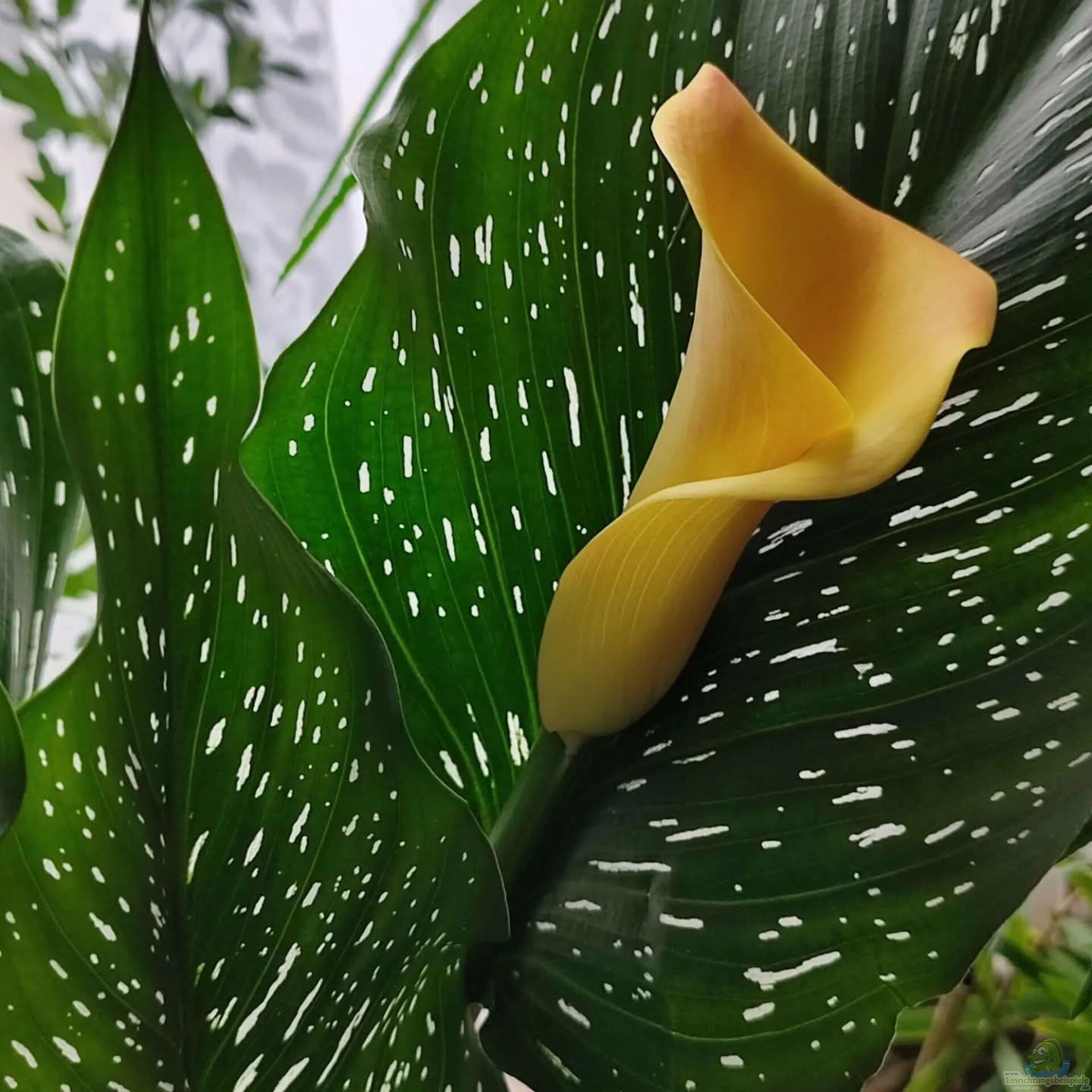 Zantedeschia albomaculata, die gefleckte Calla, benötigt einen hellen Standort der aber vor direkter Mittagssonne geschützt weden muß. Diese Pflanze mag es zwar feucht, aber Staunässe sollte in jedem Fall vermieden werden. Während der Wachstums- und Blütezeit sollte man regelmäßig gießen und auch düngen. Nach der Blüte muss weniger gegossen werden und die Düngung ist einzustellen. Im Winter ist für diese Pflanze eine Ruhephase unerlässlich. Zugluft und kalte Temperaturen mag die gefleckte Calla überhaupt nicht. Die Temperatur sollte für Zantedeschia albomaculata idealerweise zwischen 20°C und 22°C liegen, während der Blütezeit aber mindestens bei 16°C bis 18°C. Als Substrat verwendet man am Besten eine hochwertige, humose Blumenerde, die mit Sand oder mit Perliten für eine gute Drainage angereichert ist. Man sollte im Blumentopf bei der gefleckten Calla eine Drainage aus Blähton oder Tonscherben vor dem Befüllen mit dem Substrat einbringen. Das Gießen und Besprühen dieser Pflanze erfolgt am besten mit mit kalkarmem Wasser. Alle zwei Jahre sollte die Pflanze umgetopft werden. Die Wuchshöhe der Pflanze liegt in etwa zwischen 30cm und 80 cm. Das Herkunftsland von Zantedeschia albomaculata ist Südafrika, genauer gesagt Tansania, Demokratische Republik Kongo bis hin nach Angola, Malawi, Sambia, Simbabwe und Südafrika.