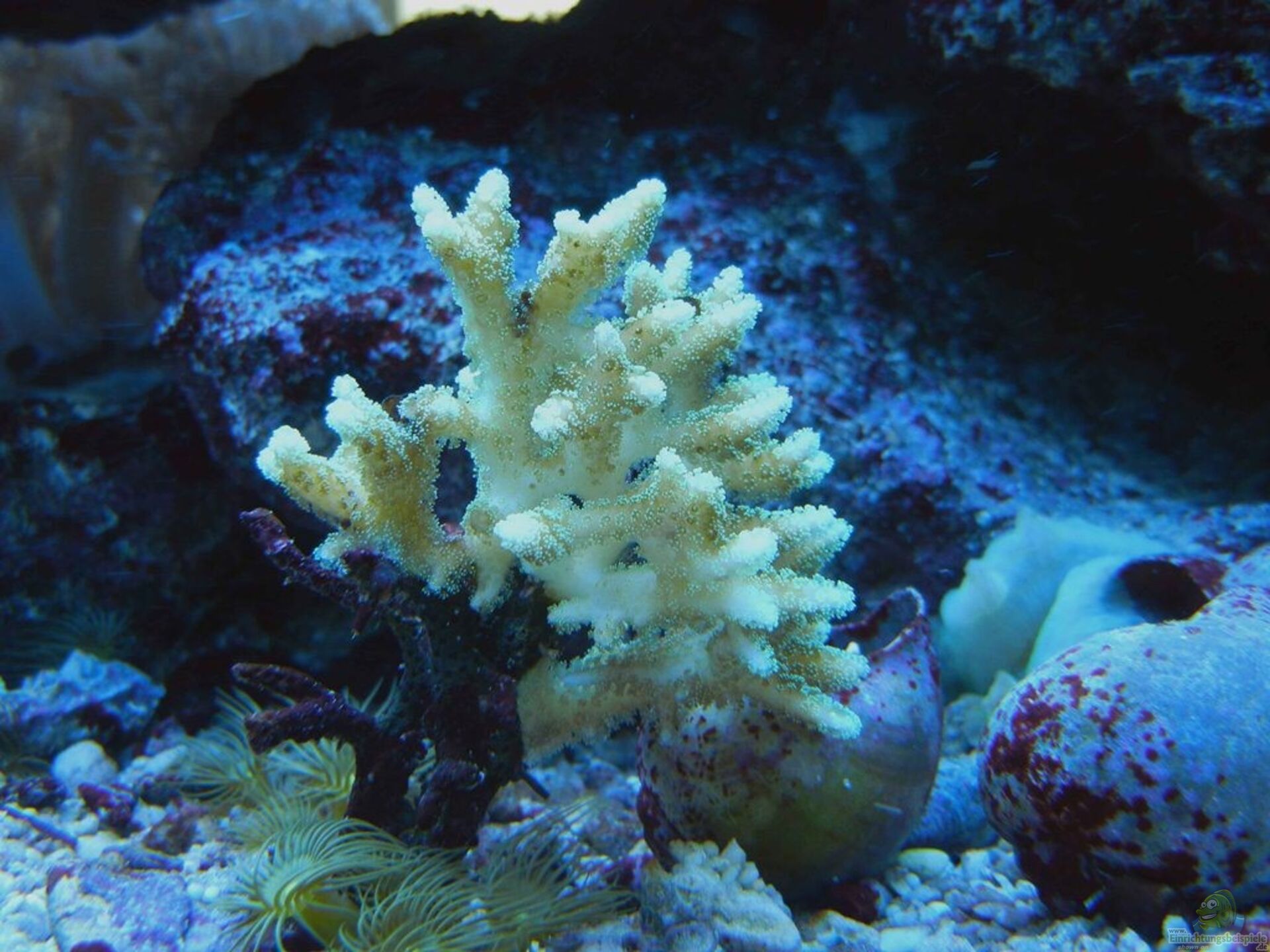 Das Gewebe meiner Seriatopora caliendrum ist von einem gelblichen braun ins helle gelb-wei?? gewechselt. Eierschalenfarben entsprechen diesem Ton, oder Champagnerfarbe aufgehellt.