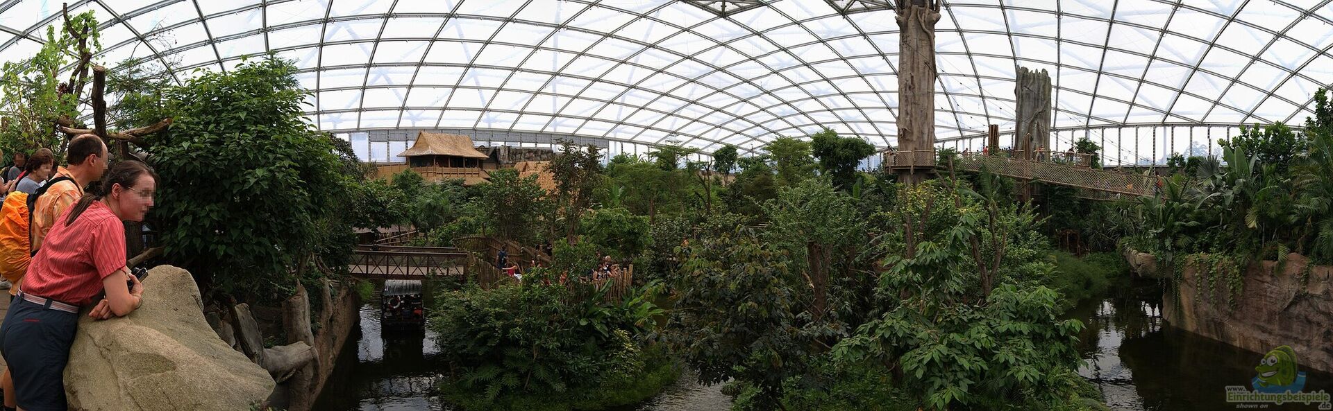Besucher können den Regenwald auf verschiedenen Ebenen erkunden – zu Fuß über verschlungene Pfade, von Hängebrücken aus oder per Boot auf einem künstlichen Flusslauf. Hier leben exotische Tiere wie Faultiere, Flughunde, Tapire, Anakondas, Arapaimas, Piranhas und zahlreiche tropische Vogelarten.