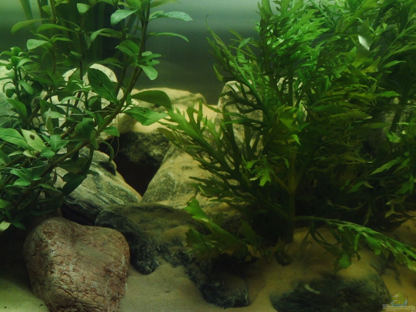 - Eine gro??e Mangrovenwurzel, welche mit der Spitze etwas aus dem Wasser schaut. - Ca. 5-8 kg Steine, welche Links im Becken in mehreren Schichten gestapelt sind, um so Höhlen für die geplanten Dornaugen zu bilden, und noch weitere, teilweise zur Stabilisierung der Wurzel, sind im Becken verteilt. - Ein sorgfältig ausgesuchtes Lochgestein, welches sich meines Erachtens für die Bekämpfung der sogenannten Laichverhärtung der Dornaugenweibchen eignet. - Es sind, falls ich noch [...]