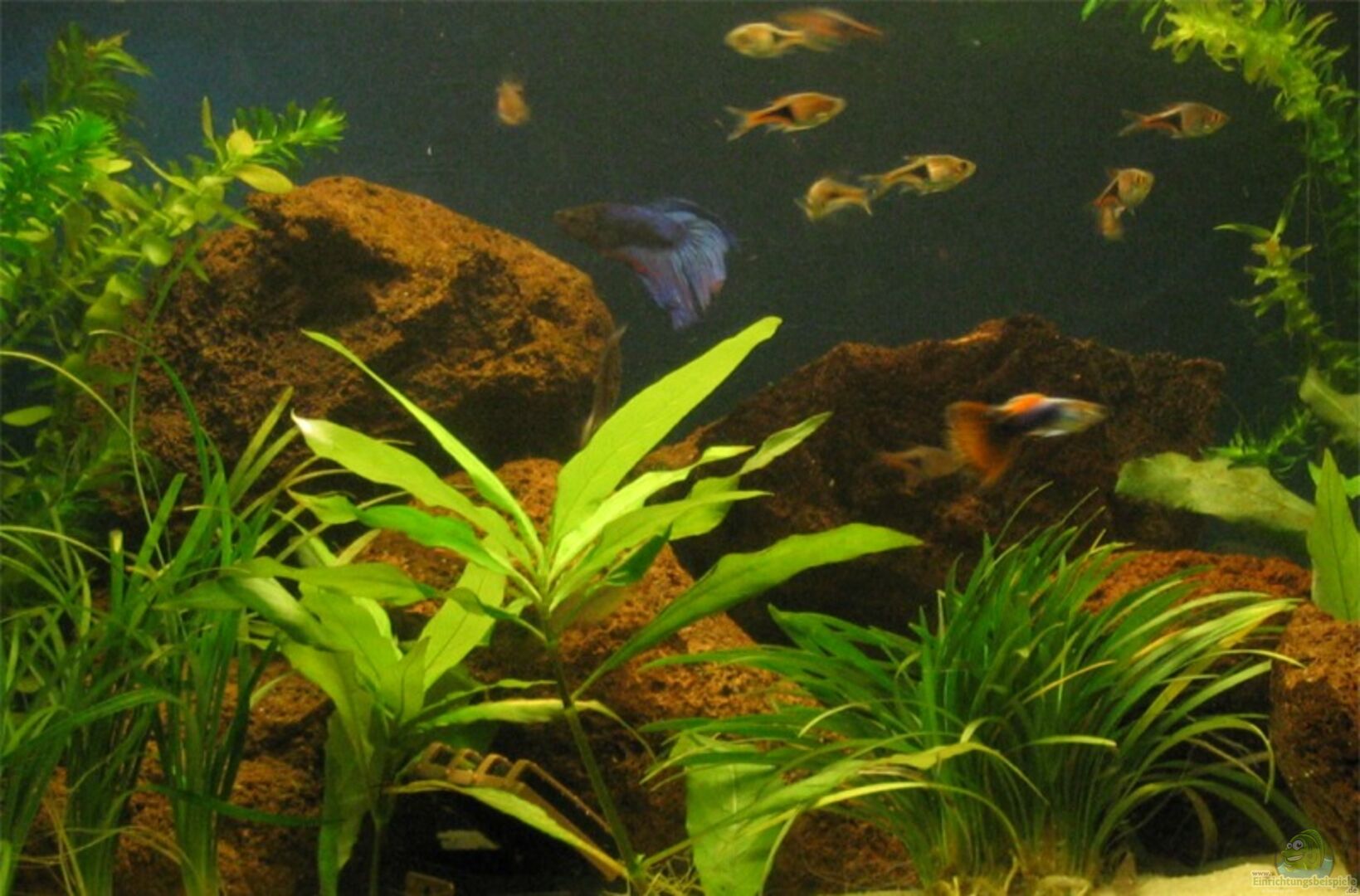 Das Aquarium steht auf einem kleinen Schrank bei mir im Zimmer, so dass ich vom Bett aus die Fische beobachten kann.