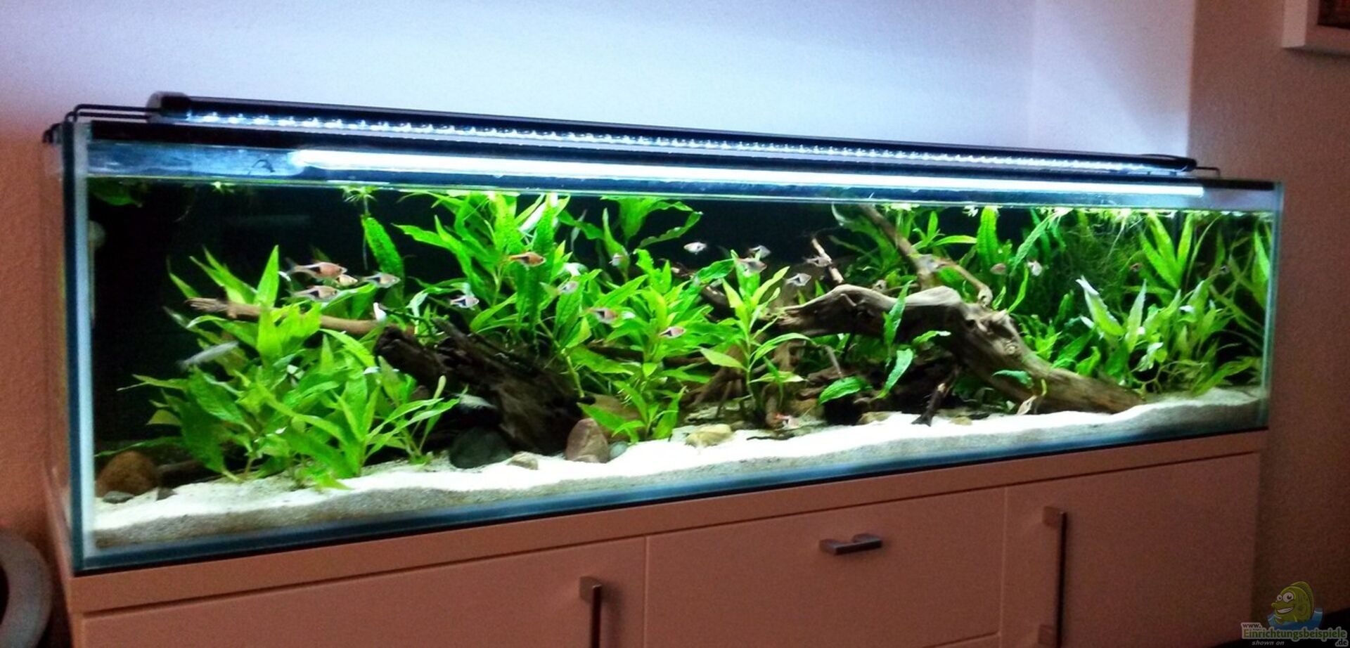 Wieder einmal handelt es sich bei dem Becken um eine Sonderanfertigung, die diesmal passend zum Sideboard gefertigt wurde. Hersteller ist die Firma Aquarienbau Voigt in Werneuchen bei Berlin. Das Becken wurde aus 8mm starkem Floatglas gefertigt und mit transparentem Silikon geklebt. Passgenau dazu habe ich mir eine dreiteilige Glasabdeckung von der Fa. Voigt anfertigen lassen, welche in zwei Kunststoff-E-Profilen auf der gesamten Beckenlänge verschiebbar ist. Als zusätzlichen Service wurden mir [...]