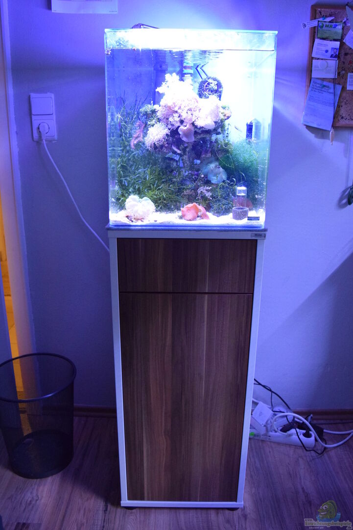 Um die Verdunstung auf ein Minimum zu reduzieren, verwende ich 2 zugeschnittene Glasscheiben, wobei das Kondenswasser schräg nach hinten ablaufen kann. (Fotos sind beigefügt). Die Scheiben liegen passgenau innerhalb des Aquariums und liegen auf einer Plastikhalterung auf (siehe Foto). Bei den Pumpen achtete ich auf besondere Laufruhe, daher auch der Name der Beckens (Blue Silence). Beide Pumpen werden mittels einer Magnethalterung an die Rückwand geheftet. Die Rückwand wurde zuallerst [...]