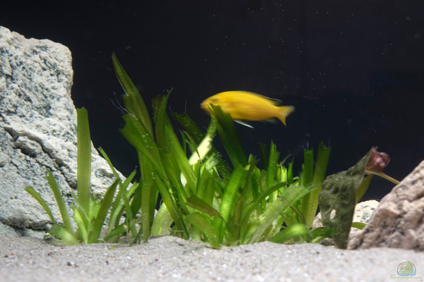 In der Mitte versuche ich einen Valisnerien-Wald wachsen zu lassen. Nur das Moorii- Männchen hat da irgendwie etwas gegen. Sonst sind in den Löchern zur durchströmung der BTN-Module Anubias eingesteckt. Das funktioniert erstaunlich gut und die Pflanzen scheinen zu gedeihen.