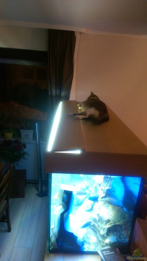 10mm Glas, sto??verklebt Das Becken dient als Raumtrennung daher habe ich Bohrungen im Beckenboden (für 2x Saugseiten- 1x Druckseitenanschluss) anbringen lassen. selbstbebaute Abdeckung in der Oberfläche Ahorn. Innen mit HPL beschichtet und au??en Echtholzfurnier. selbstgebauter Unterschrank ebenfalls in Ahorn, alles Echtholzfurnier. Bis Dezember 2014 hatte ich einen selbst gebauten Stein mit ??berhang welcher die komplette linke Seite abdeckte und ein paar Natursteine im [...]