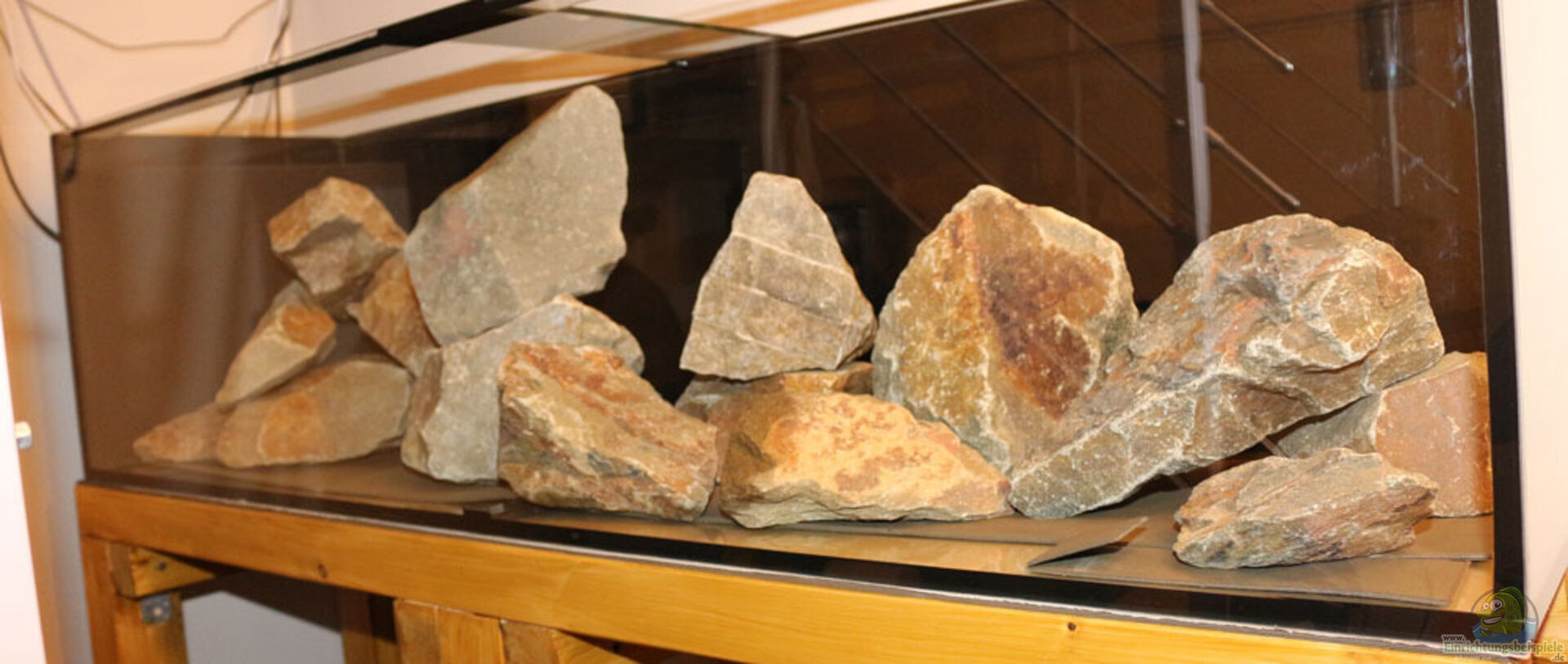 Bruchstein ca. 160 kg (nicht alle haben es ins Becken geschafft) Es wurden Handelsübliche Bruchsteine gekauft, die auch im Teichbau benutzt werden, diese sind in verschiedene Grö??en (bis 15 bis 40 cm) und haben Natureinschlüsse. Beim "dekorieren" wurde ein Glasschutz unter den Steinen gesetzt und besonders darauf geachtet, das genügend Möglichkeiten zur Revierbildung vorhanden sind. Alle Fische können aus dem Sichtfeld verschwinden/ sichverstecken, was uns sehr wichtig [...]