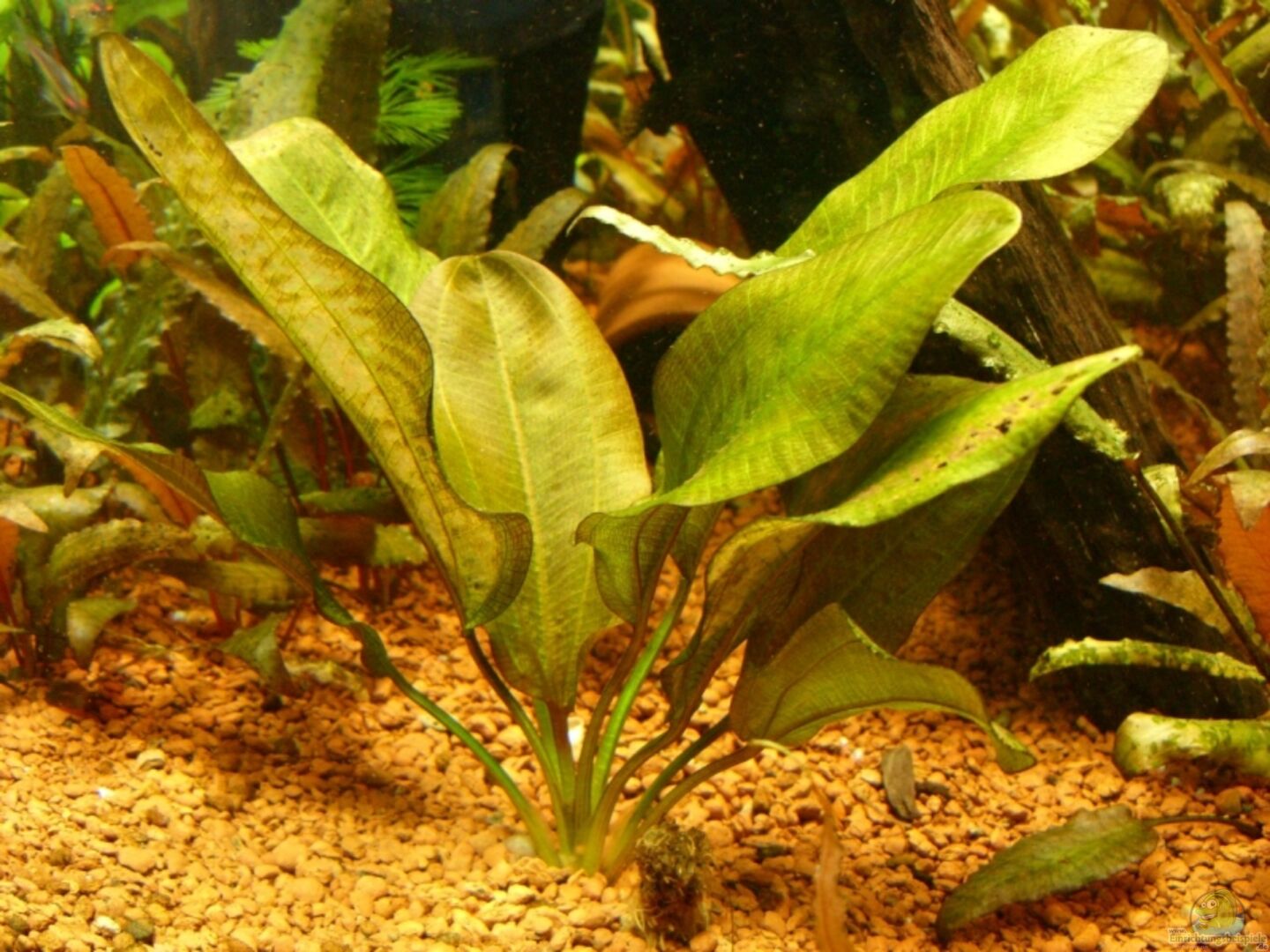 hinten rechts Vallisneria spiralis Leopard (sie wächst und wächst und......) bildet schöne Ableger, unzählige Cryptocoryne Ableger im linken und hinteren Beckenbereich als dichten Wald angelegt, drei Echinodorus bleheri vorne rechts vorm ??berlaufschacht, im mittleren Bereich drei Echinodorus-Zuchtformen deren genaue Bezeichnung ich nicht kenne, zwei kleine Anubias die aus einer sehr stark verkalkten Pflanze gerettet worden sind, an Wurzeln angebunden, in der Mitte des Beckens [...]