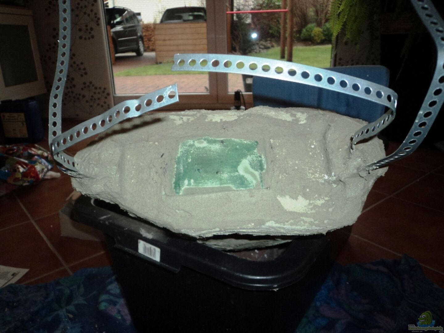 Das Becken ist aus 17 mm Floatglas gefertigt und ist sto?? Verklebt. Die Abeckdung ist ein Aluminiumabdeckeung mit zwei T5 Leichten und zwei Futterklappen. Das Becken ist eine Sonderanfertigung , um möglichst viel Wasservolumen zu bekommen habe ich die Höhe von 90 cm gewählt . Eine andere Grö??e wäre nicht gegangen weil es sonst nicht genau in die Ecke gepasst hätte. Den Unterschrank habe ihn komplett selber gebaut. Der Unterschrank steht auf altem Gewebeteppich um die Unebenheiten [...]