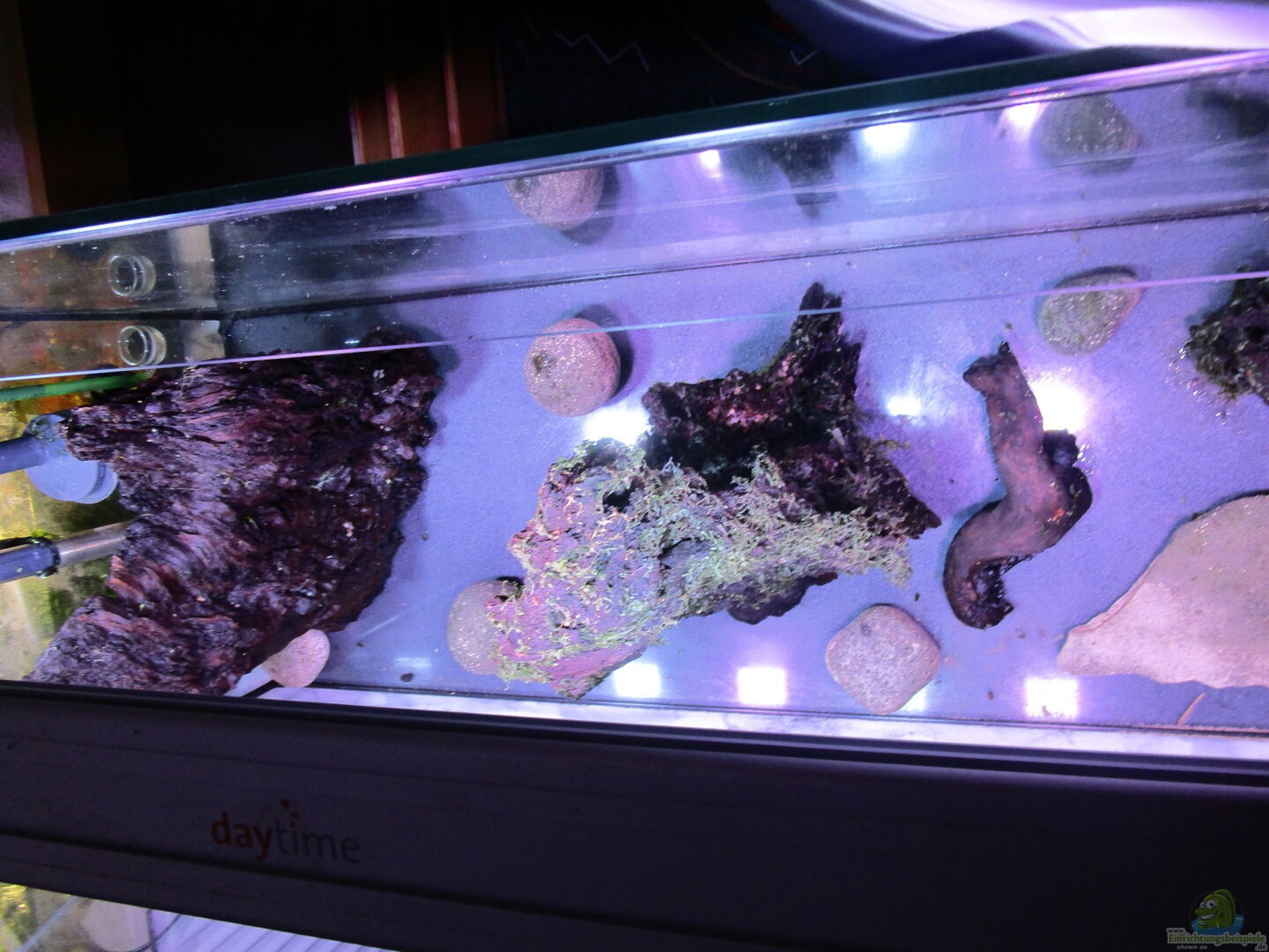 Das Becken dient als Raumteiler. Es ist von EFS aus 8 mm Floatglas mit zwei längs Verstrebung und Sicherheitsnaht, unter dem sich eine Thermo Unterlage 6 mm befindet. Der Unterbau besteht aus Aluminiumprofil 40 x 40 mm und ruht auf 8 Stützen mit Stellfüßen. Die Beckenplatte ist aus Sperrholz 21 mm mit Klebefolie mit Marmor Dekor und die Einlegeböden und Verkleidung sind aus 19 mm Spanplatte, von Vorne mit 3 Teile Vorhang. Beckenplattemaß: 144 x 44 cm Gestellmaß: 140 x 35 x 68 cm 16.09.22 [...]