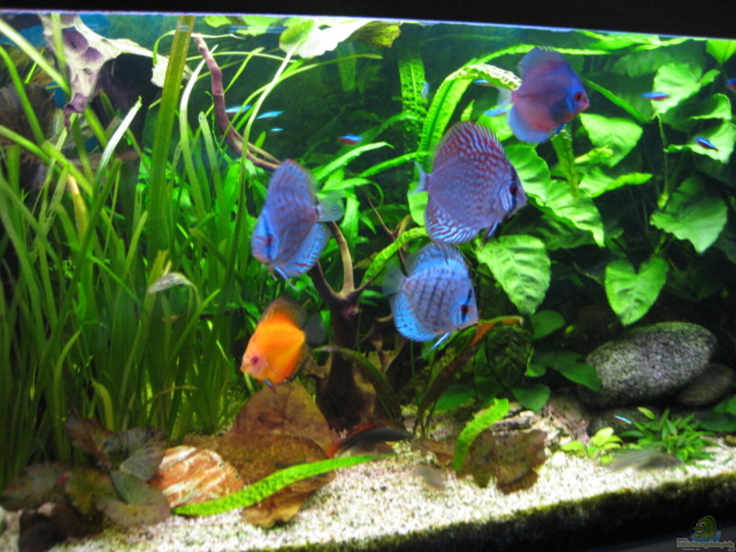 3 Marmorierte Beilbäuch(fisch)e 1 Epalzeorhynchos kalopterus (Schönflossige Rüsselbarbe) 19 Rote Neons 5 Grüne/Smaragd-Panzerwelse 1 Ancistrus dolichopterus (Blauer-Antennenwels) 1 Glyptoperichtthys gibbiceps (Waben-Schilderwels) 1 Atyopsis moluccensis (Molukken-Garnele) 2 Caridina japonica (Amano-Garnelen) ---- + Lee, Luv, Hook, Elise und Charlie