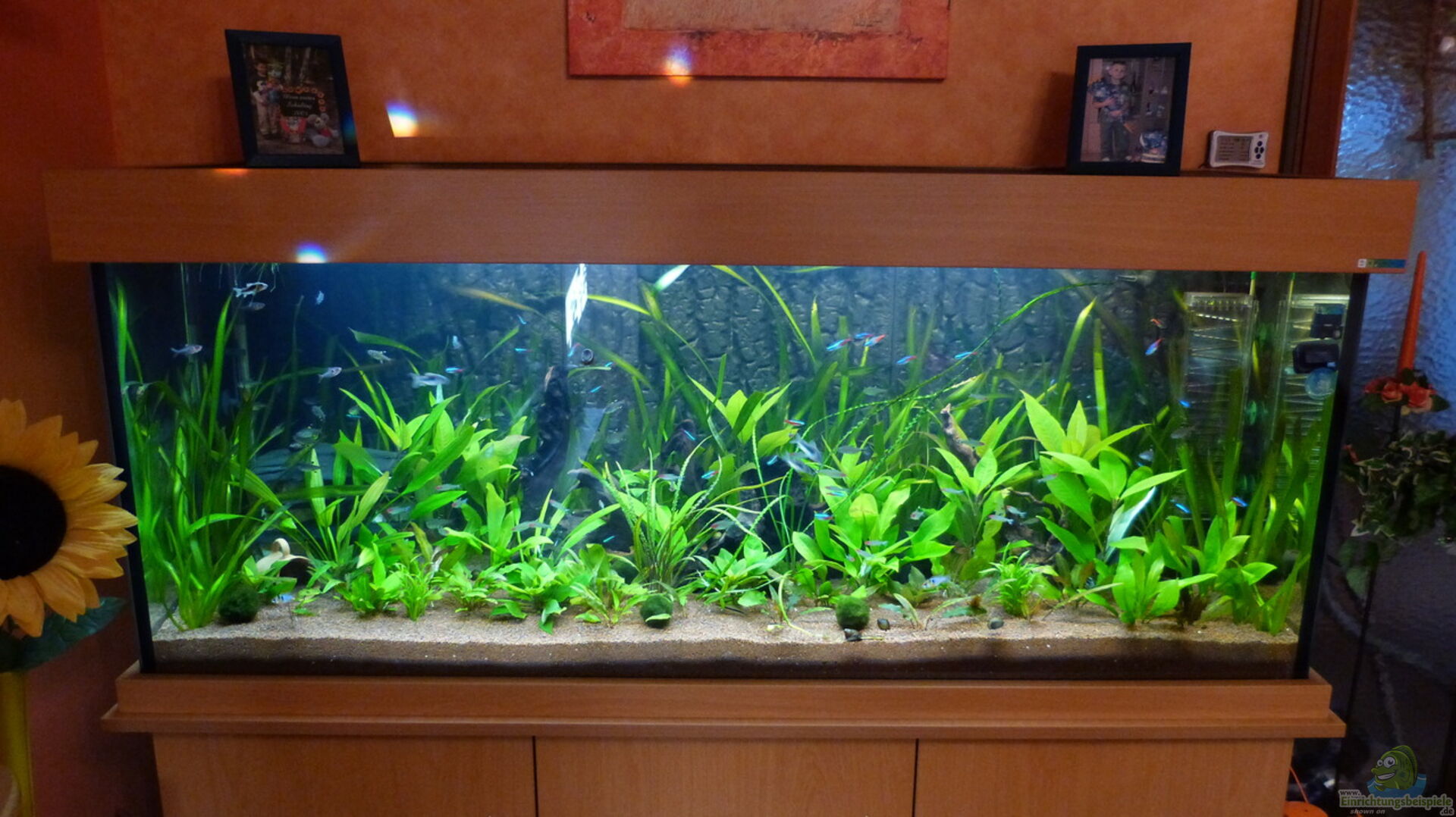 Aqualux Exklusiv - Aquarium 450 Liter Sto??verklebt mit Sicherheitsnaht innen, Glasstärke: 12mm. Abdeckung dreigeteilt, mit vier ??ffnungen in der Abdeckung für Durchreiche der Filterschläuche, Kabel, usw... Unterschrank 19mm Stärke mit Kiesblende, Massiv verleimt, Buchefarben, innen eingeklebte Struckturrückwand Juwel STR 600.