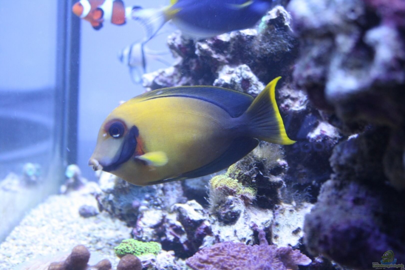 1, 1 Gramma loreto (Königs-Feenbarsch aus der Karibik) 1, 1 Amphiprion ocellaris (falscher Clownfisch) 1, 1 Pterapogon kauderni (Fahnenkardinalbarsch) 1 Acanthurus pyroferus (Schokoladendoktor) 1 Acanthurus leucosternon (Wei??kehldoktor) 1 Macropharyngodon bipartitus (Diamantlippfisch) 1 Ecsenius bicolor (zweifarbiger Schleimfisch) 1 Salarias fasciatus (Juwelen Felshüpfer) 1 Pterosynchiropus splendidus (Mandarin Leierfisch) Im Dezember kommt ein ca. 800 Liter-Becken, der [...]