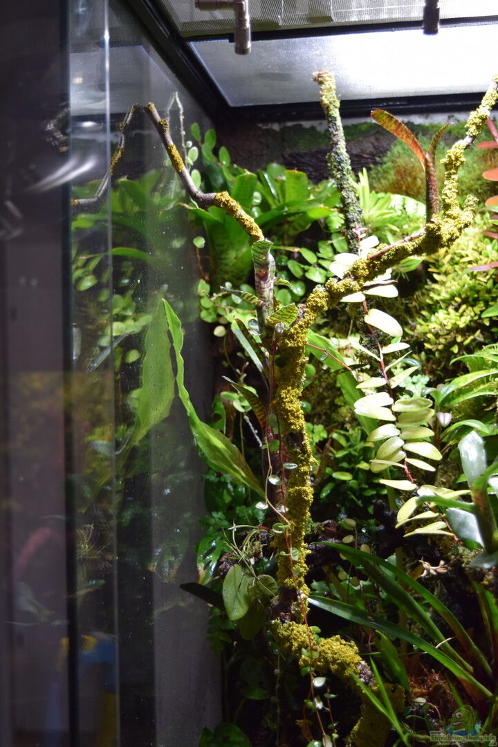 Die Rückwand besteht aus Xaximstückchen und Regenwaldsubstrat. Dies besteht aus einer Mischung aus Weisstorf und einem Kautschuk-Kleber